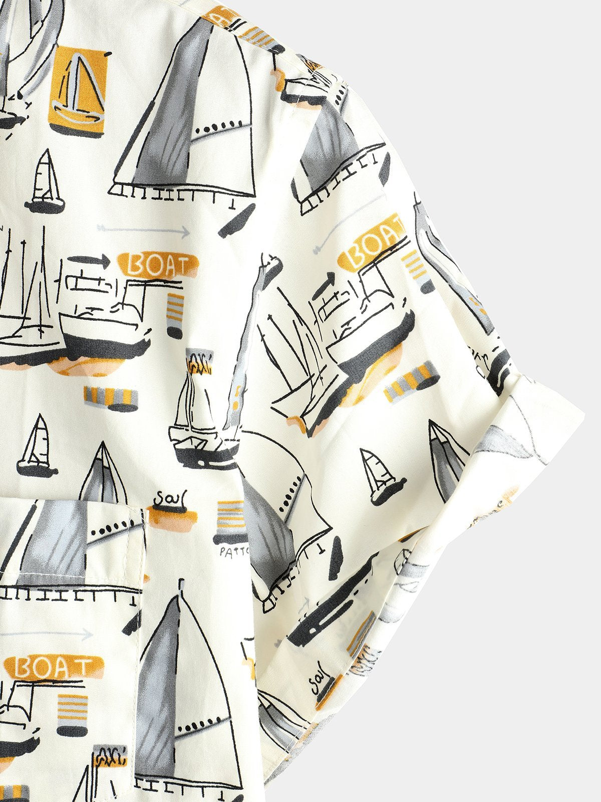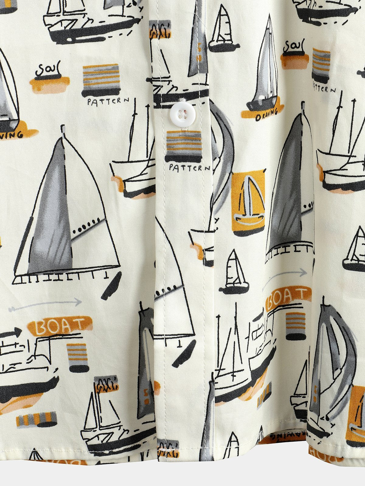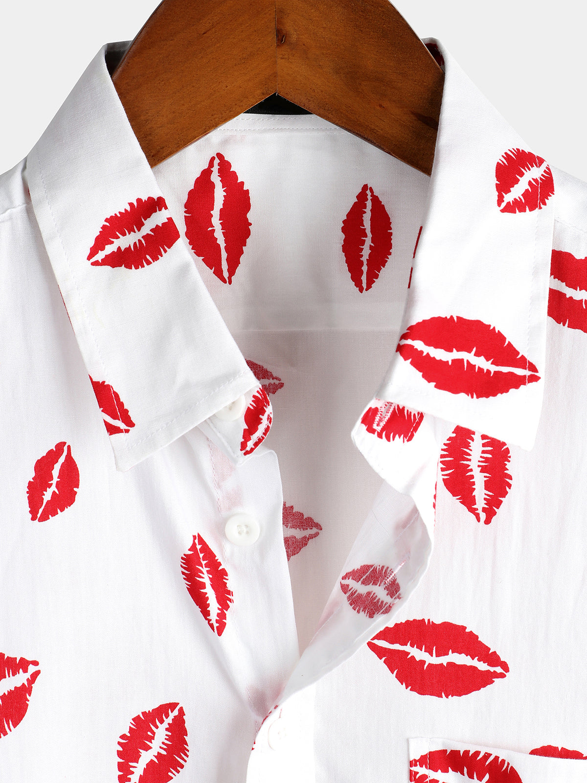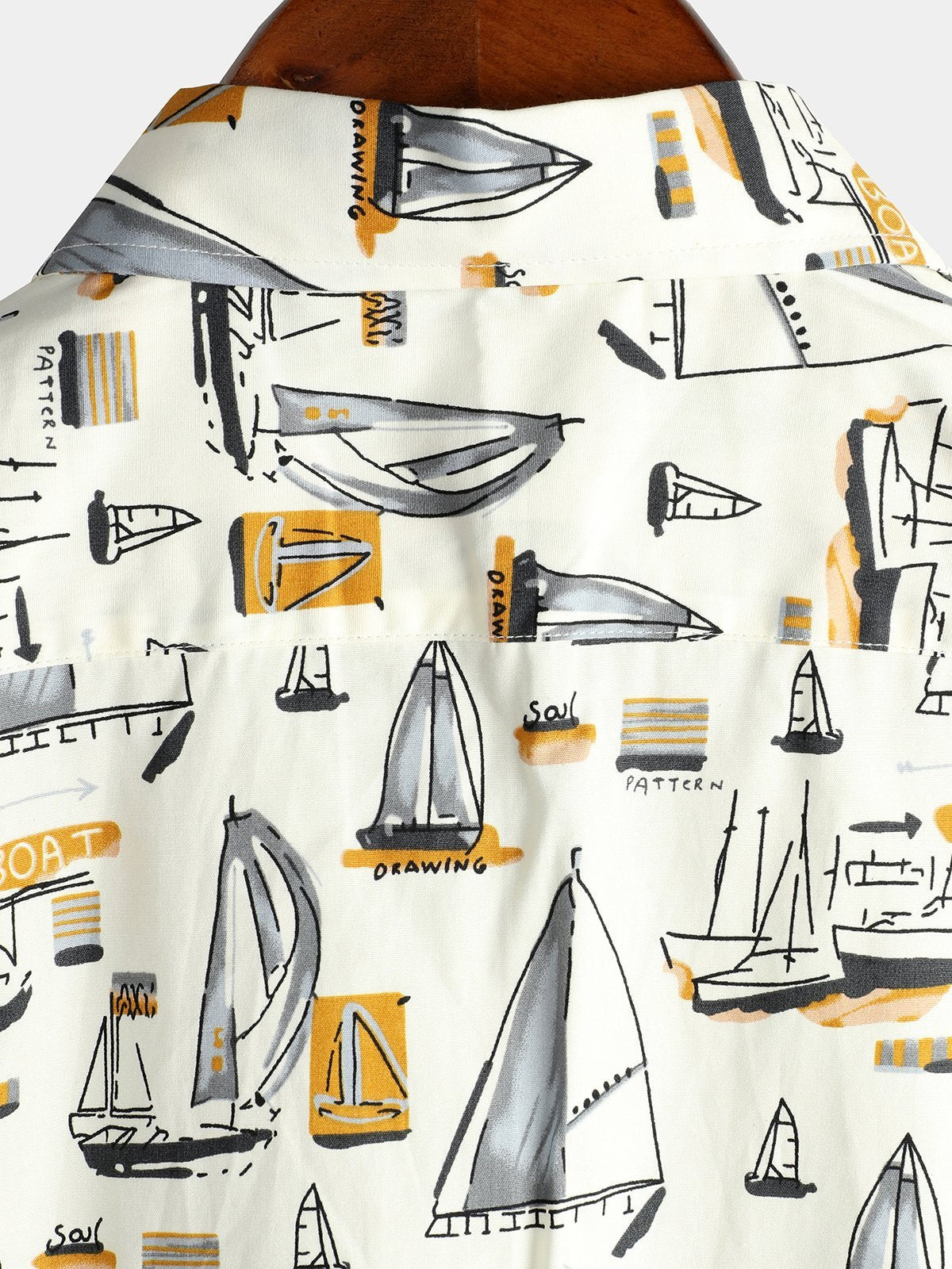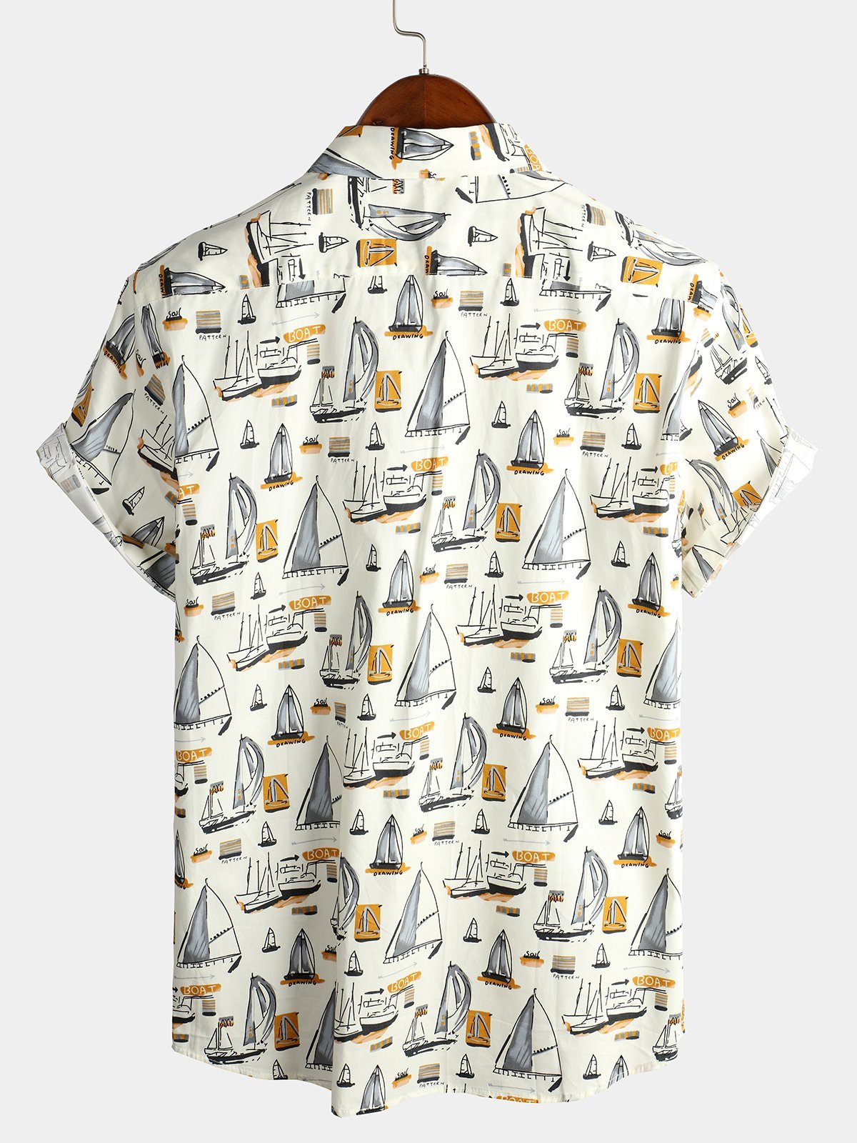 Men's Casual Holiday Short Sleeve Button Up Retro Shirt