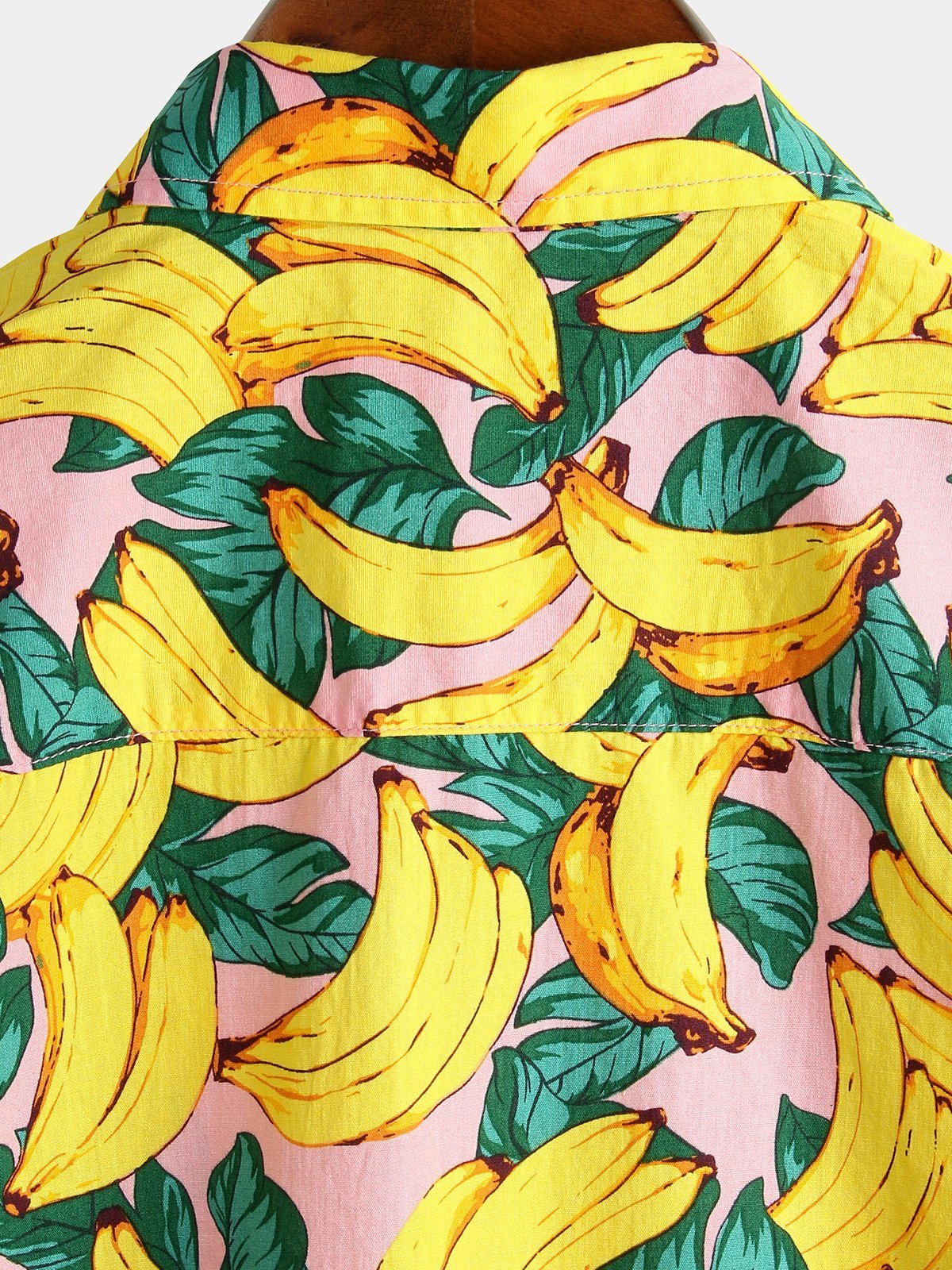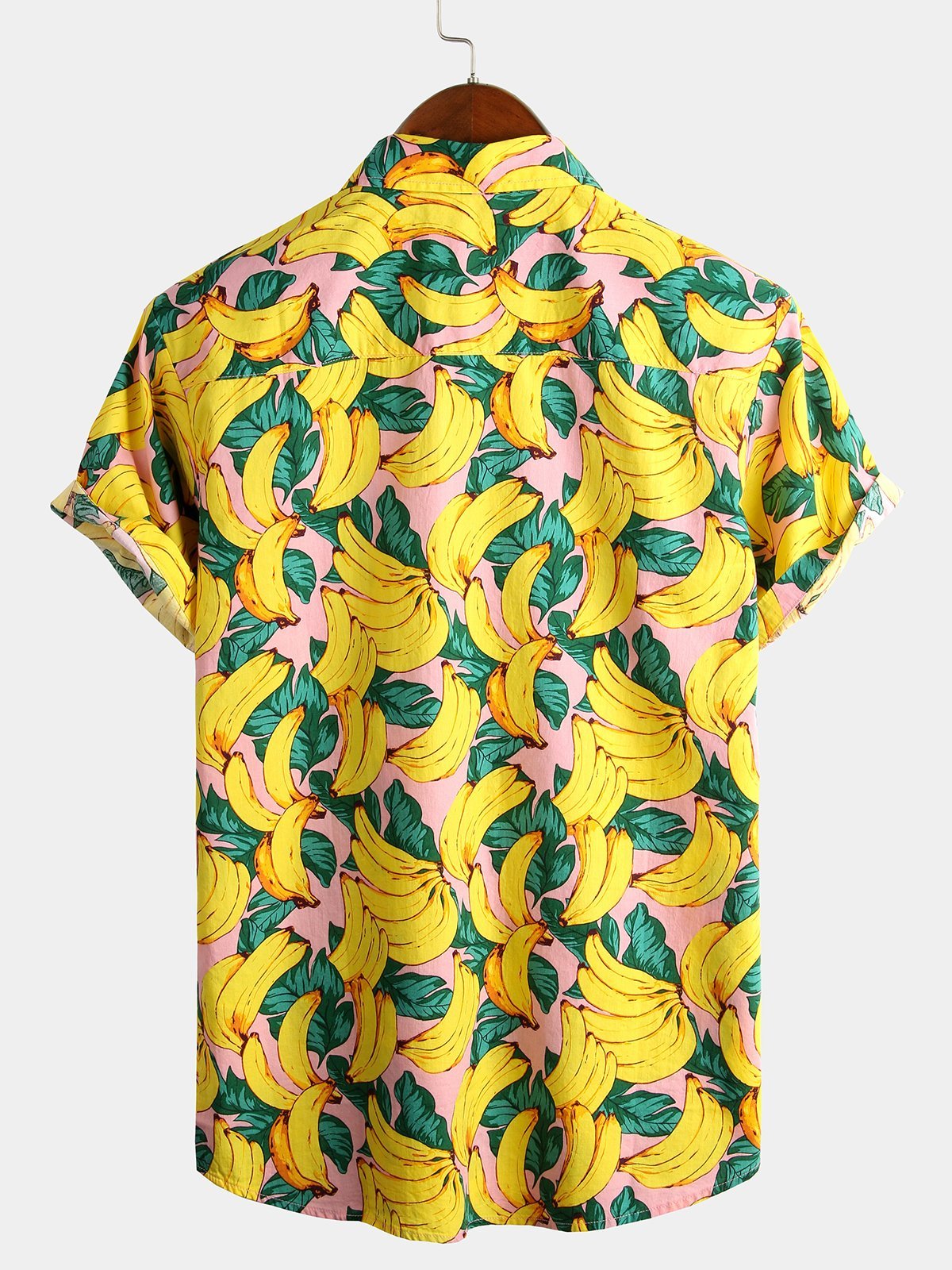 Men's Banana Cotton Yellow Fruit Print Tropical Hawaiian Aloha Shirt
