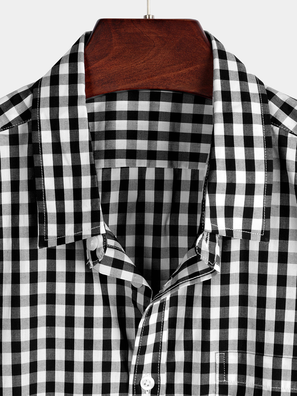 Men's Casual Solid Color Plaid Cotton Pocket Shirt