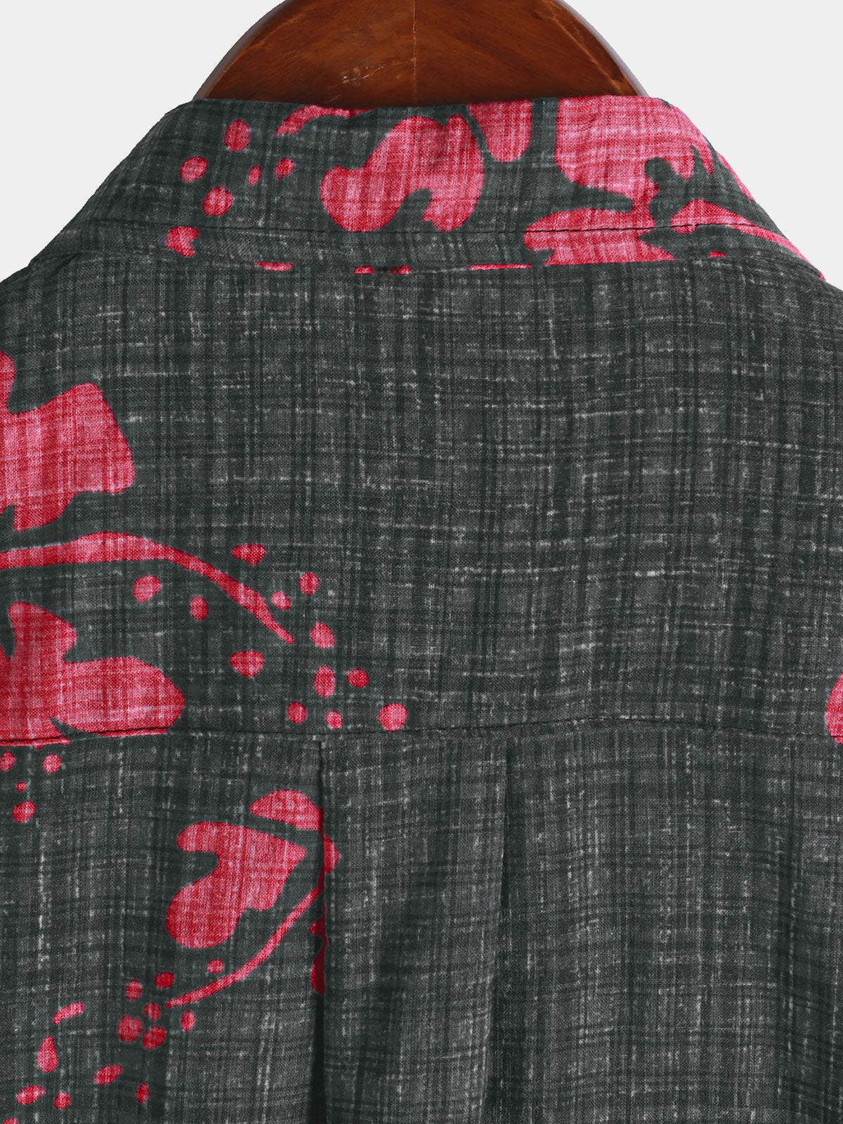 Men's Summer Red Floral Hawaiian Short Sleeve Shirt