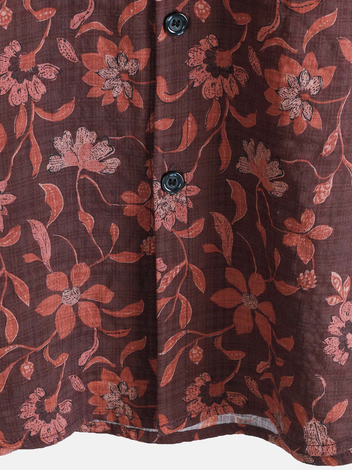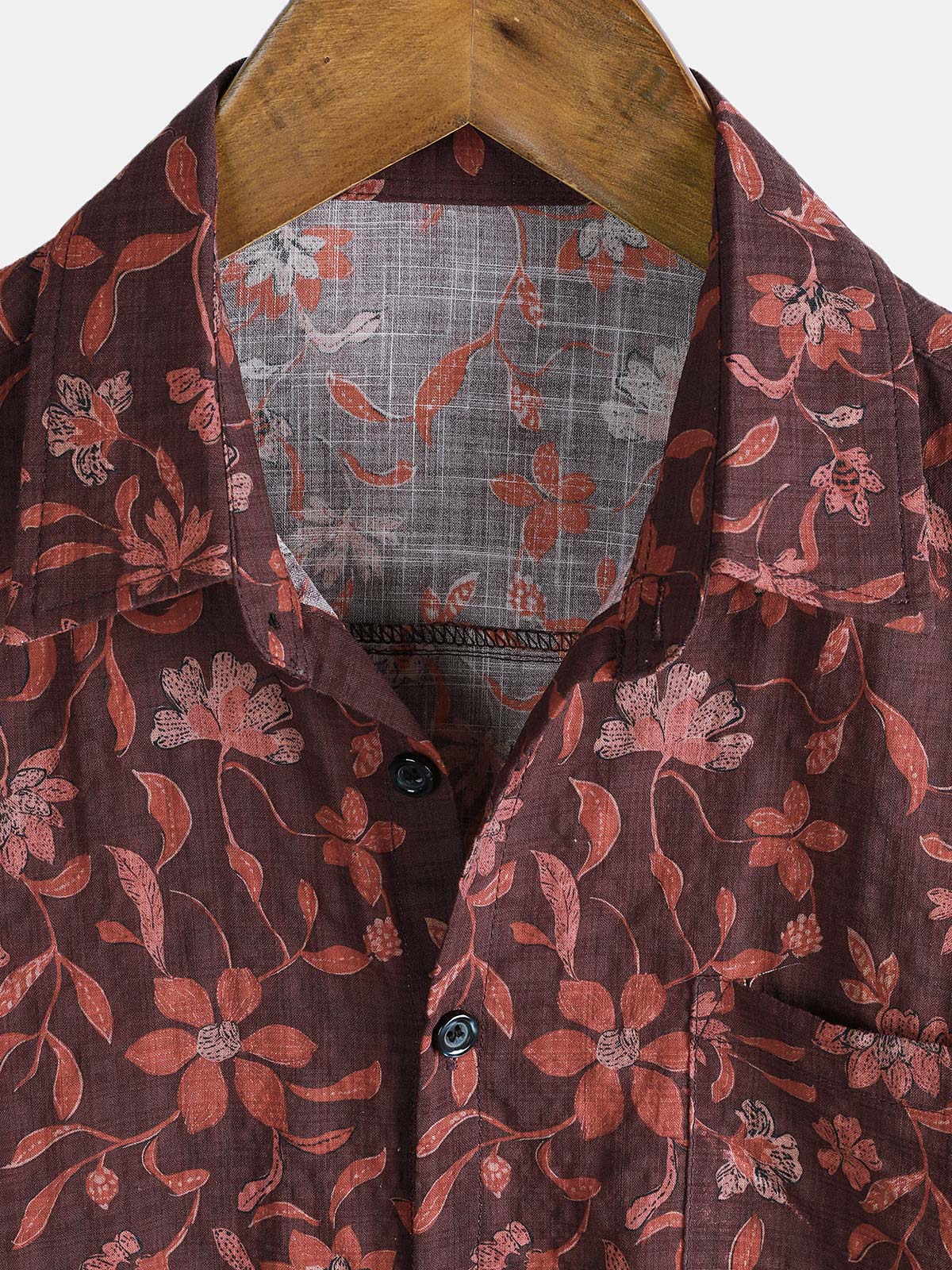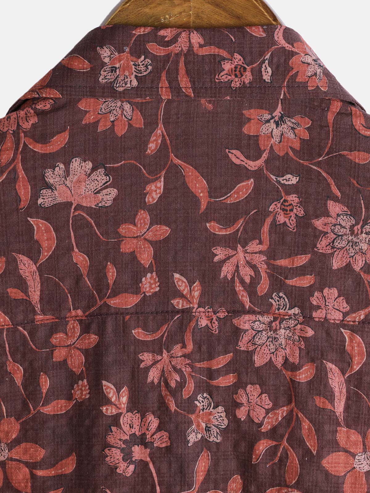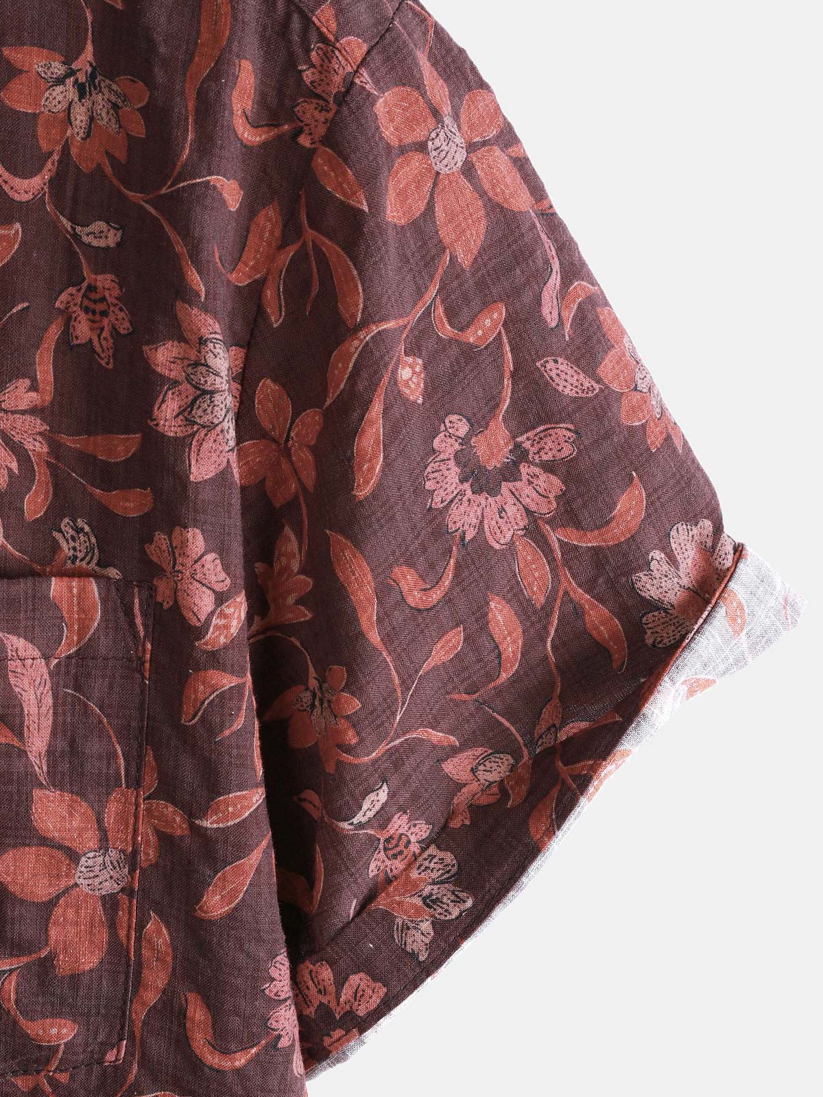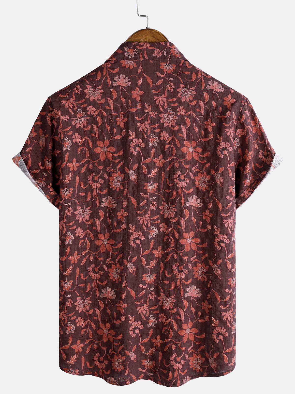 Men's Lightweight Breathable Cotton Botanical Graphic Summer Casual Shirt