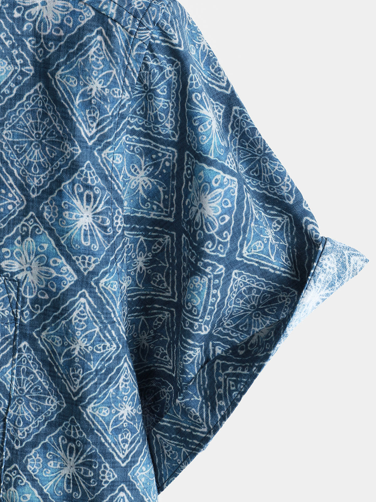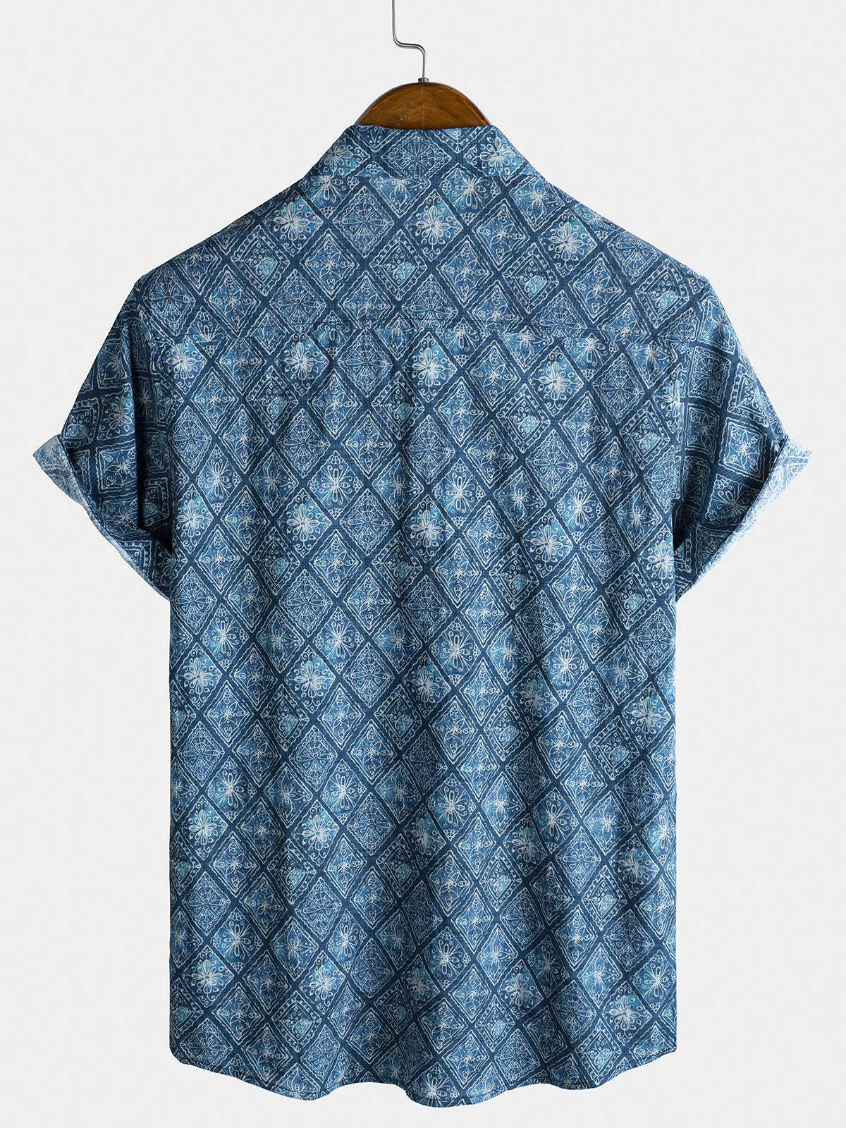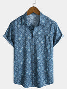 Men's Retro Bohemian Print Pocket Summer Short Sleeve Shirt