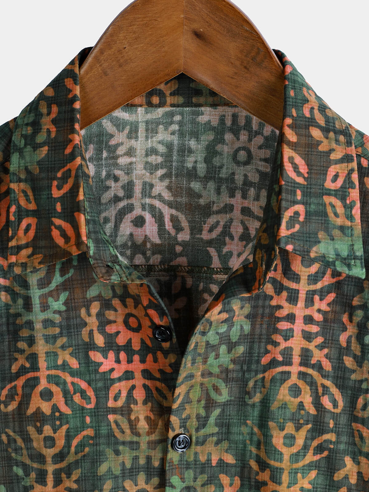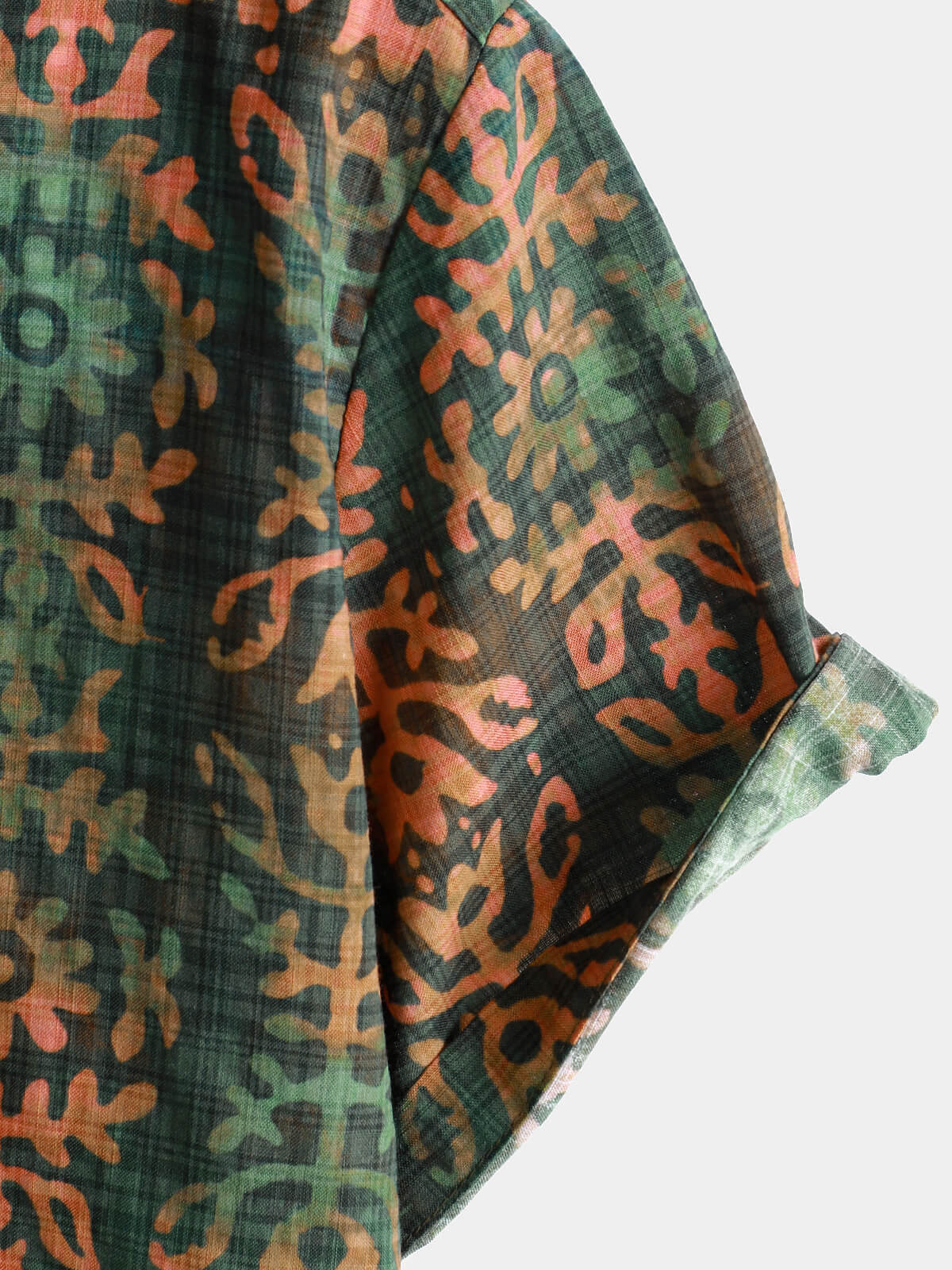 Men's Retro Print Holiday Short Sleeve Summer Shirt