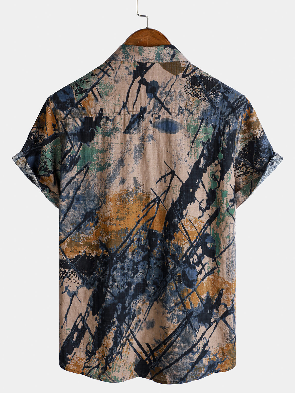 Men's Summer Abstract Pocket Holiday Button Up Short Sleeve Shirt