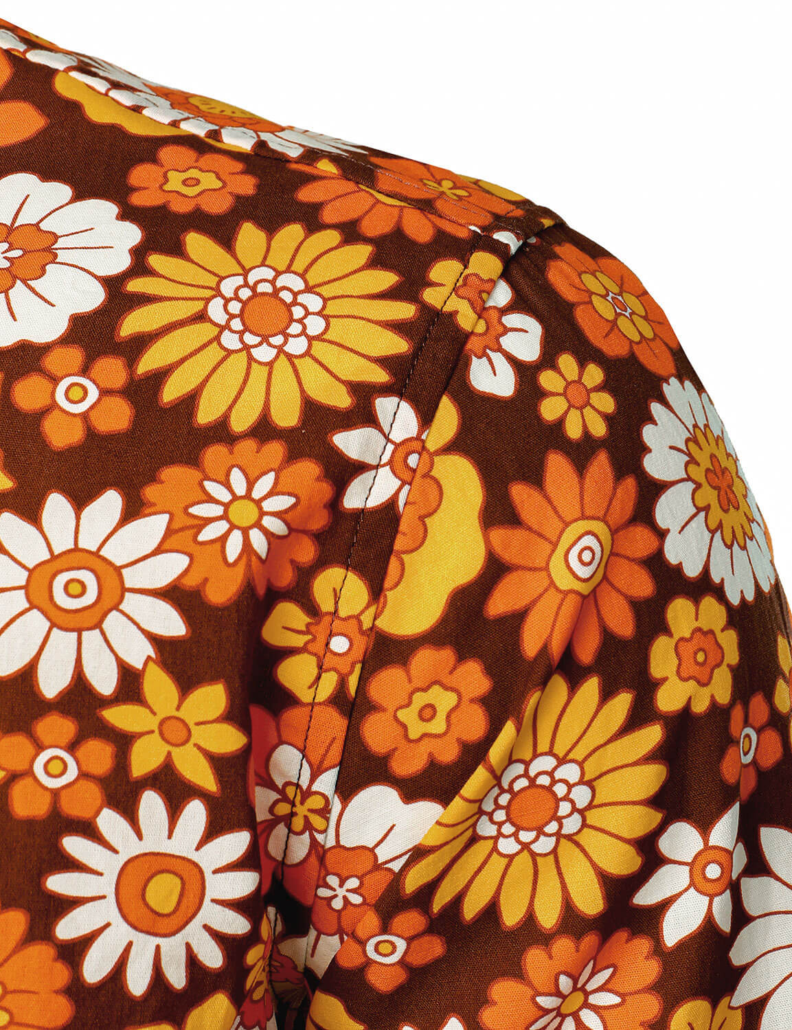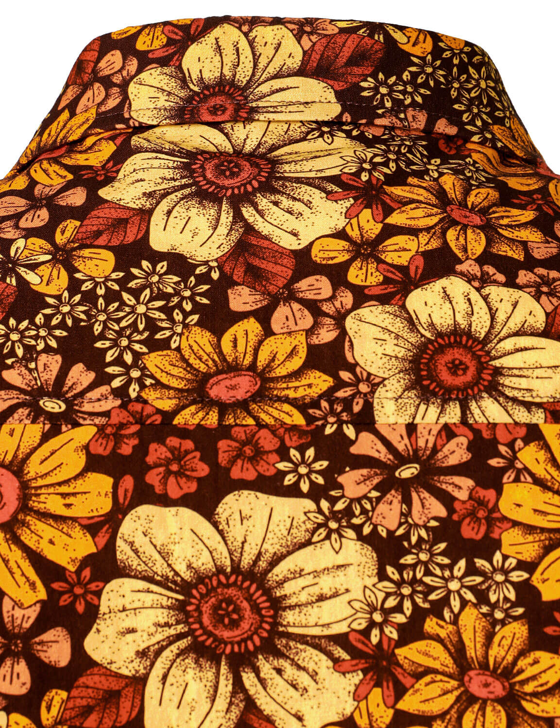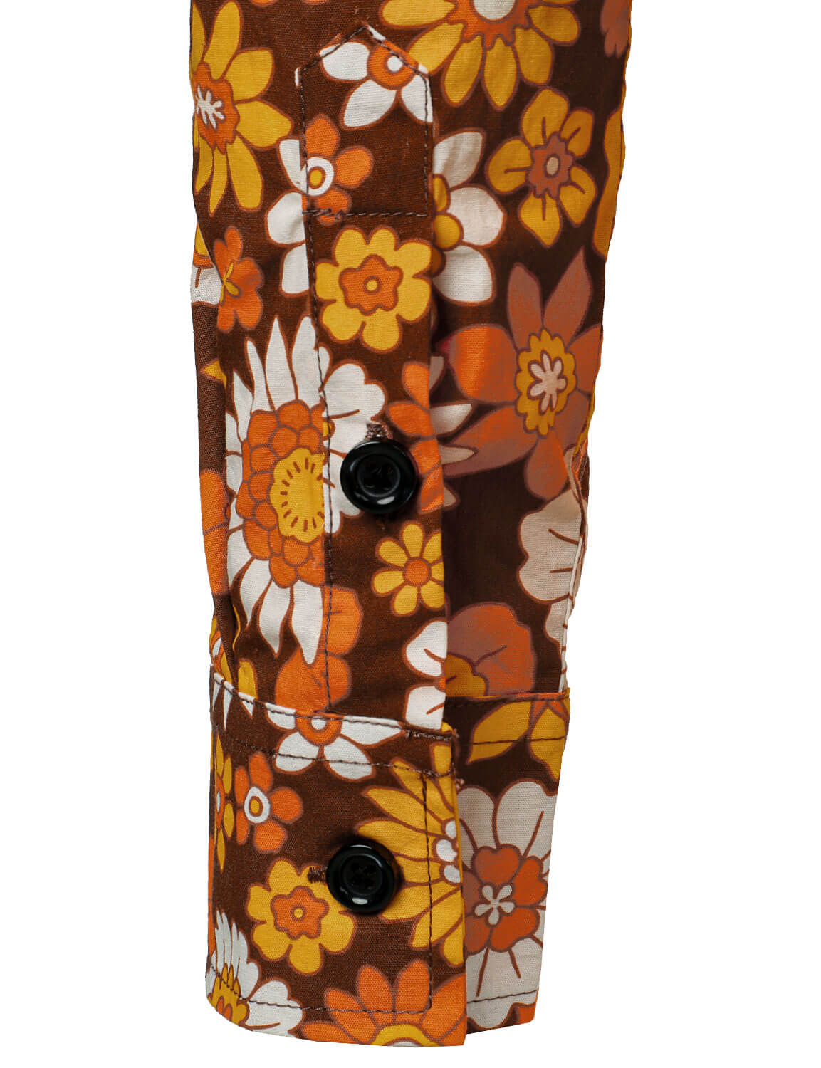 Men's 70s Floral Print Breathable Cotton Brown Long Sleeve Shirt