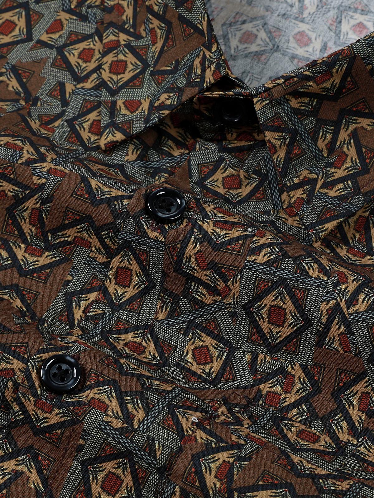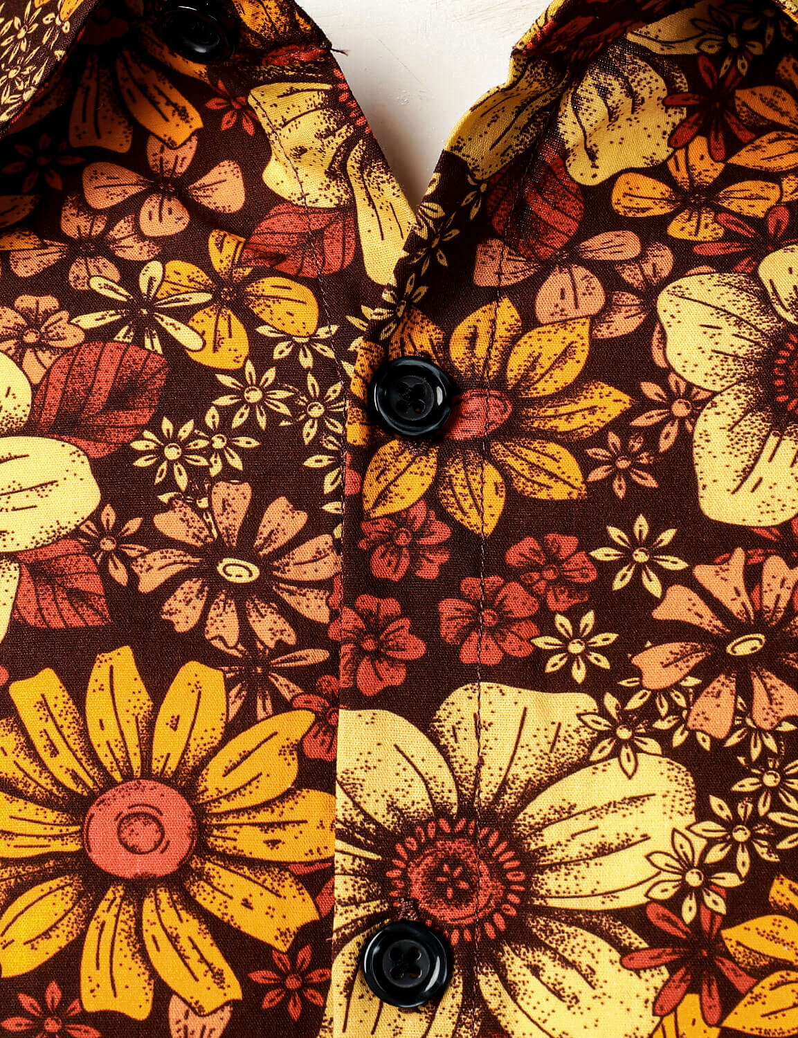 Men's Floral Print Vintage Holiday Brown Hawaiian Short Sleeve Shirt