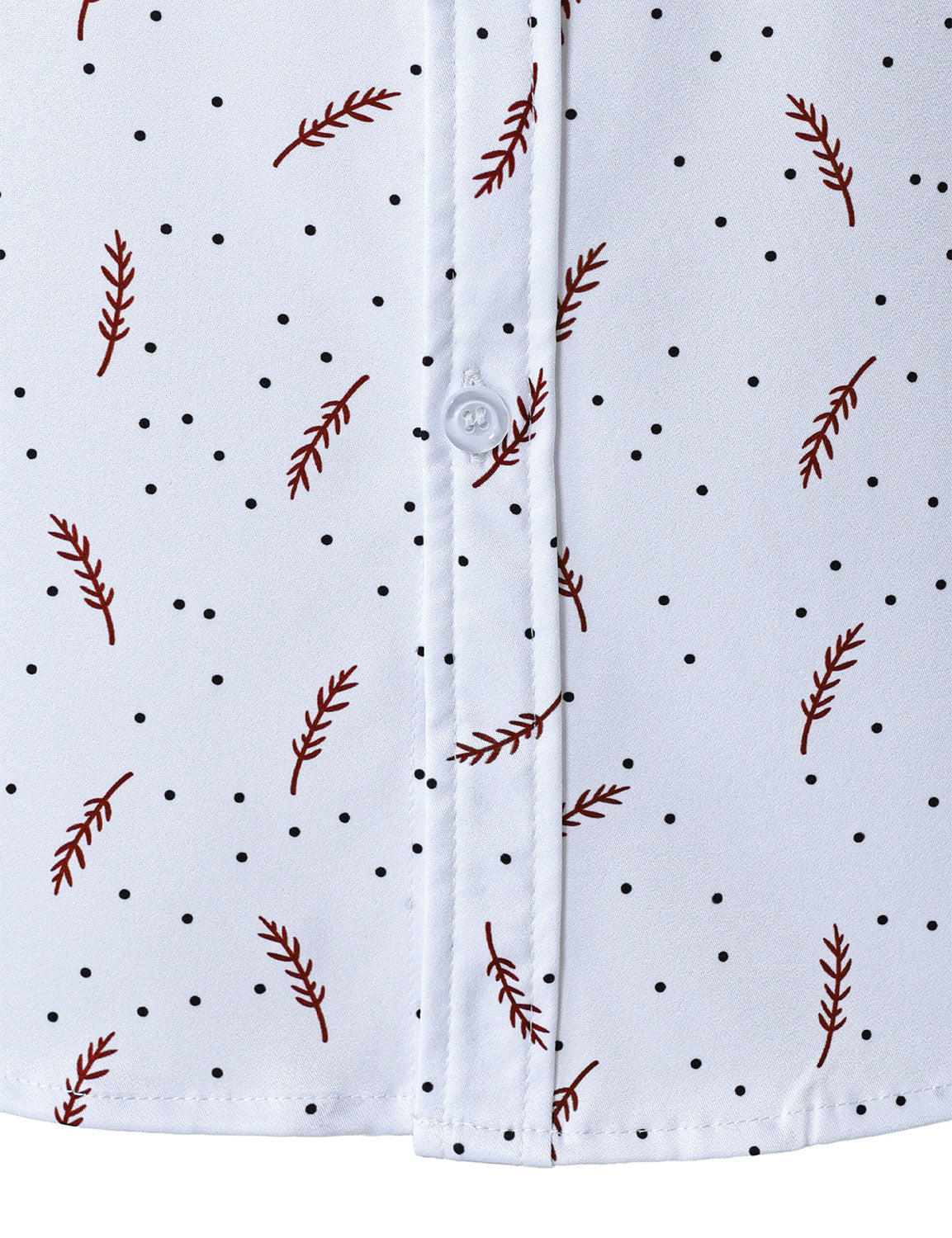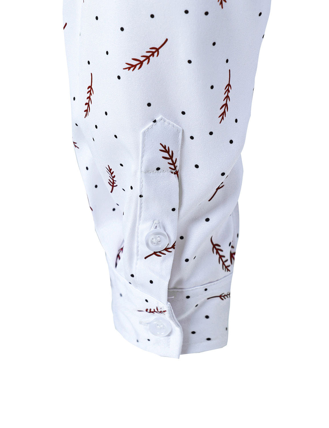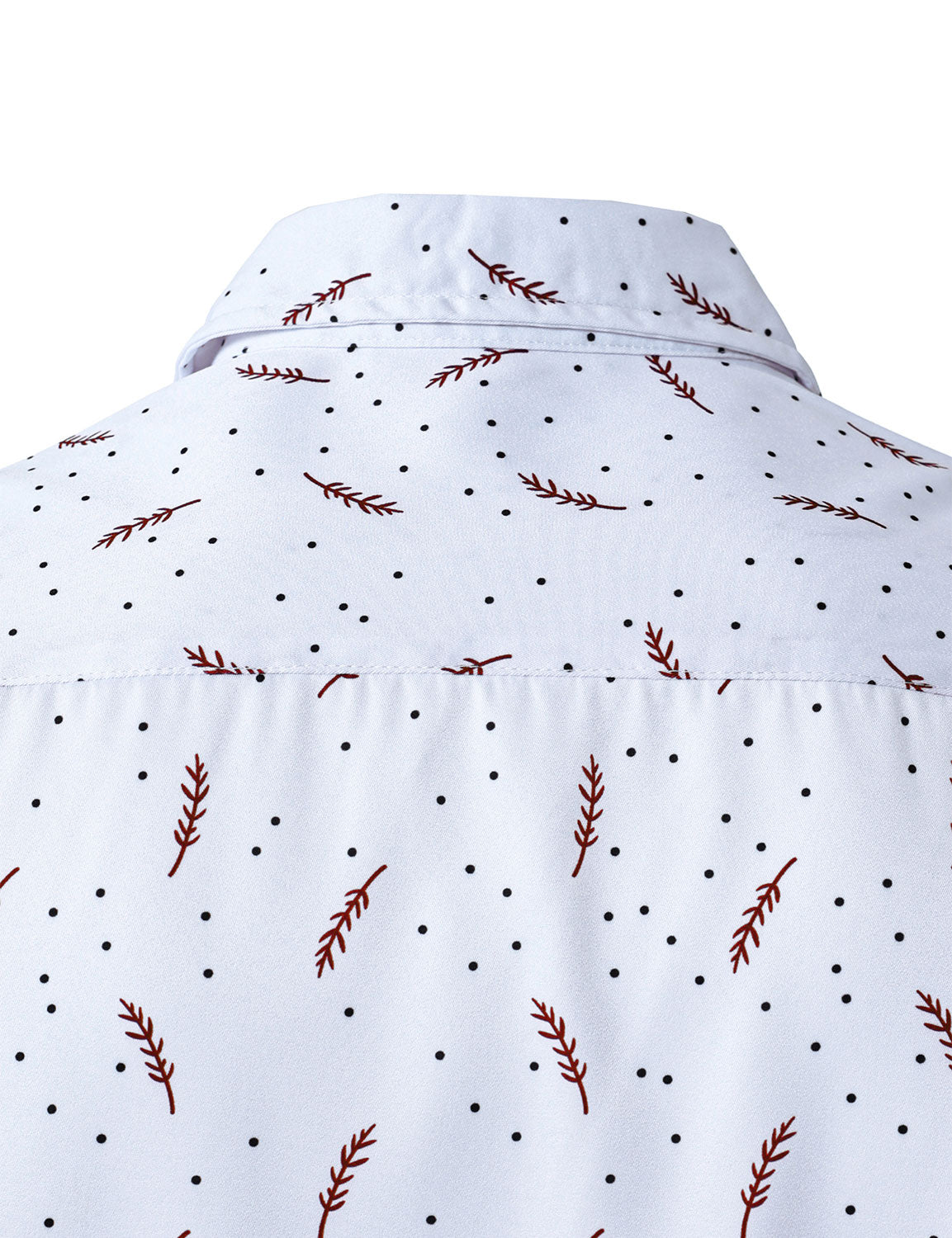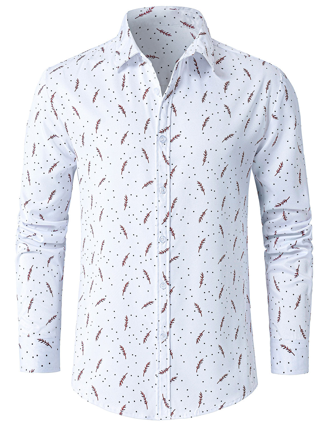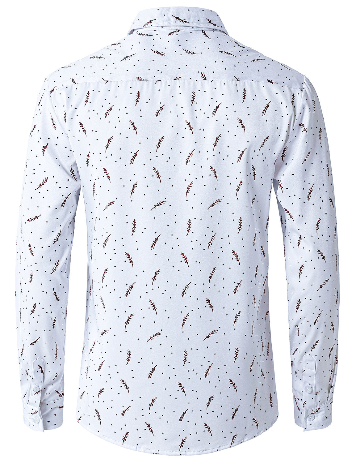 Men's White Breathable Cotton Floral Print Long Sleeve Shirt