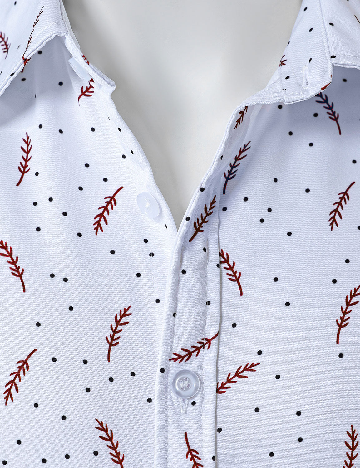 Men's Casual Holiday Wine Glass Print Red Long Sleeve Cotton Party Shirt