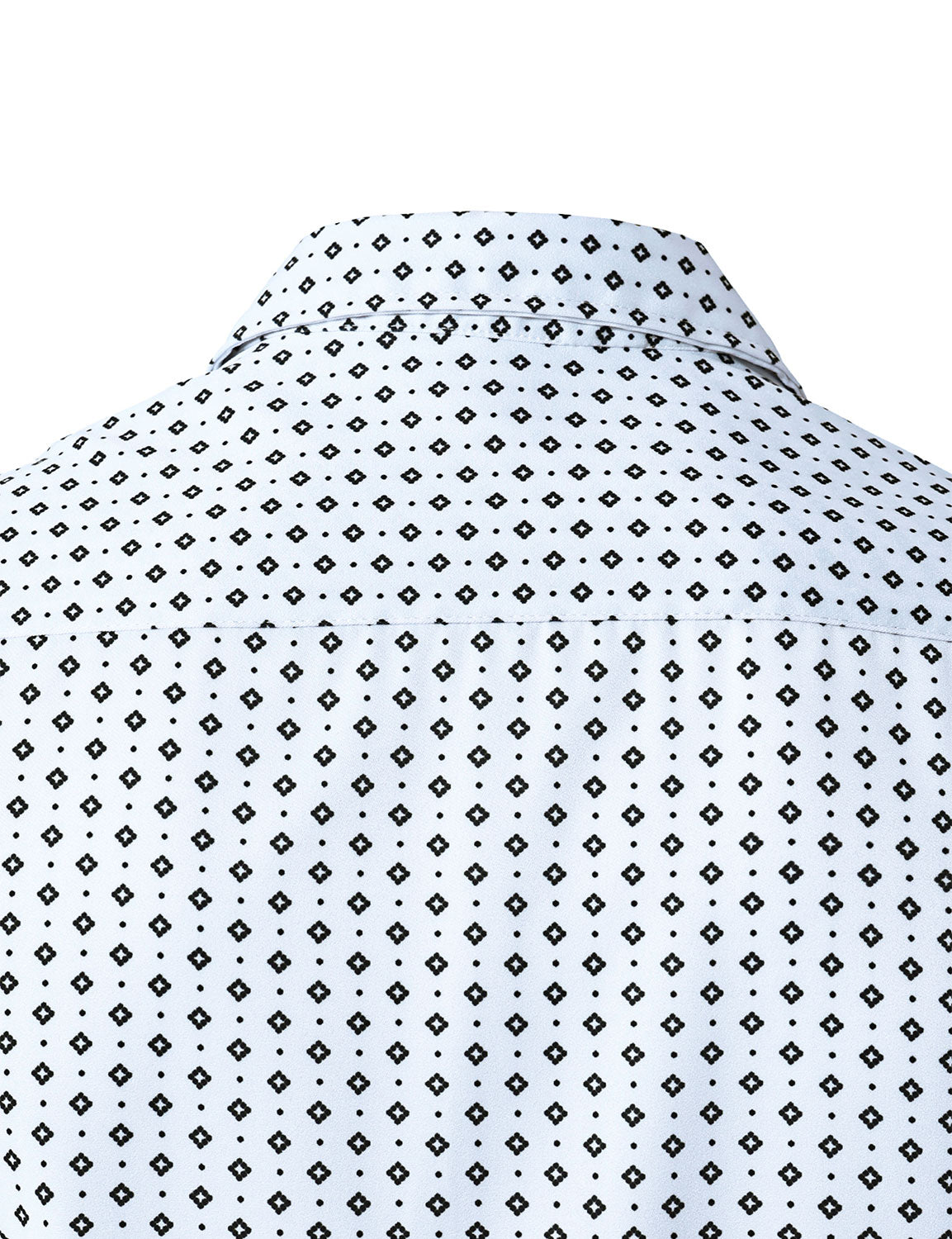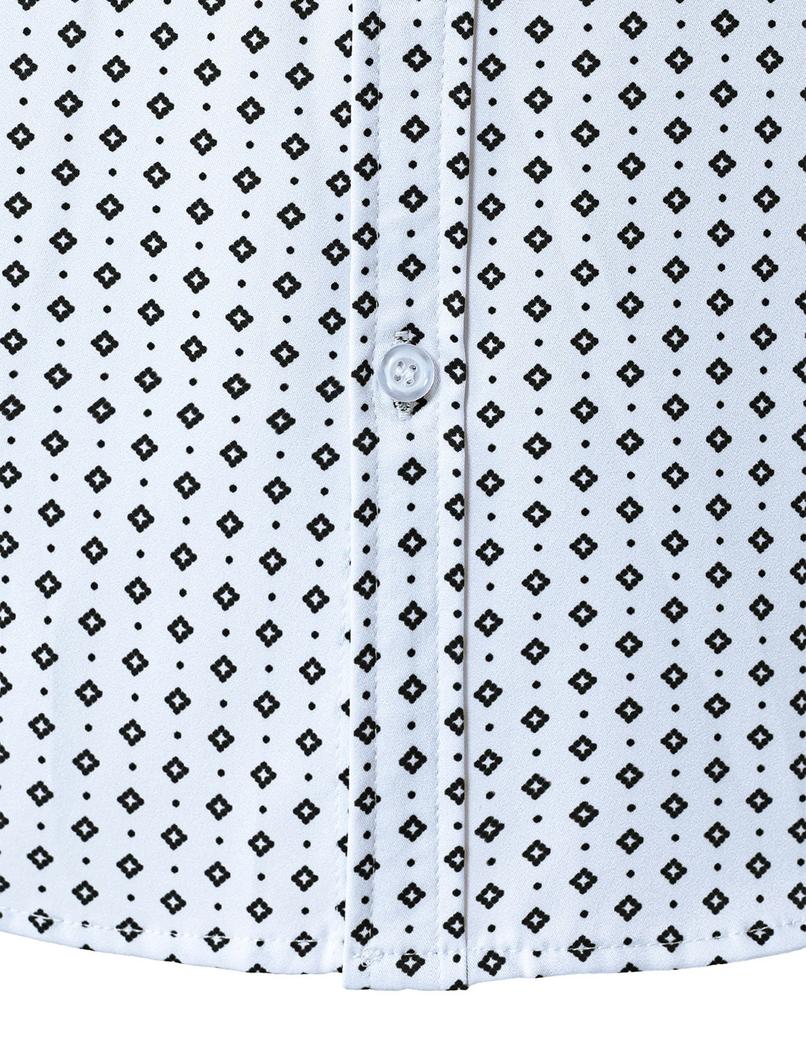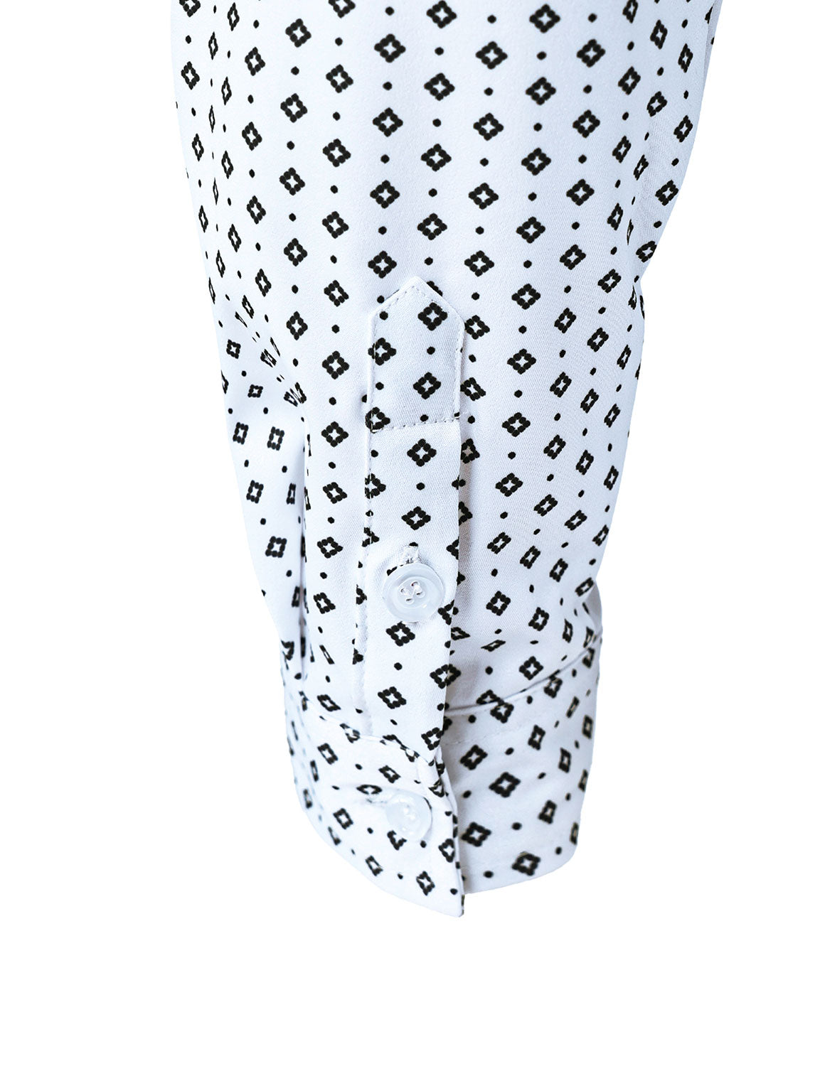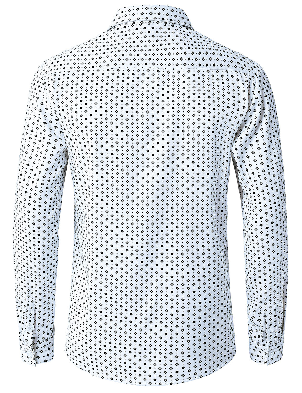 Men's White Retro Geometric Print Long Sleeve Shirt