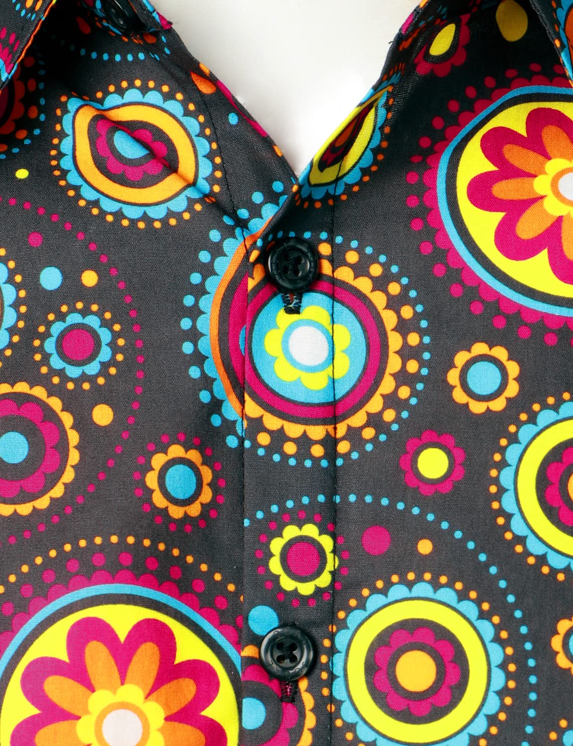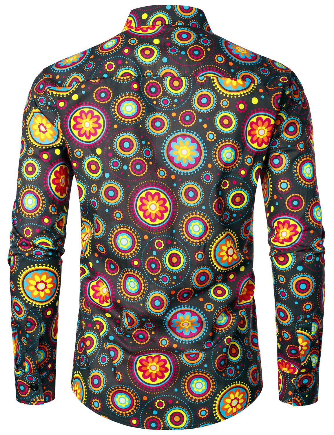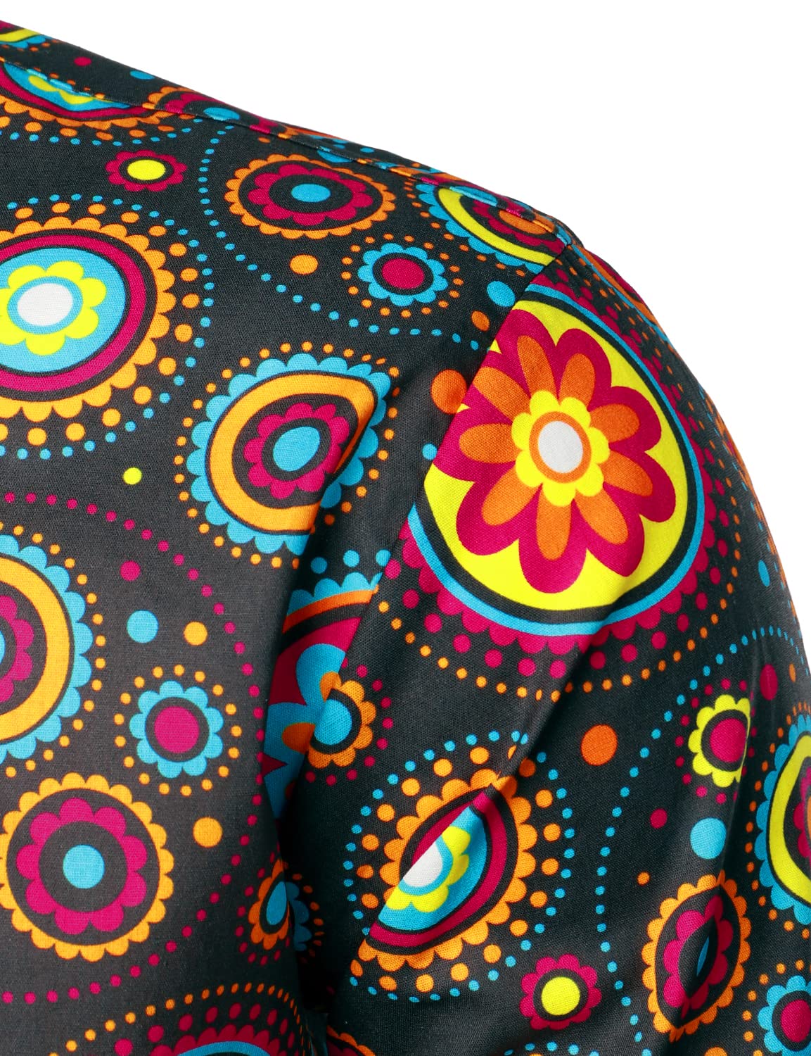 Men's Floral Vintage Button Up 70s Themed Disco Party Long Sleeve Shirt