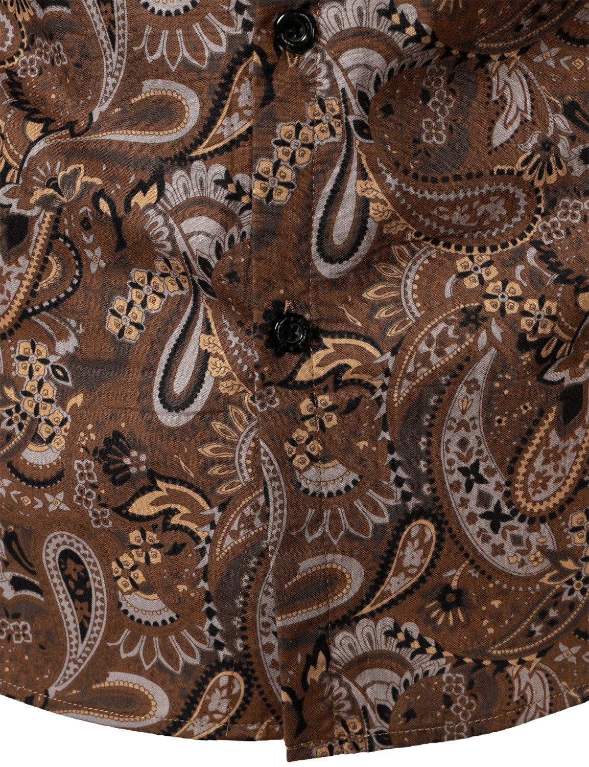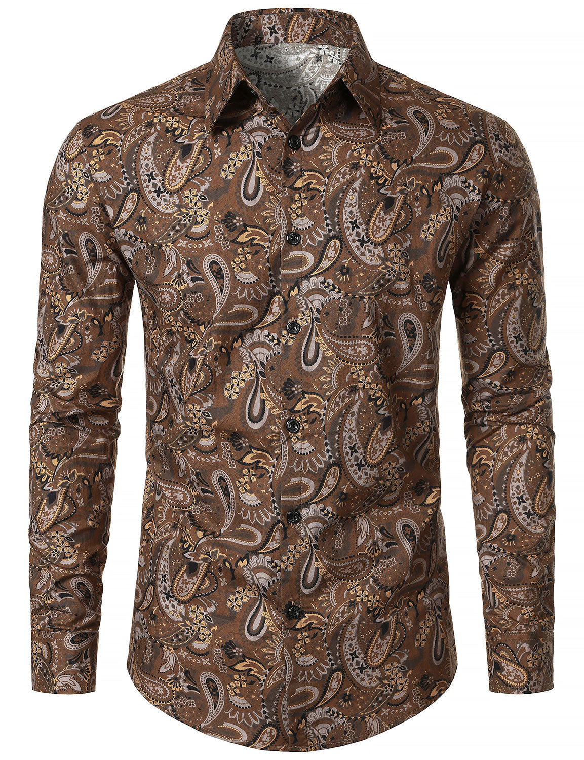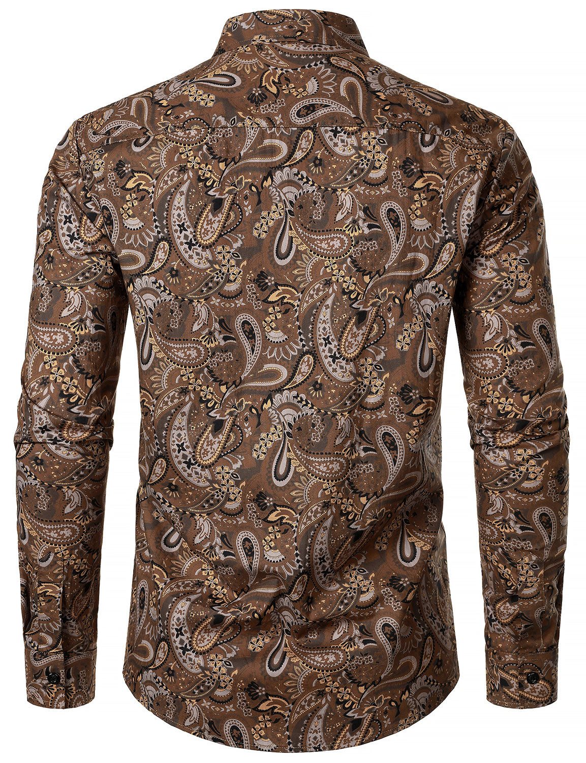 Men's Brown Retro Paisley Print Breathable Cotton Long Sleeve Shirt