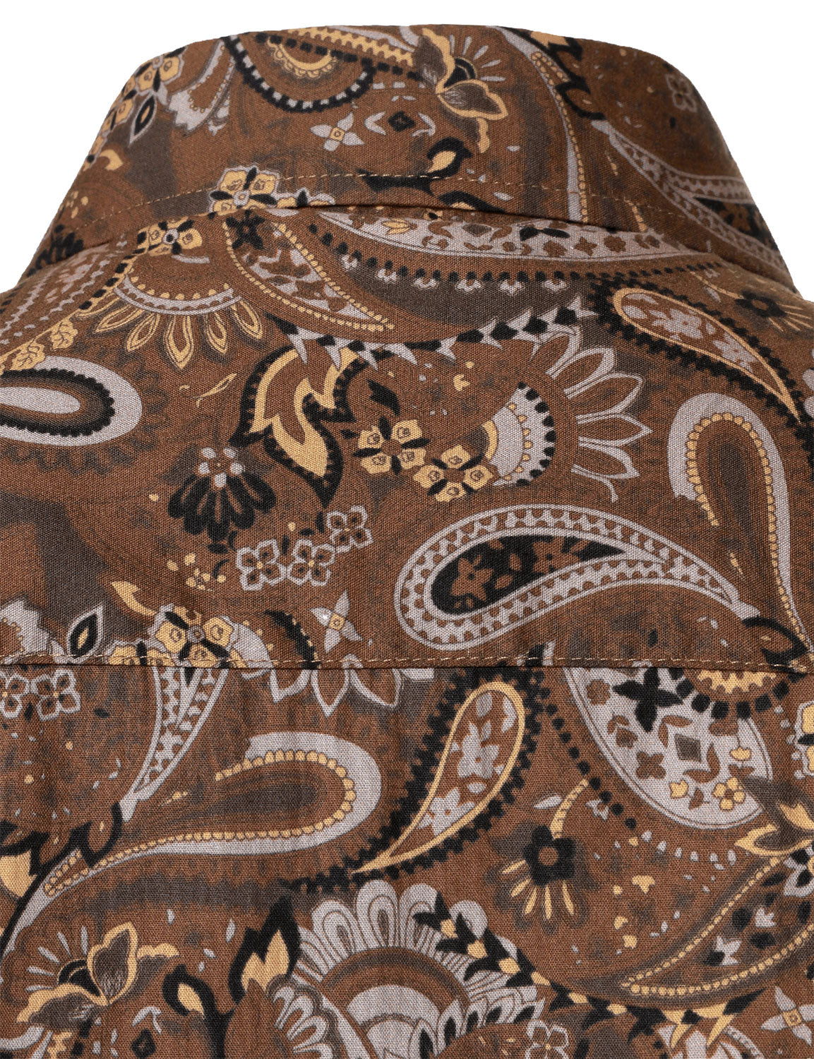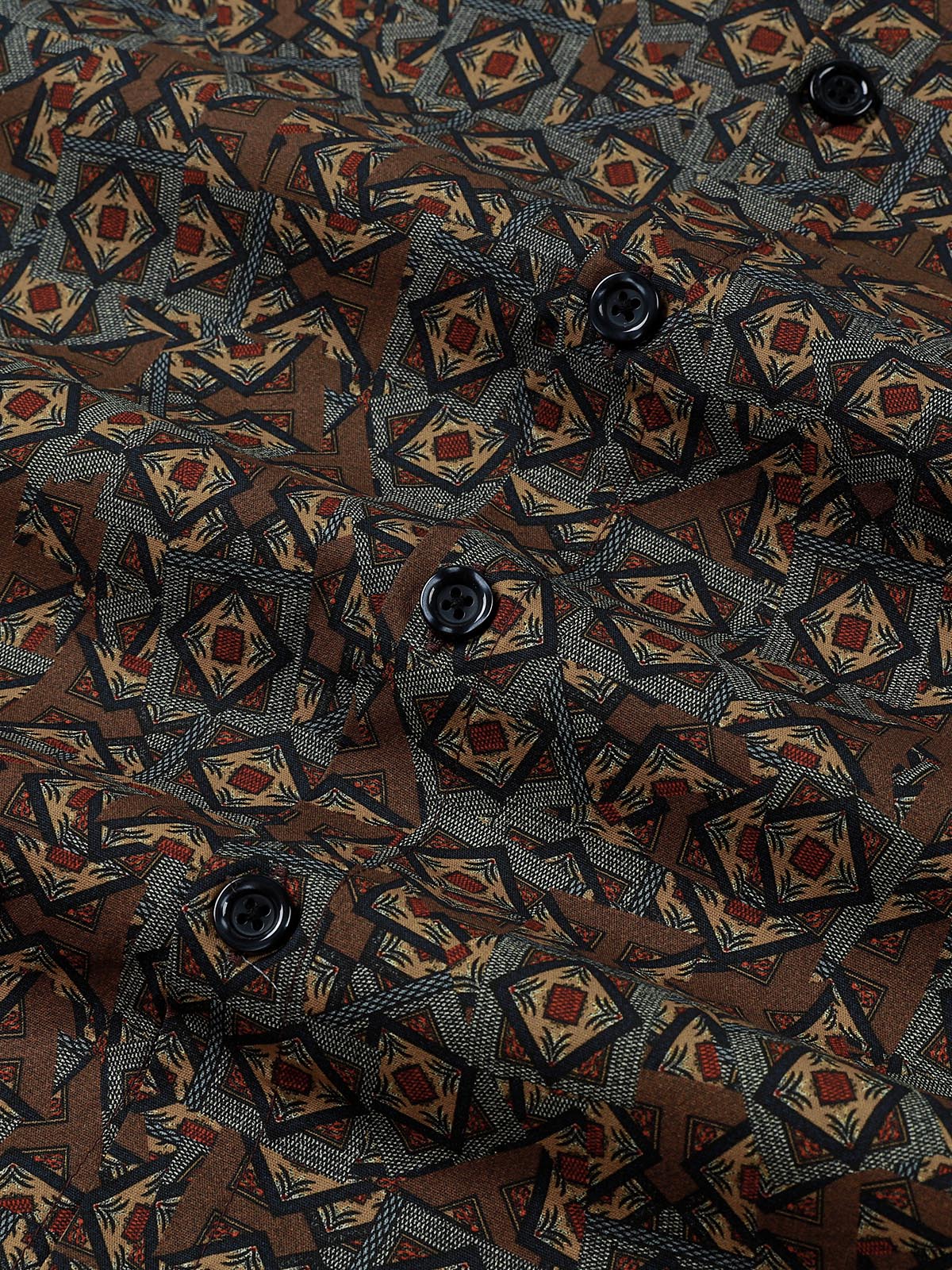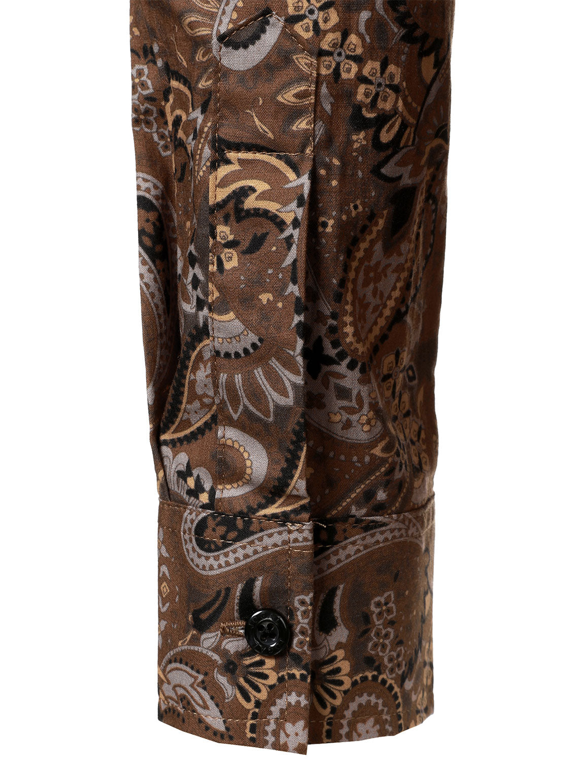 Men's Brown Retro Paisley Print Breathable Cotton Long Sleeve Shirt