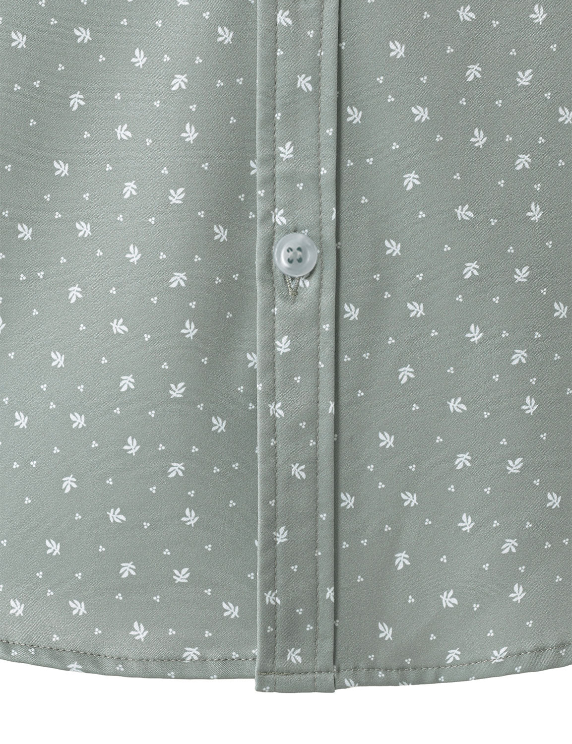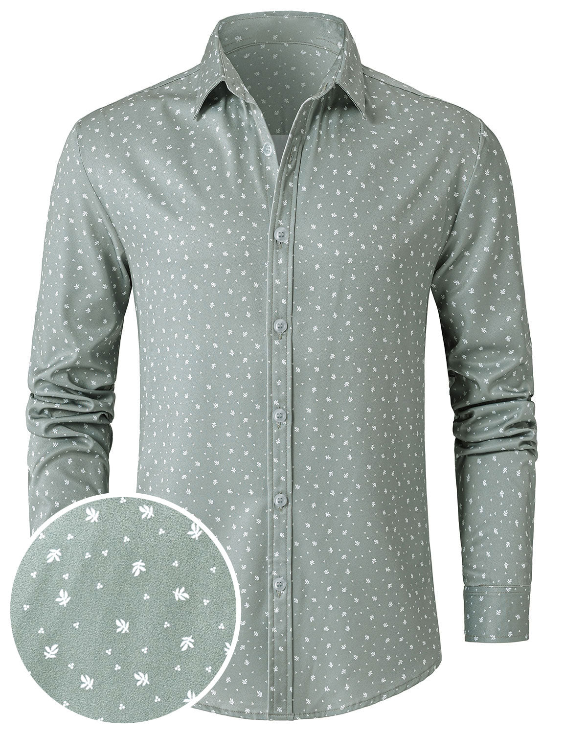 Men's Green Floral Print Cotton Long Sleeve Shirt