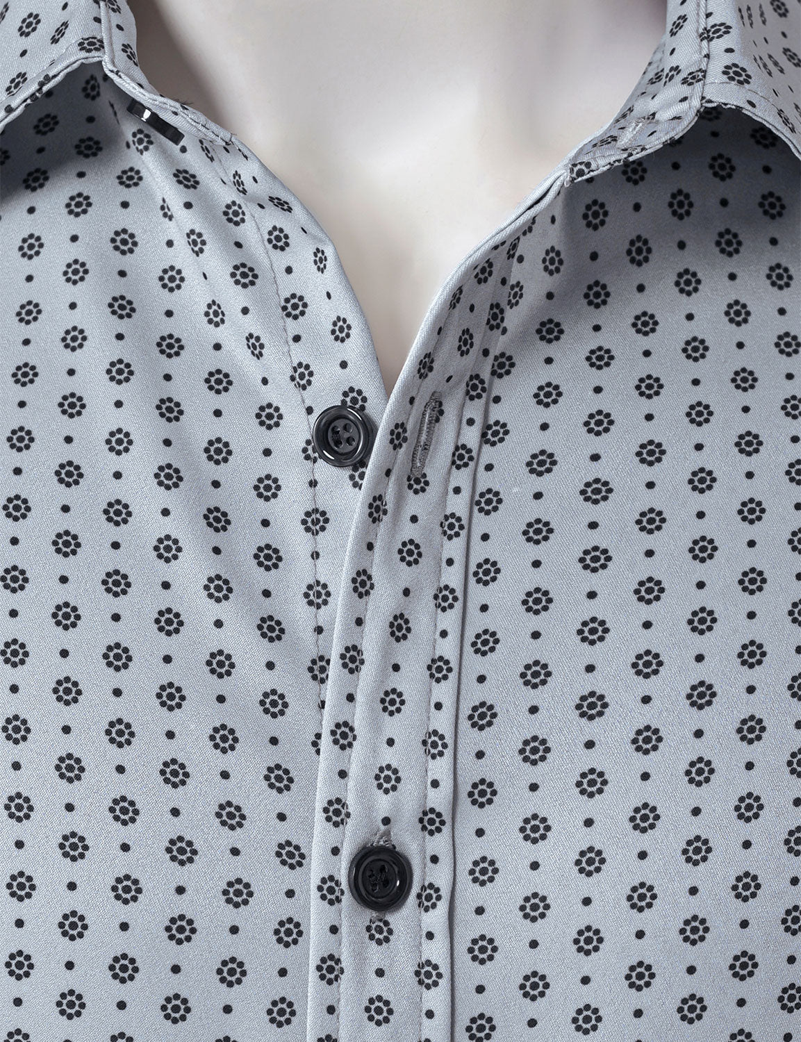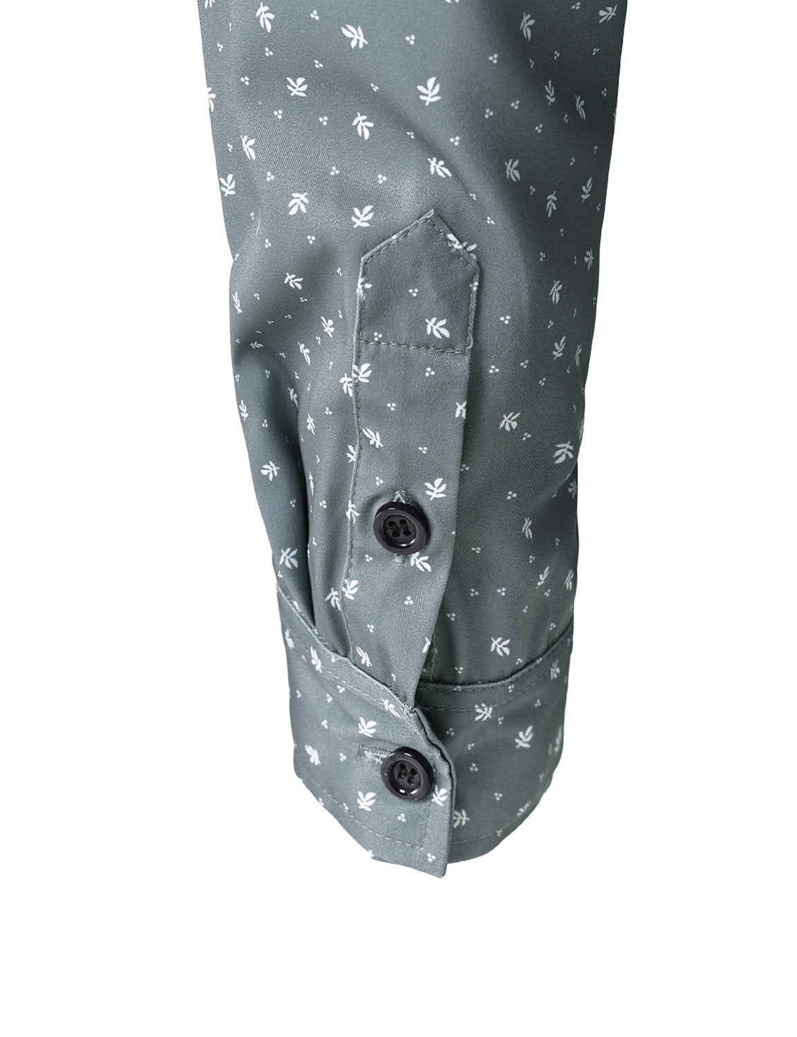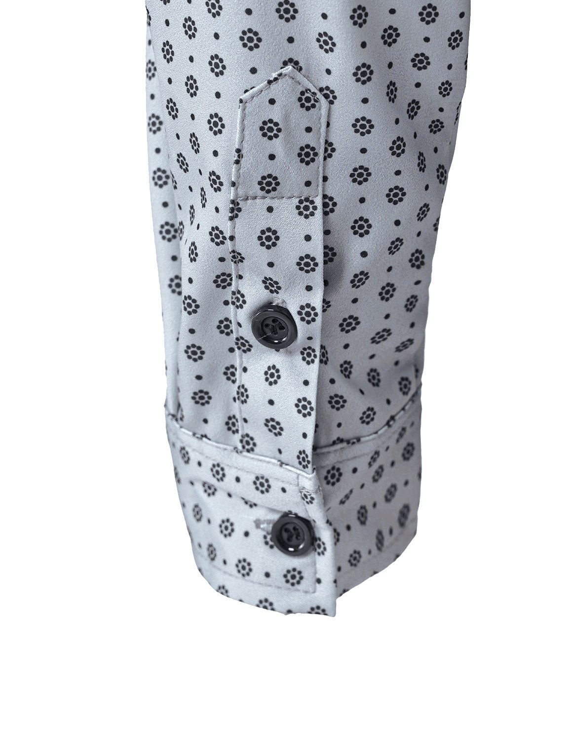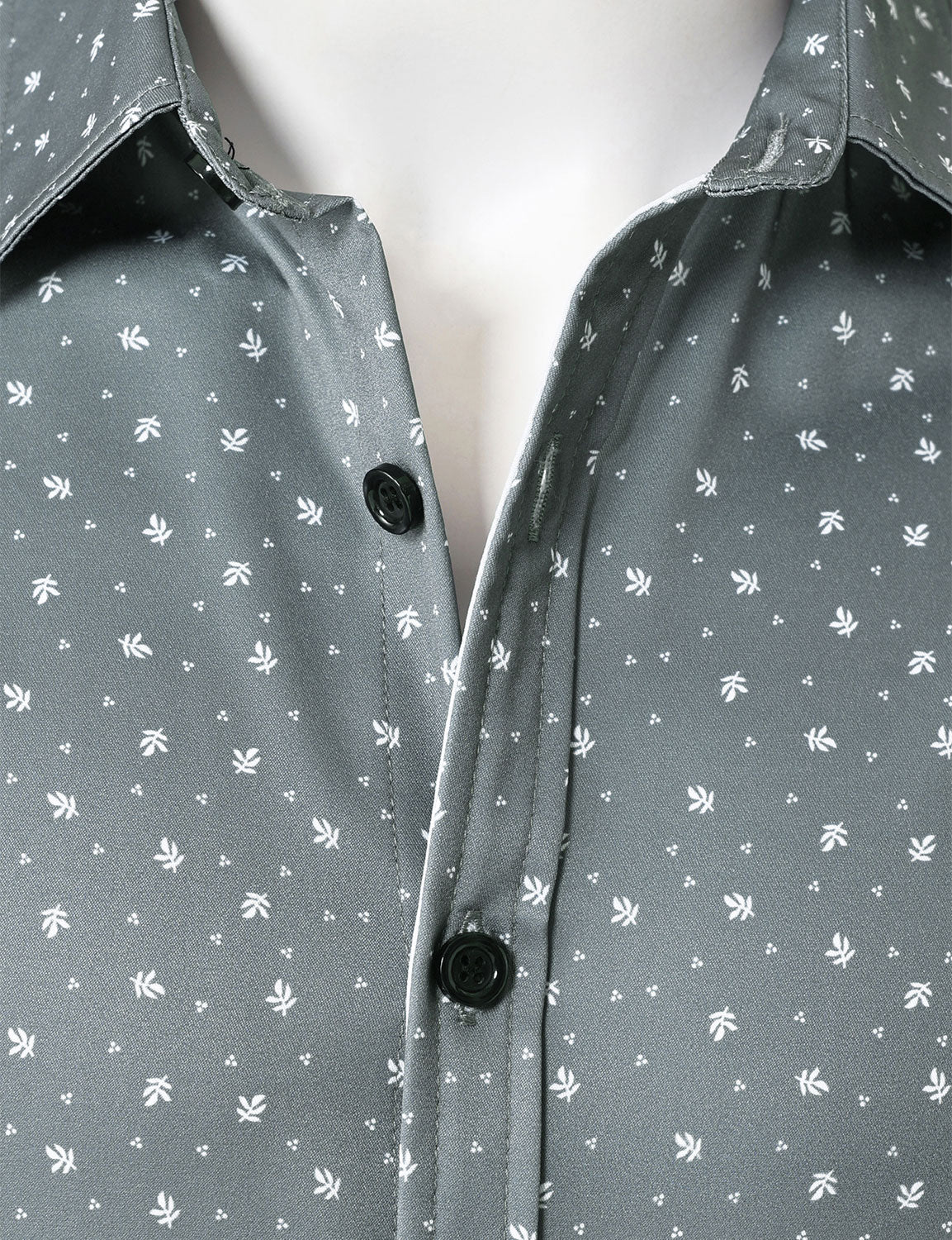 Men's Grey Cotton Floral Print Long Sleeve Shirt