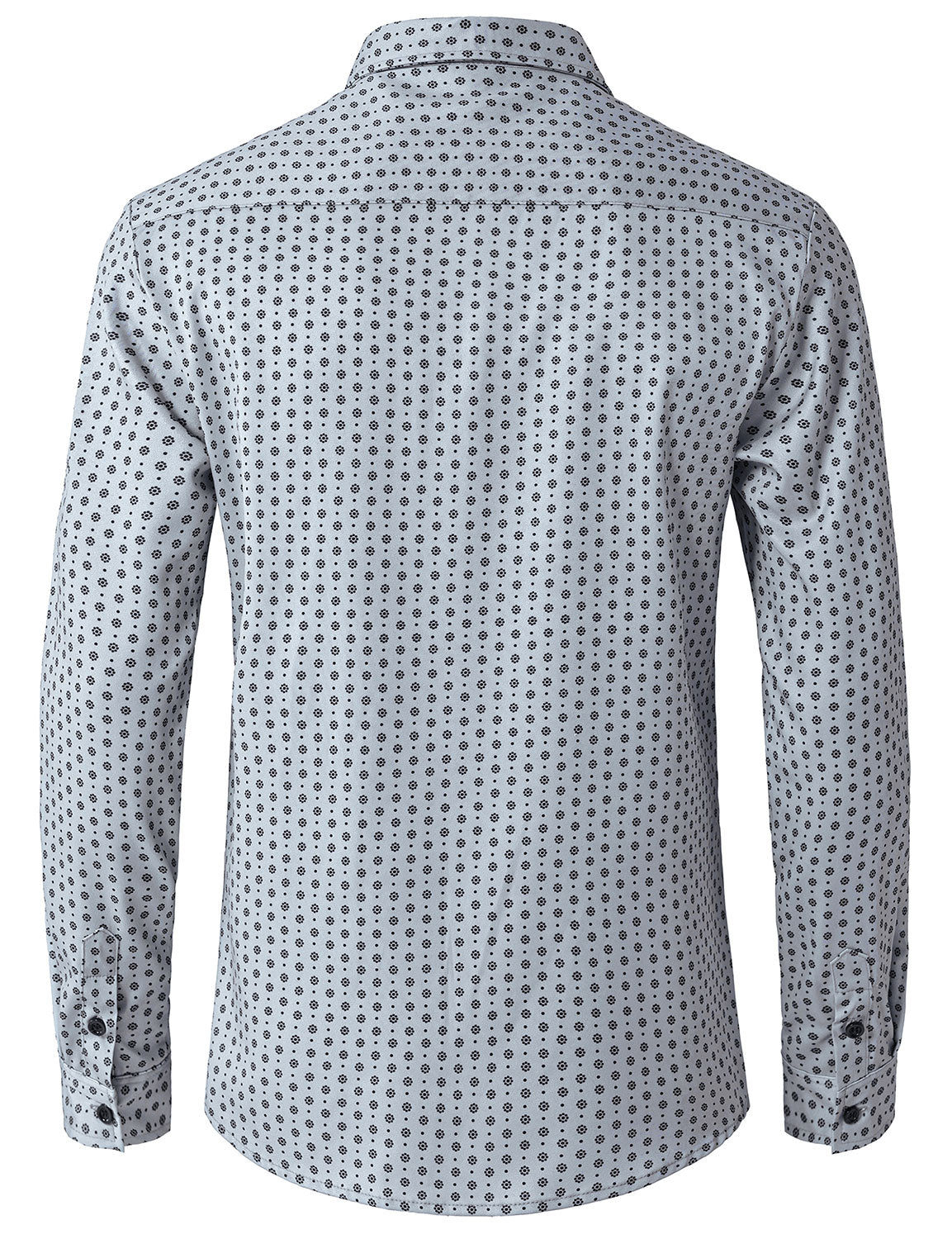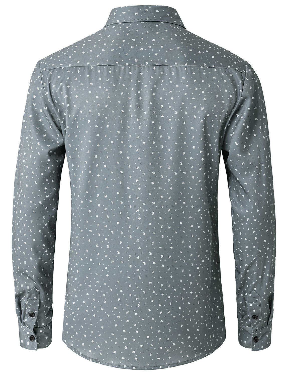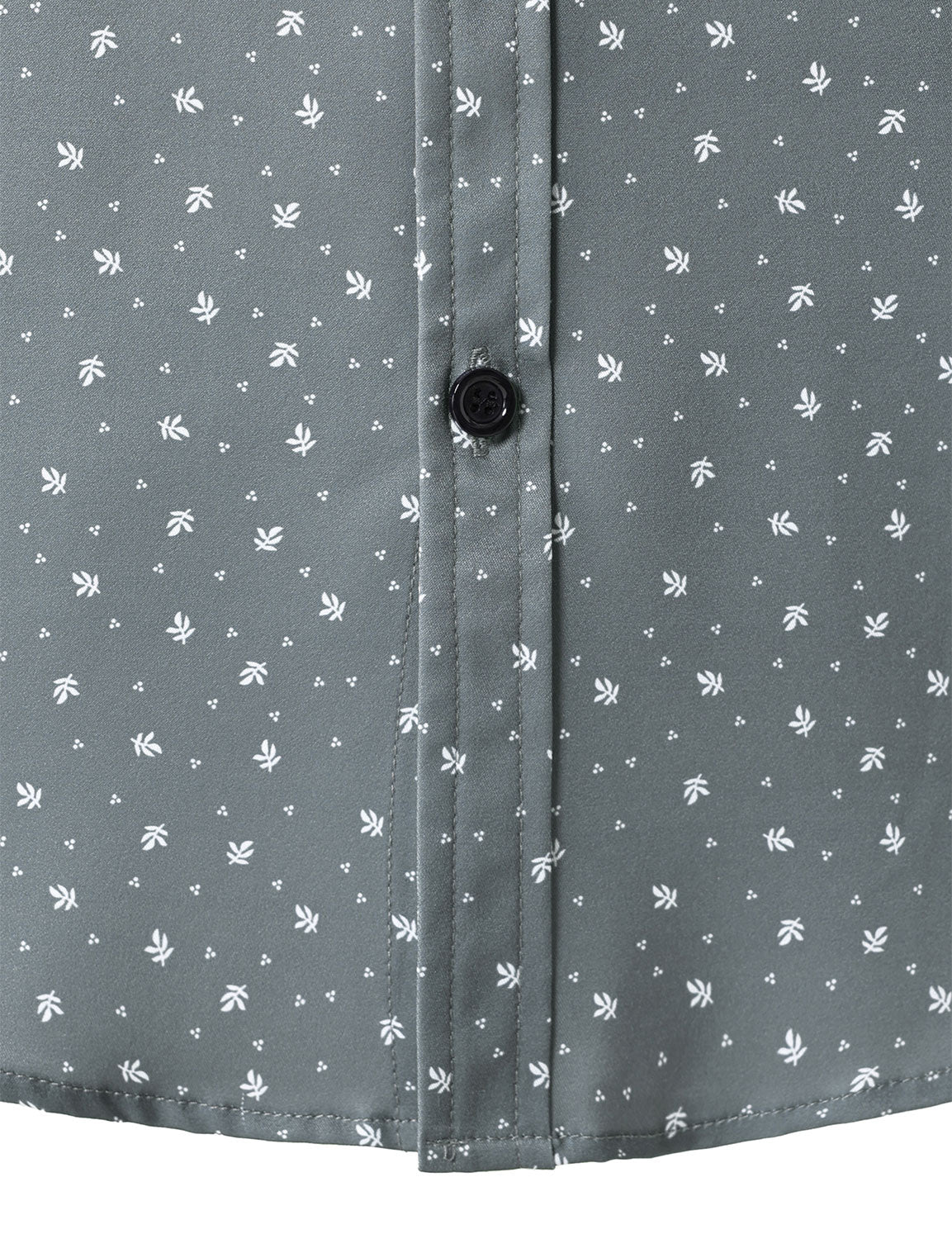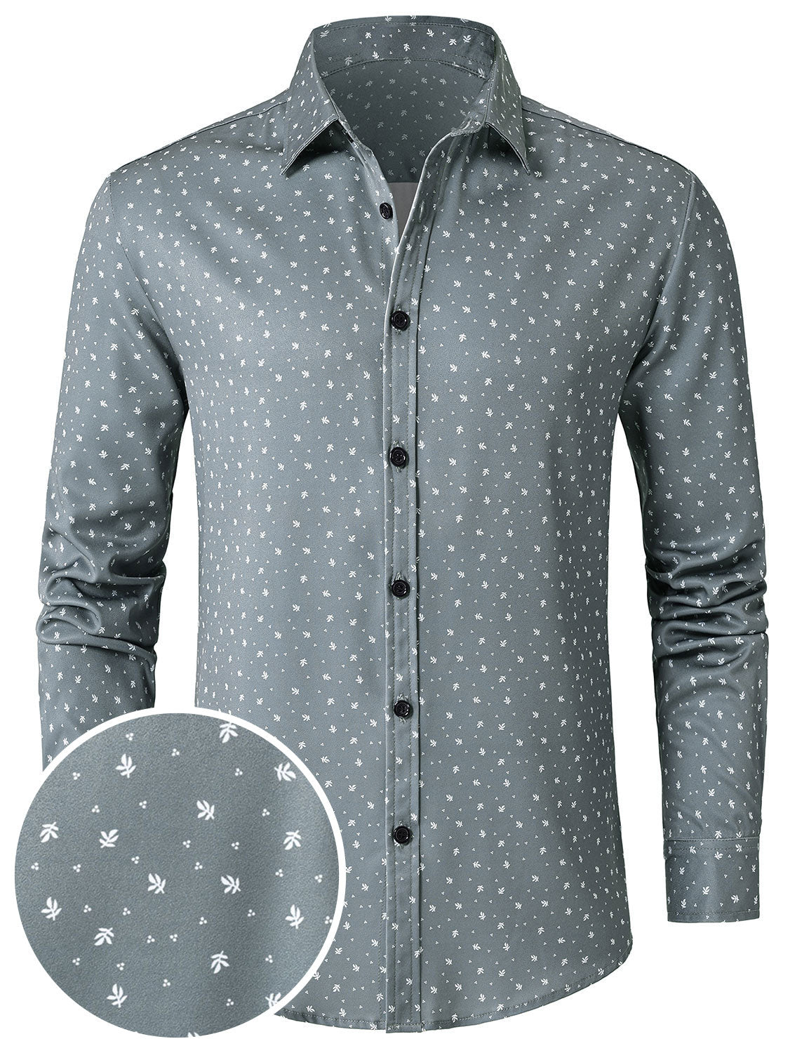 Men's Grey Cotton Floral Print Long Sleeve Shirt