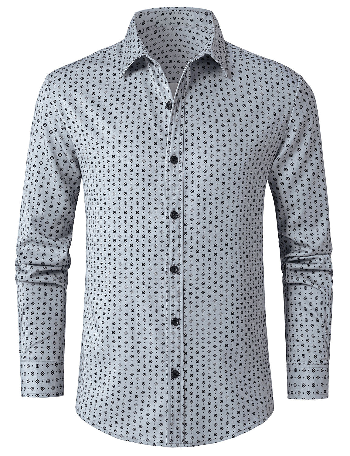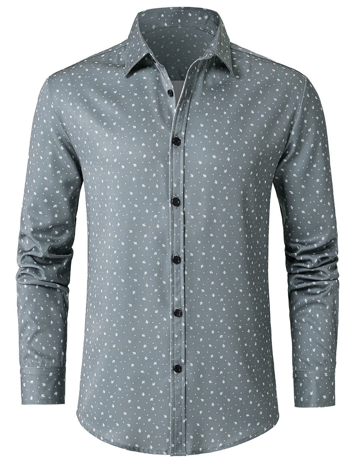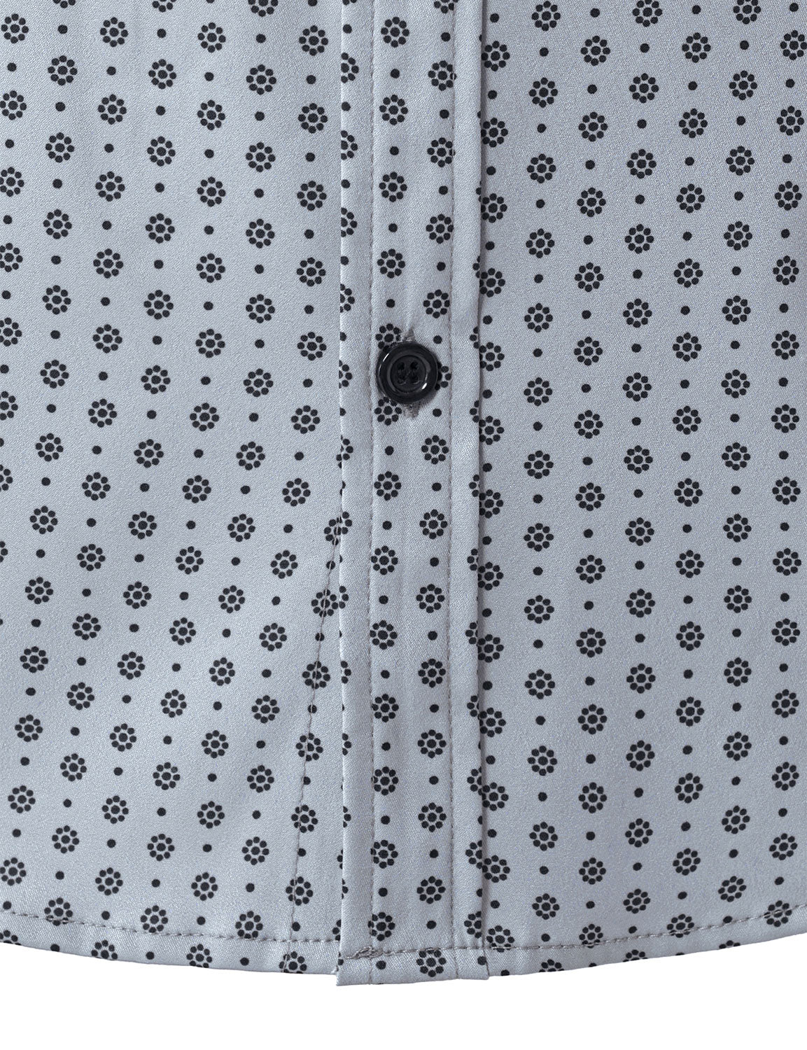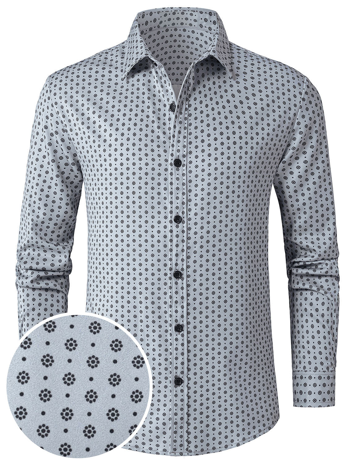 Men's Grey Cotton Floral Print Long Sleeve Shirt