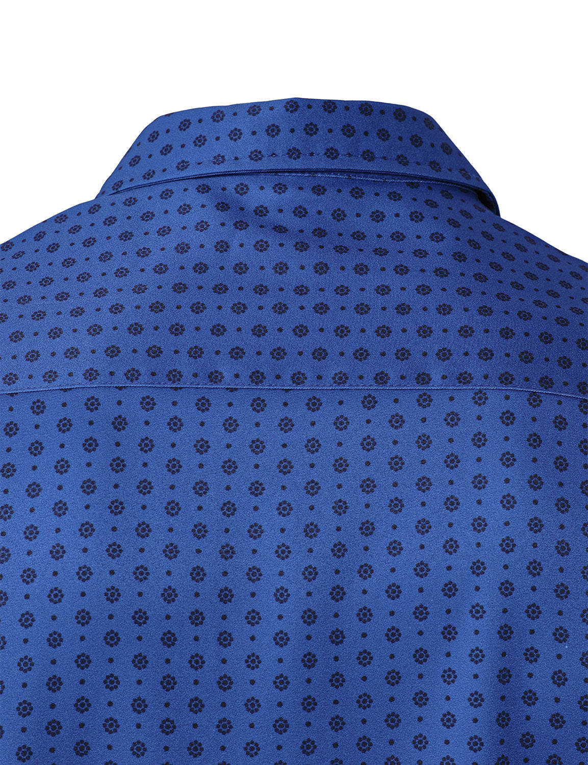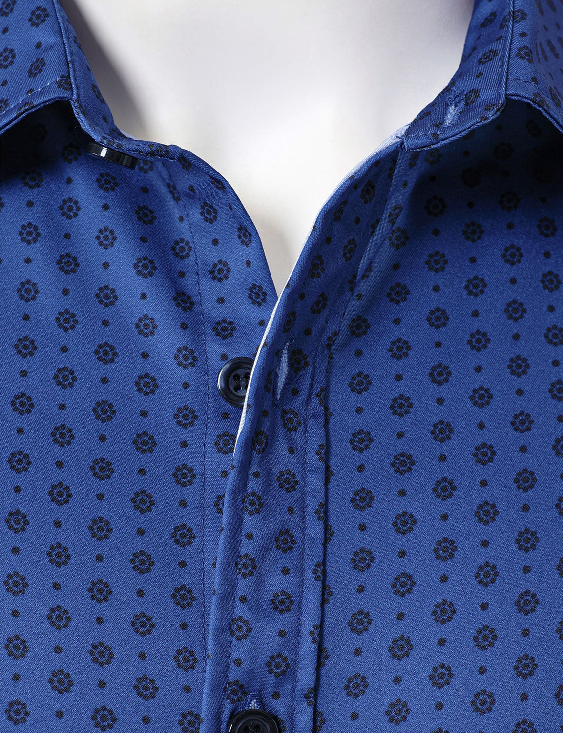 Men's Breathable Cotton 70s Floral Print Navy Blue Long Sleeve Shirt