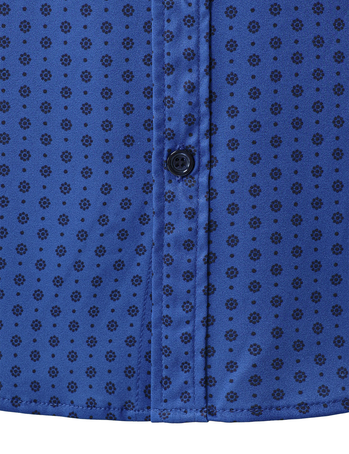 Men's Blue Rose Floral Print Long Sleeve Button Up Dress Shirt