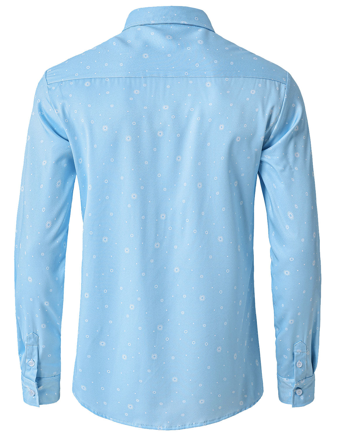 Men's Holiday Party Disco Champagne Fireworks Print Long Sleeve Button Down Shirt