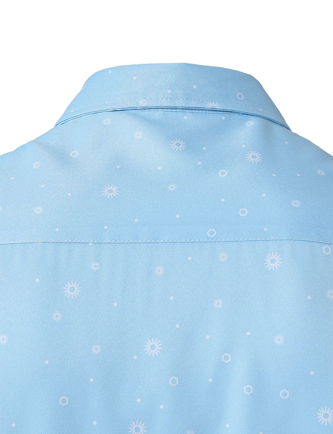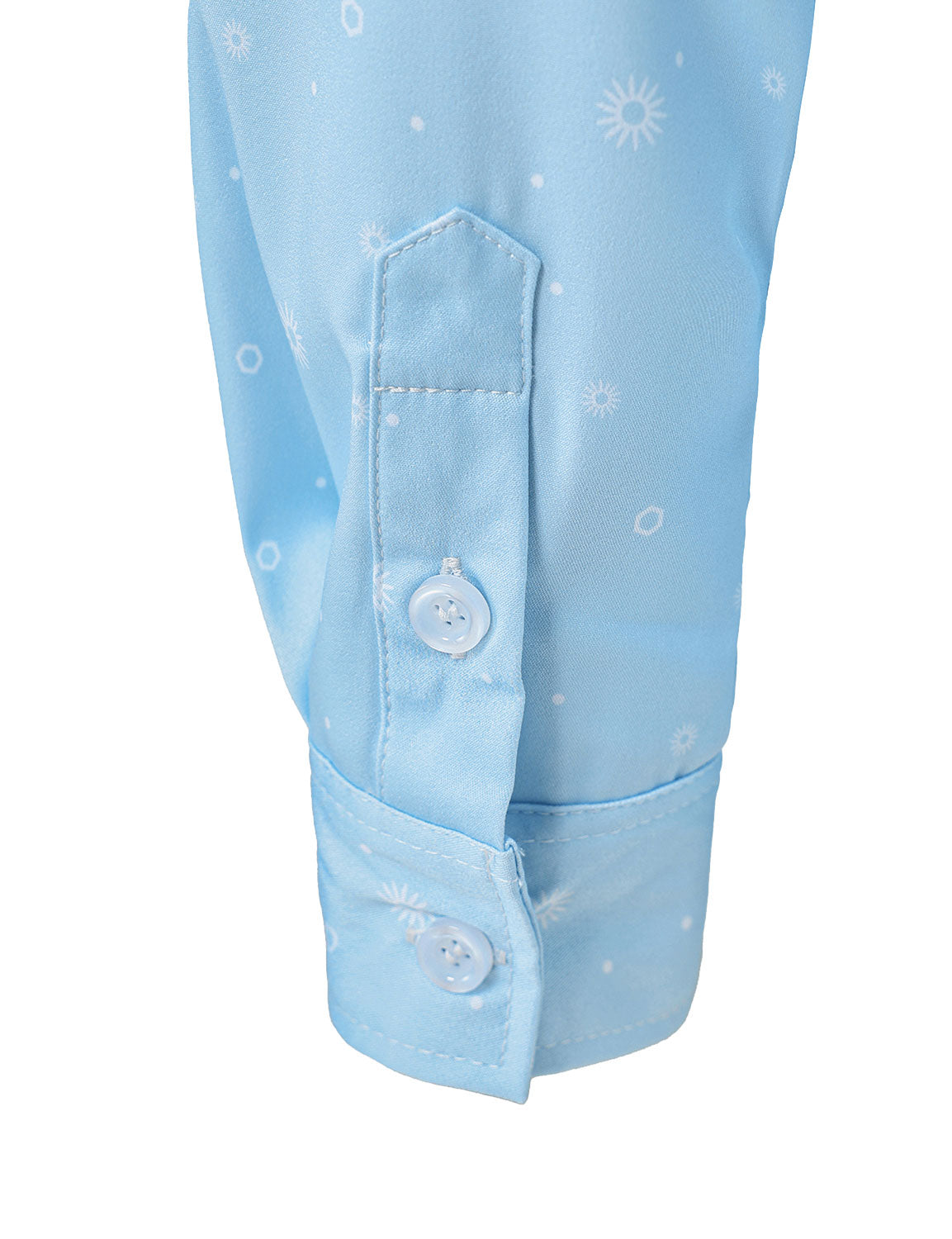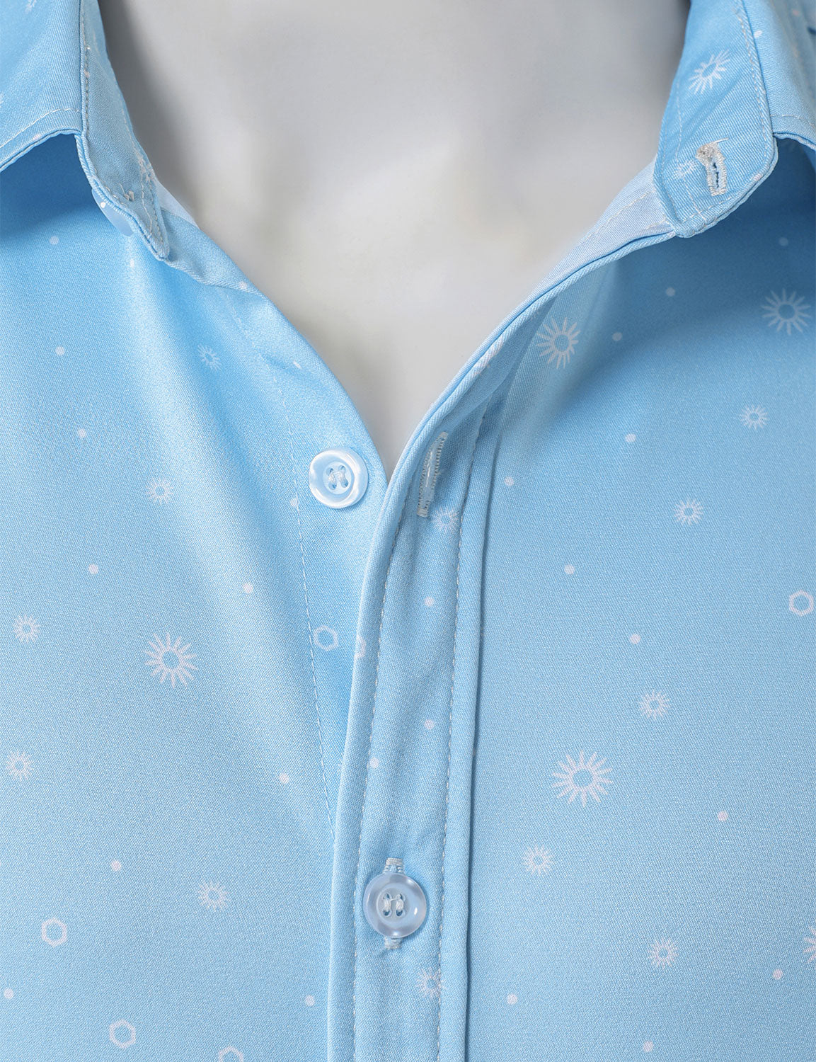 Men's Blue Cocktail Print Casual Long Sleeve Cotton Holiday Parties Shirt