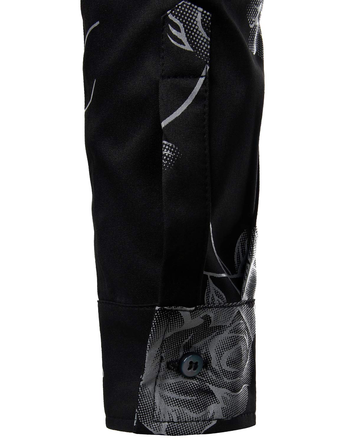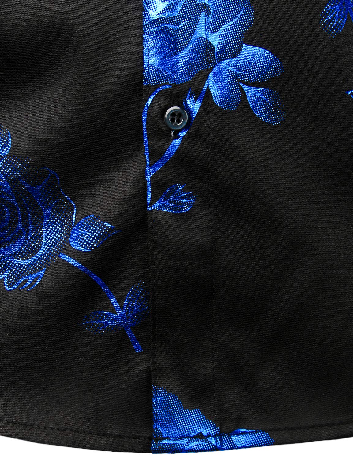 Men's Rose Floral Print Button Up Casual Long Sleeve Dress Shirt