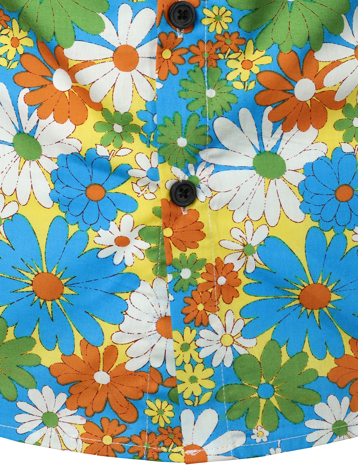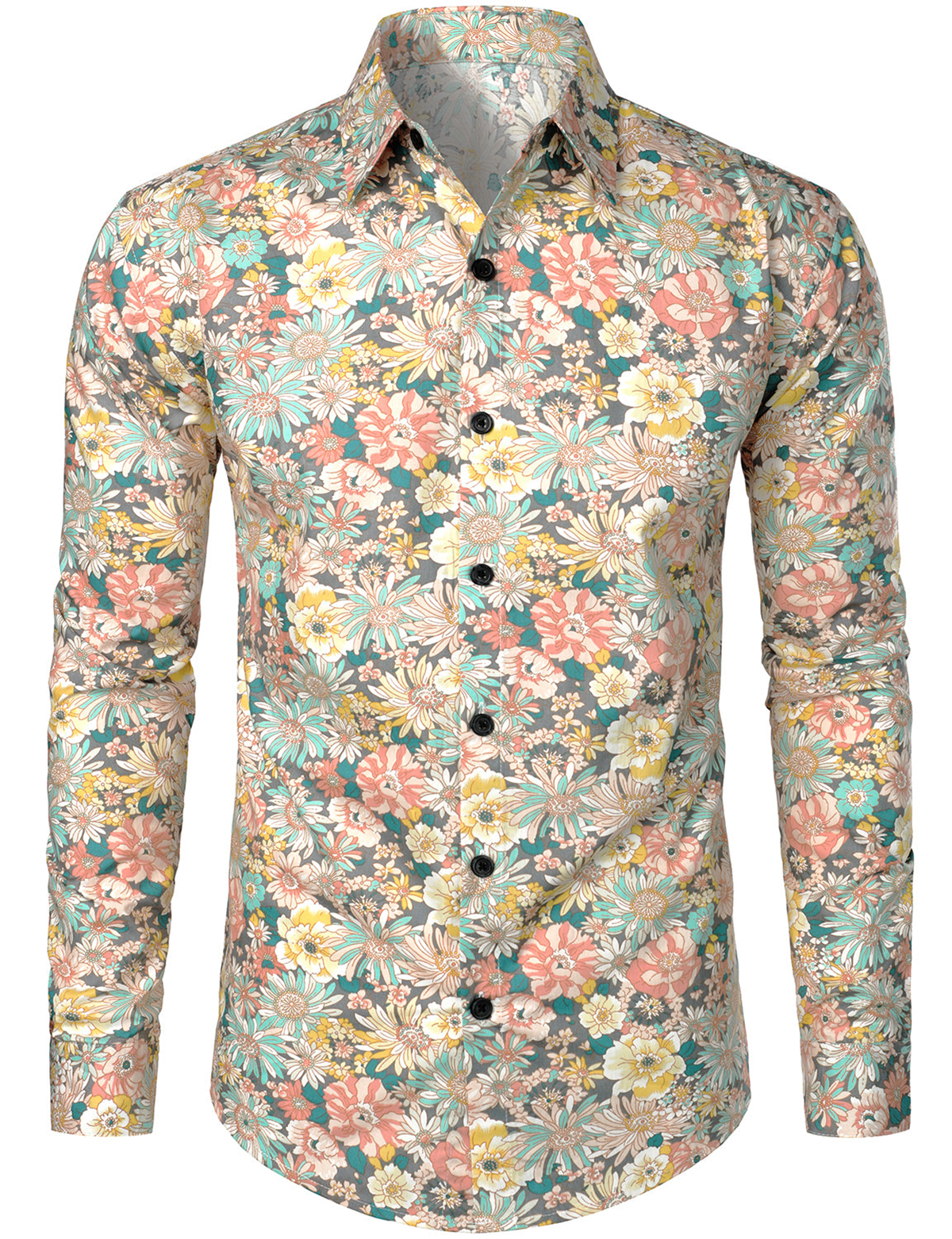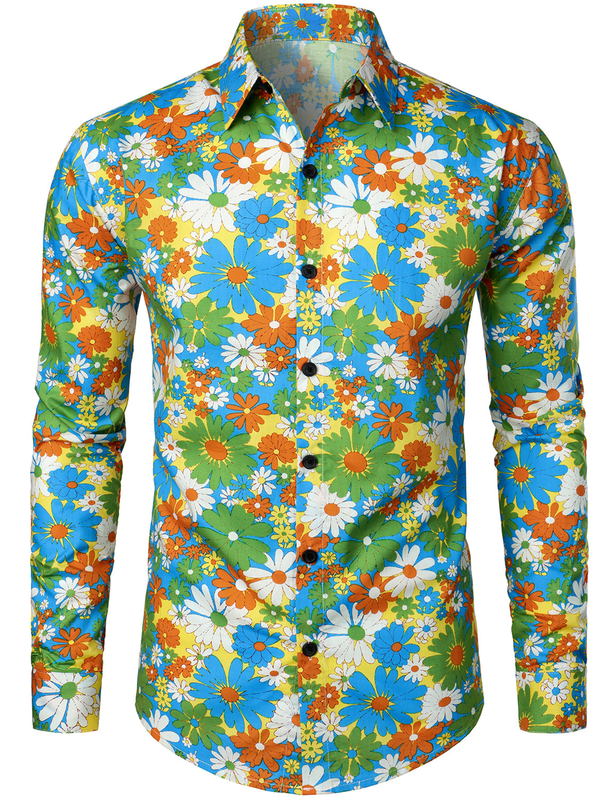 Men's 70s Floral Print Breathable Cotton Long Sleeve Shirt