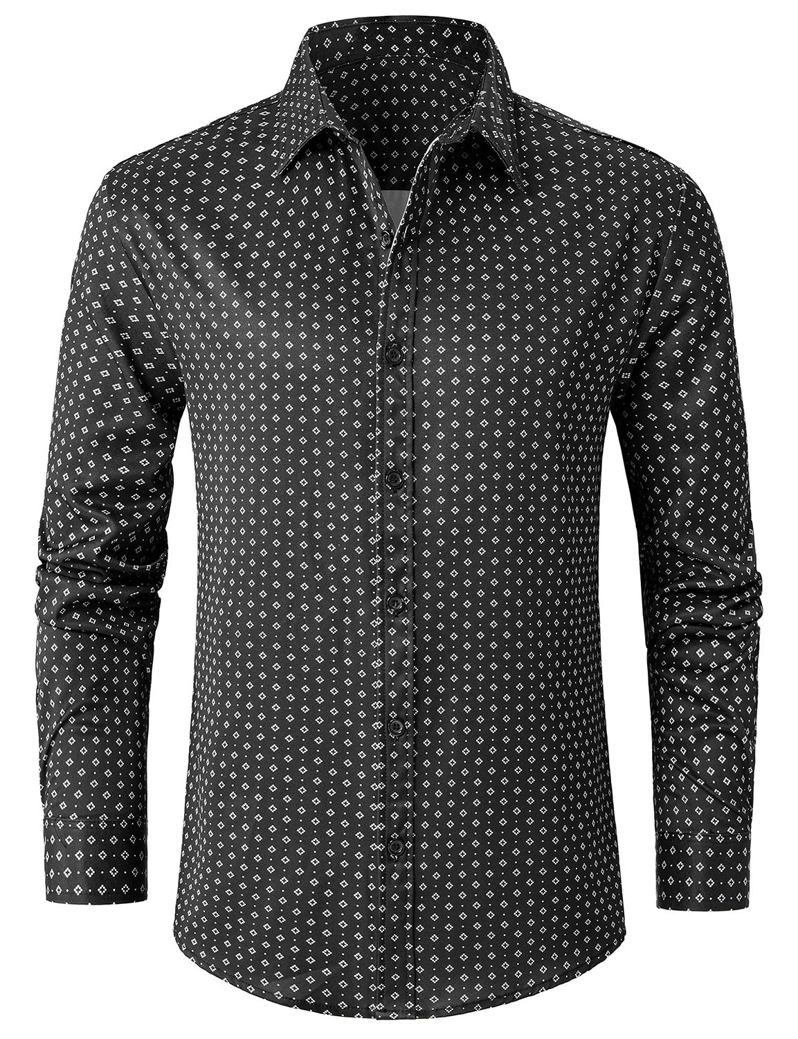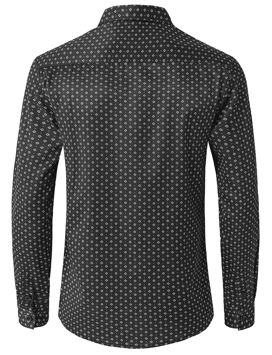 Men's Black Retro Geometric Print Long Sleeve Shirt