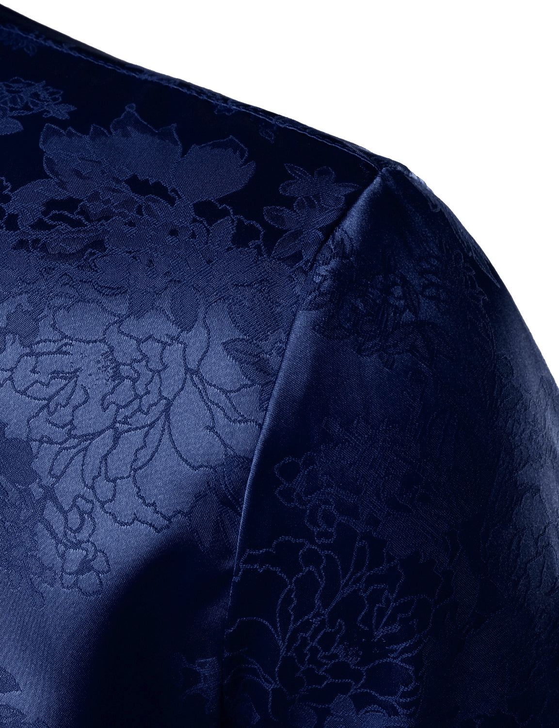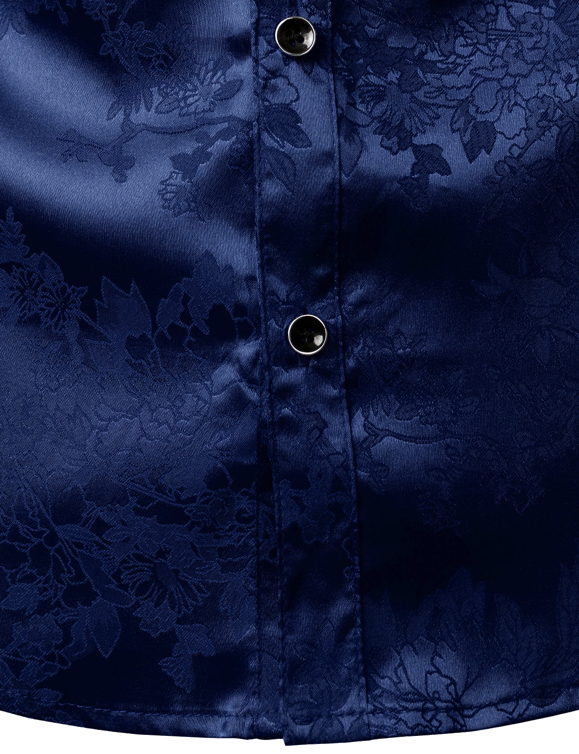Men's Casual Shiny Satin Floral Jacquard Blue Long Sleeve Button Up Dress Shirt