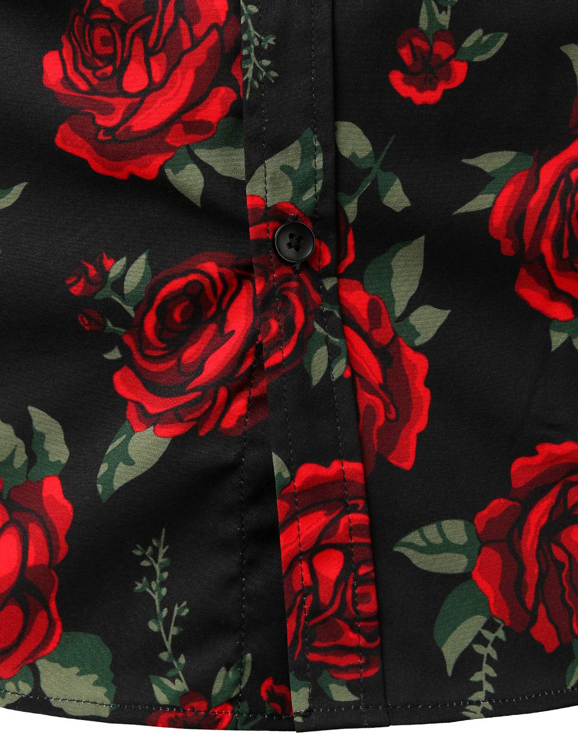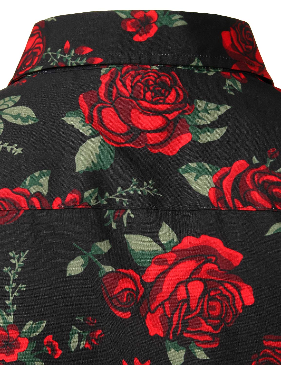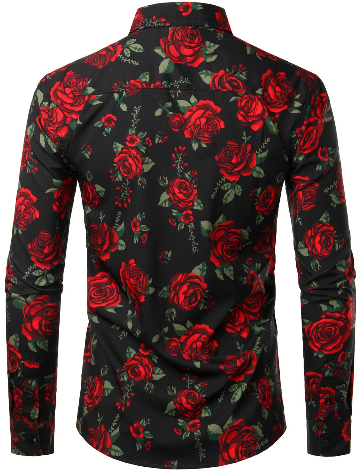 Men's Casual Rose Black Long Sleeve Button Up Shirt