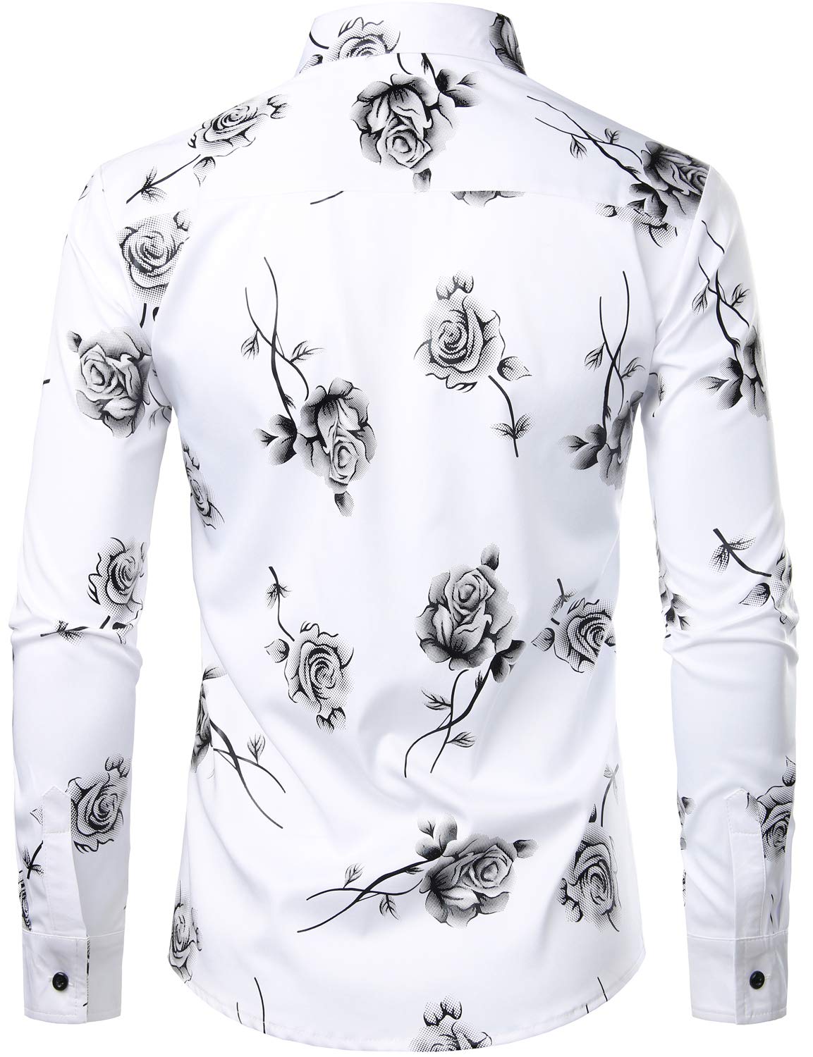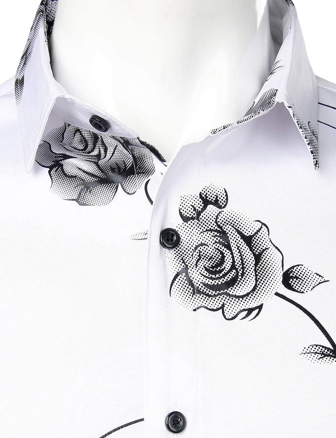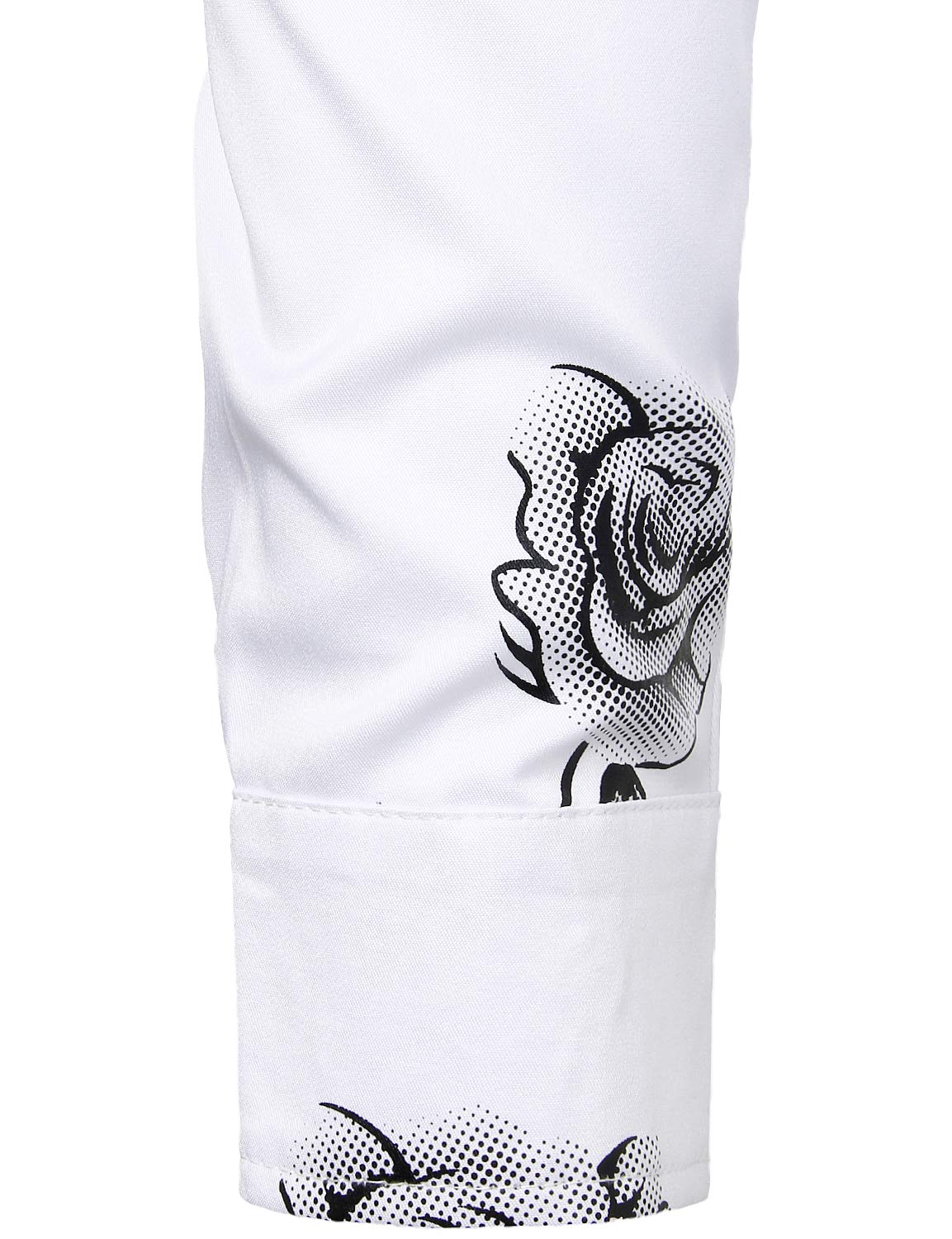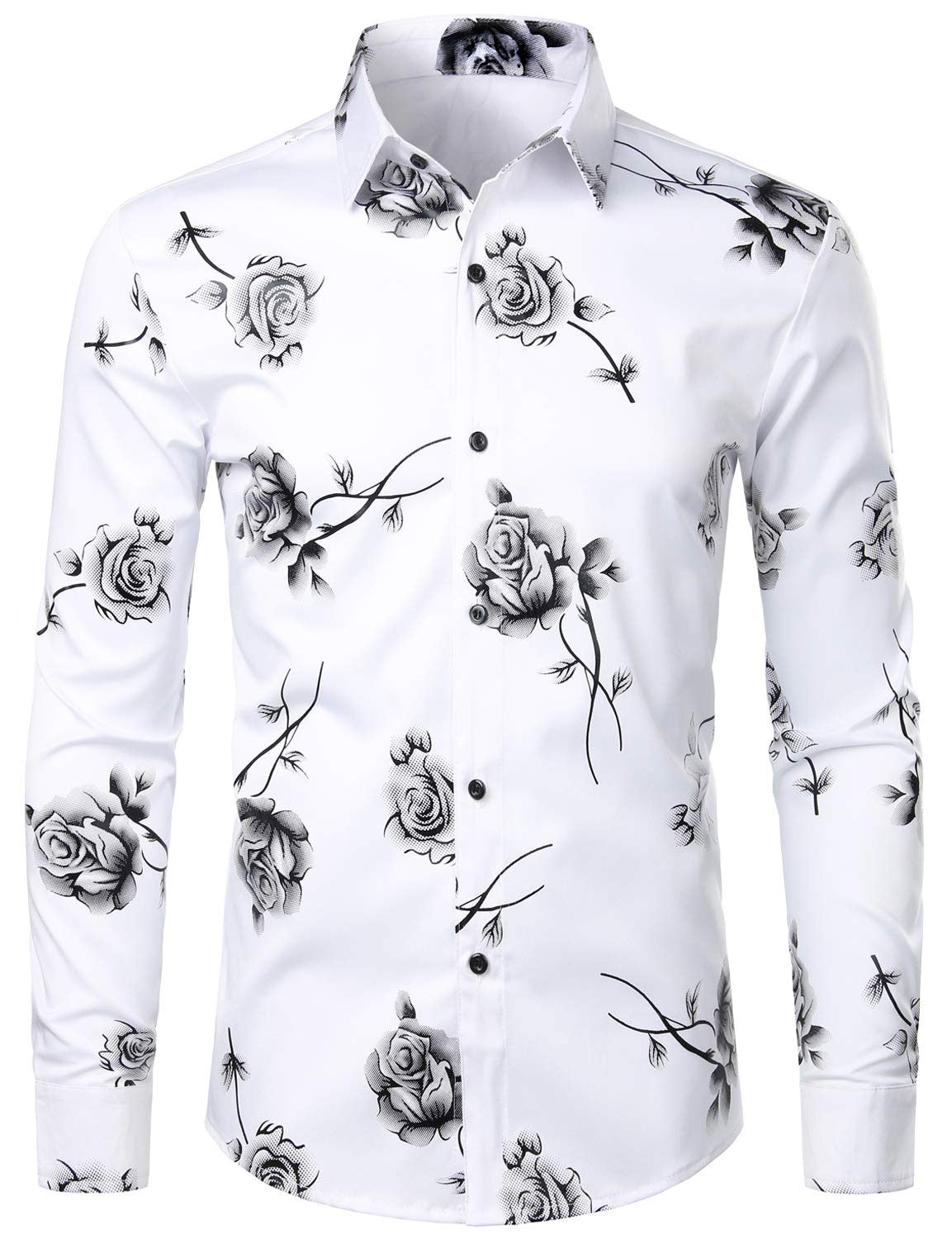Men's Casual Rose Floral Print Button Up Long Sleeve Shirt