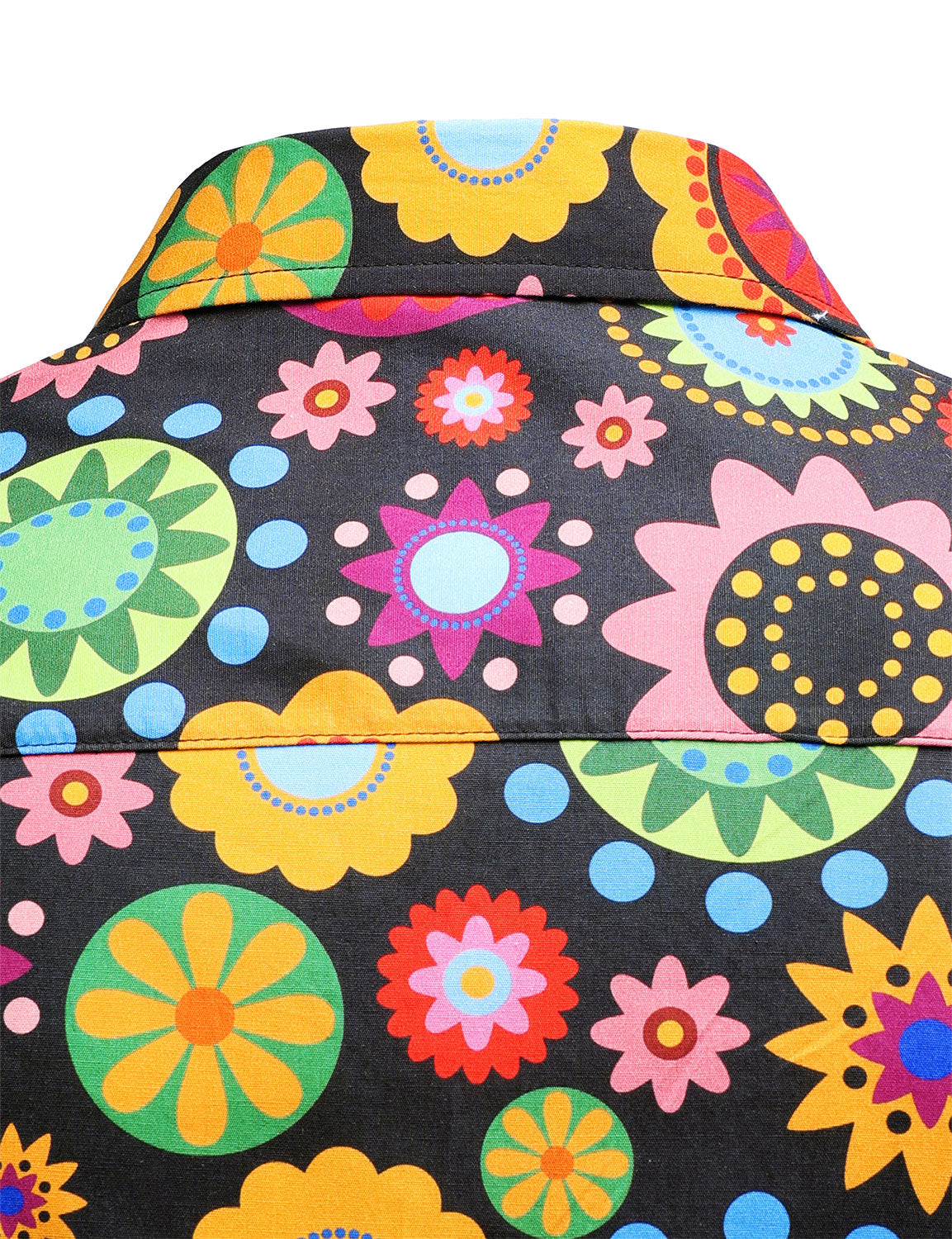 Men's Colorful Floral Cotton Party Disco Button Up Long Sleeve Shirt