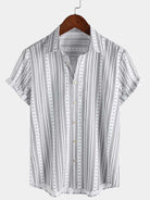 Men's Casual Striped Short Sleeve Summer Button Up Shirt