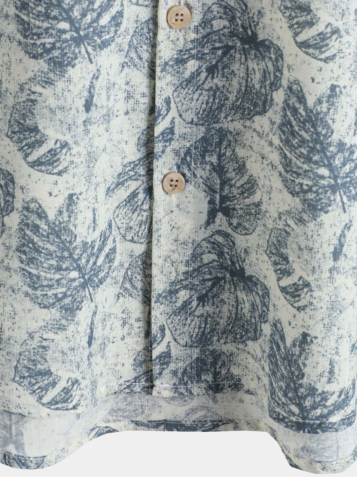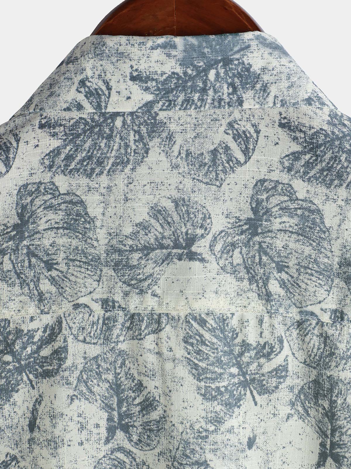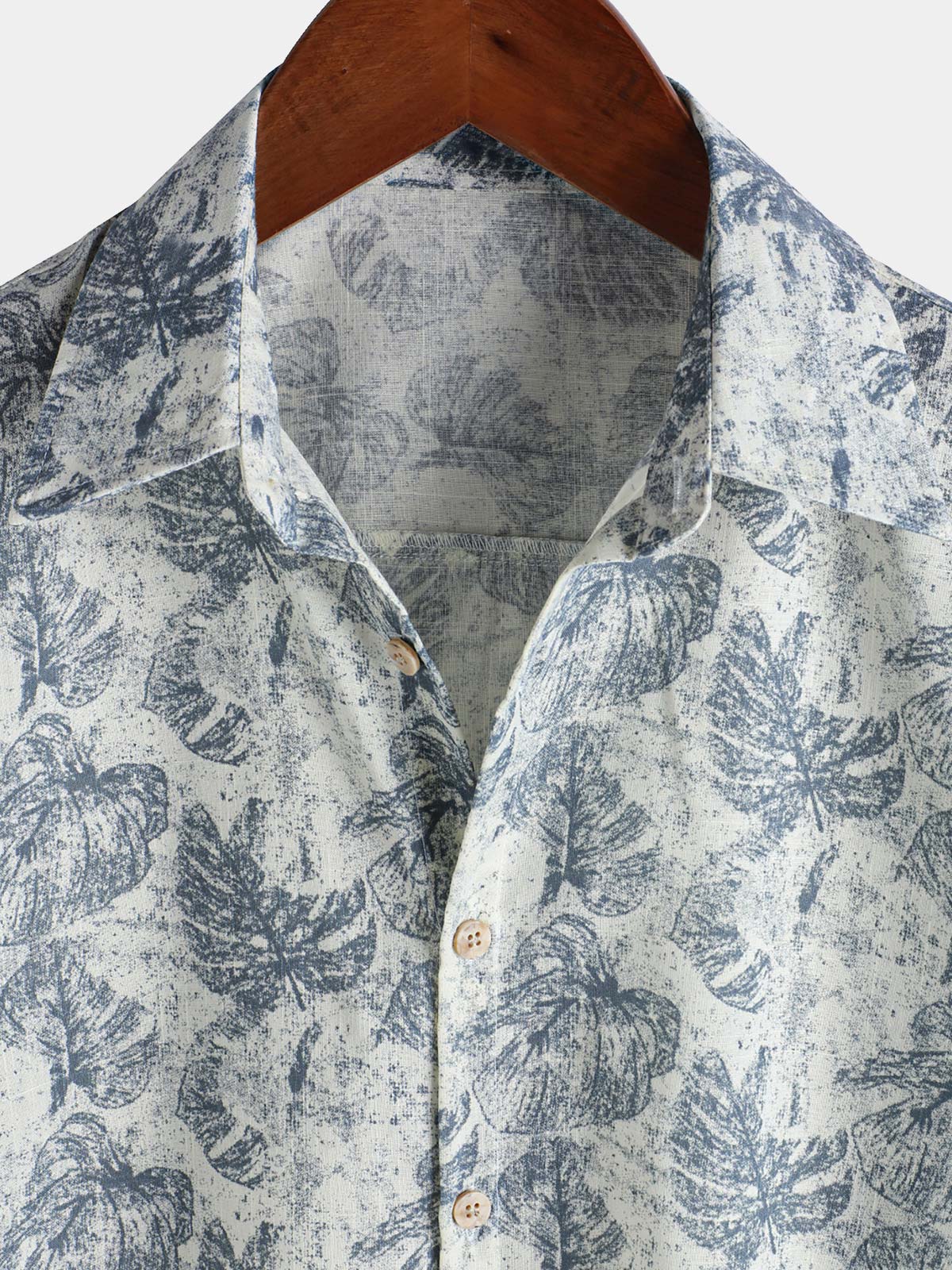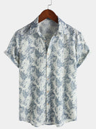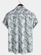 Men's Retro Blue Short Sleeve Summer Button Up Shirt