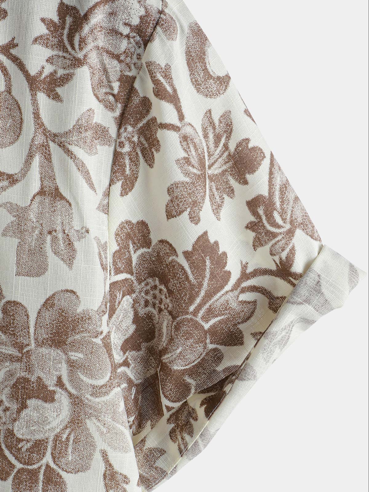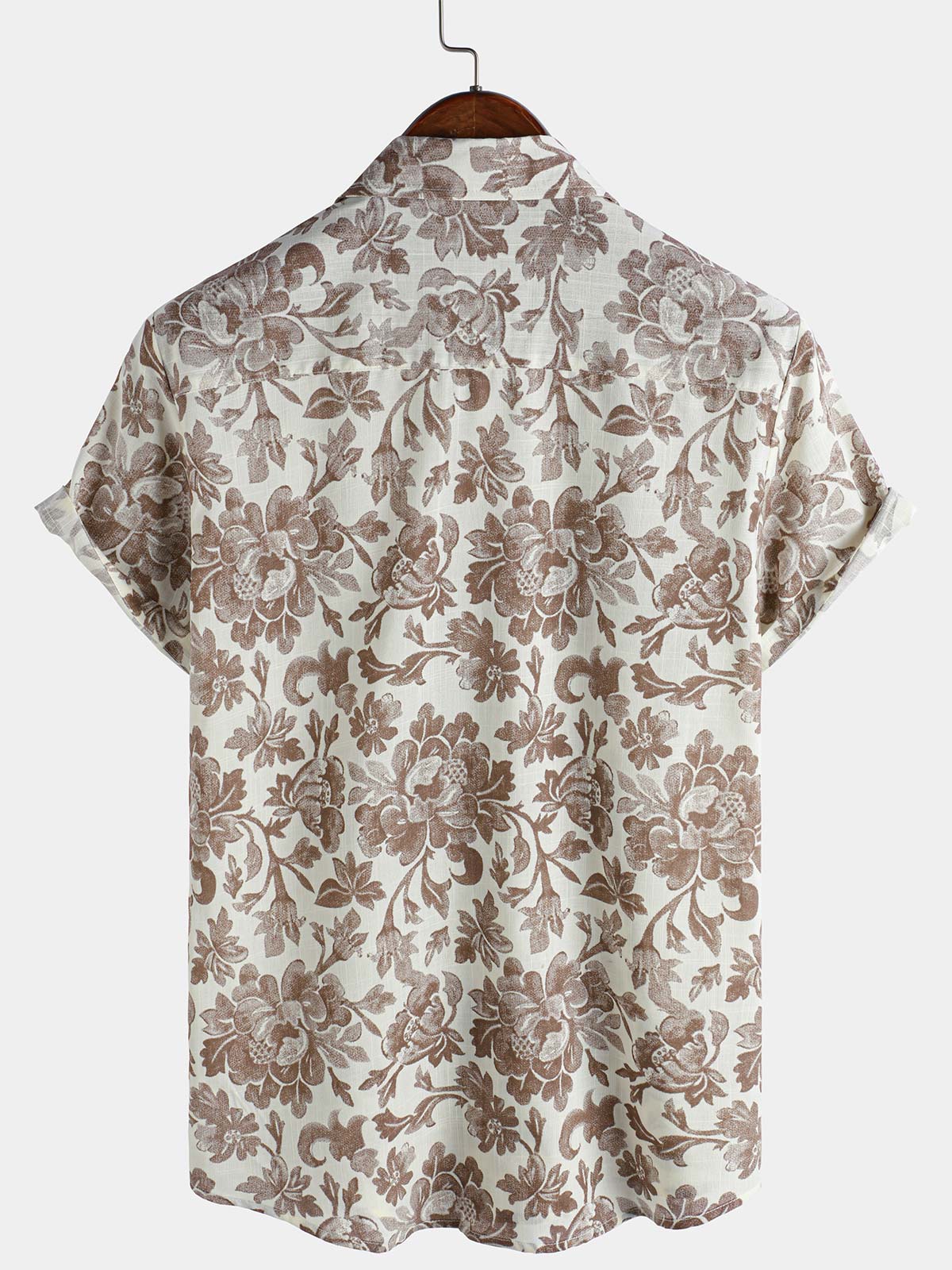 Men's Retro Floral Short Sleeve Summer Button Up Shirt