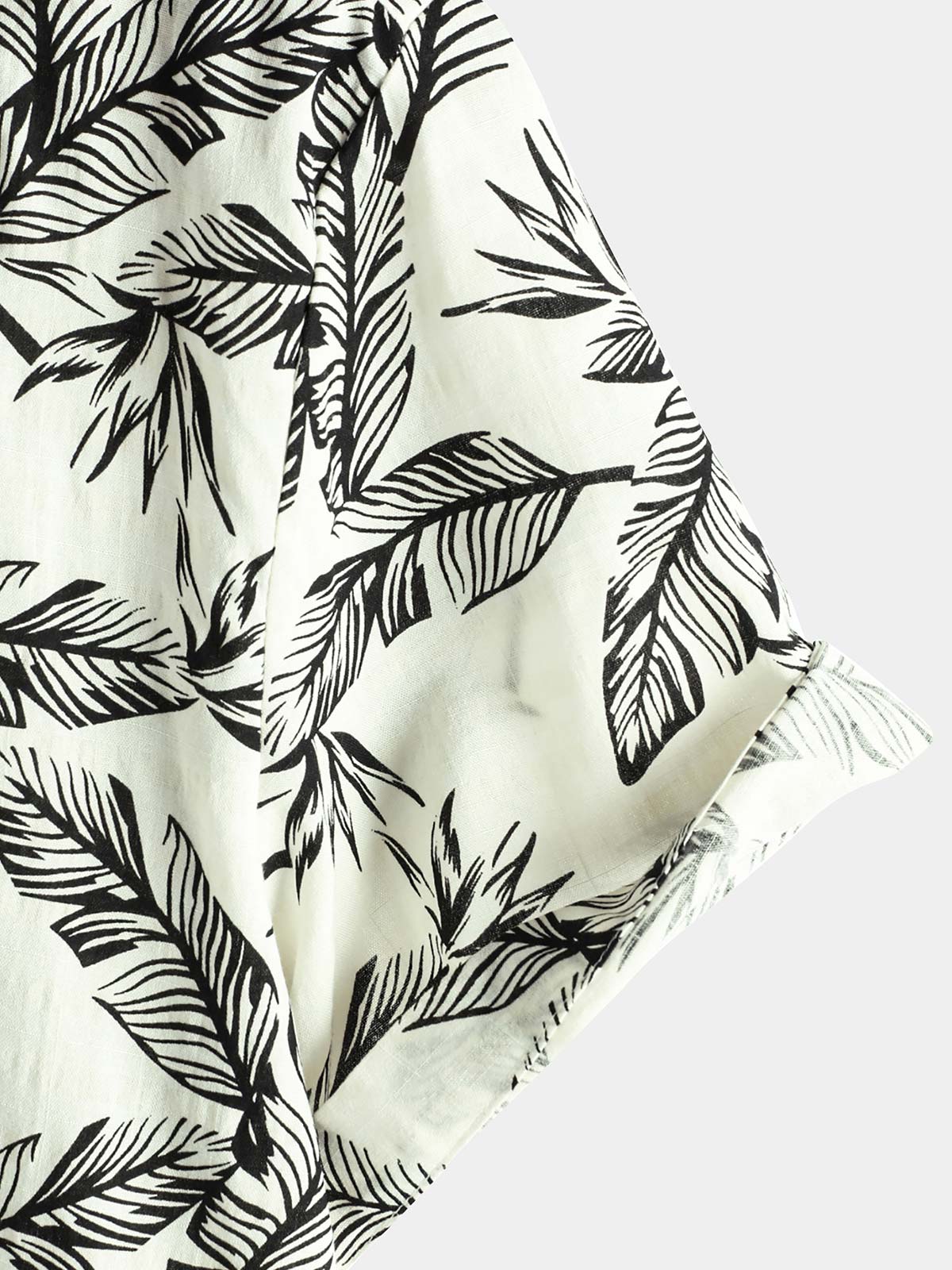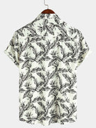 Men's Tropical Black Leaf Short Sleeve Summer Hawaiian Shirt