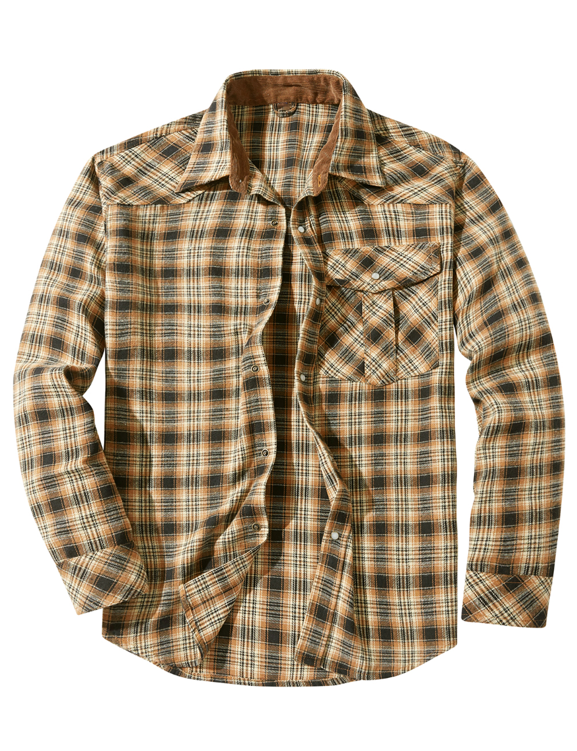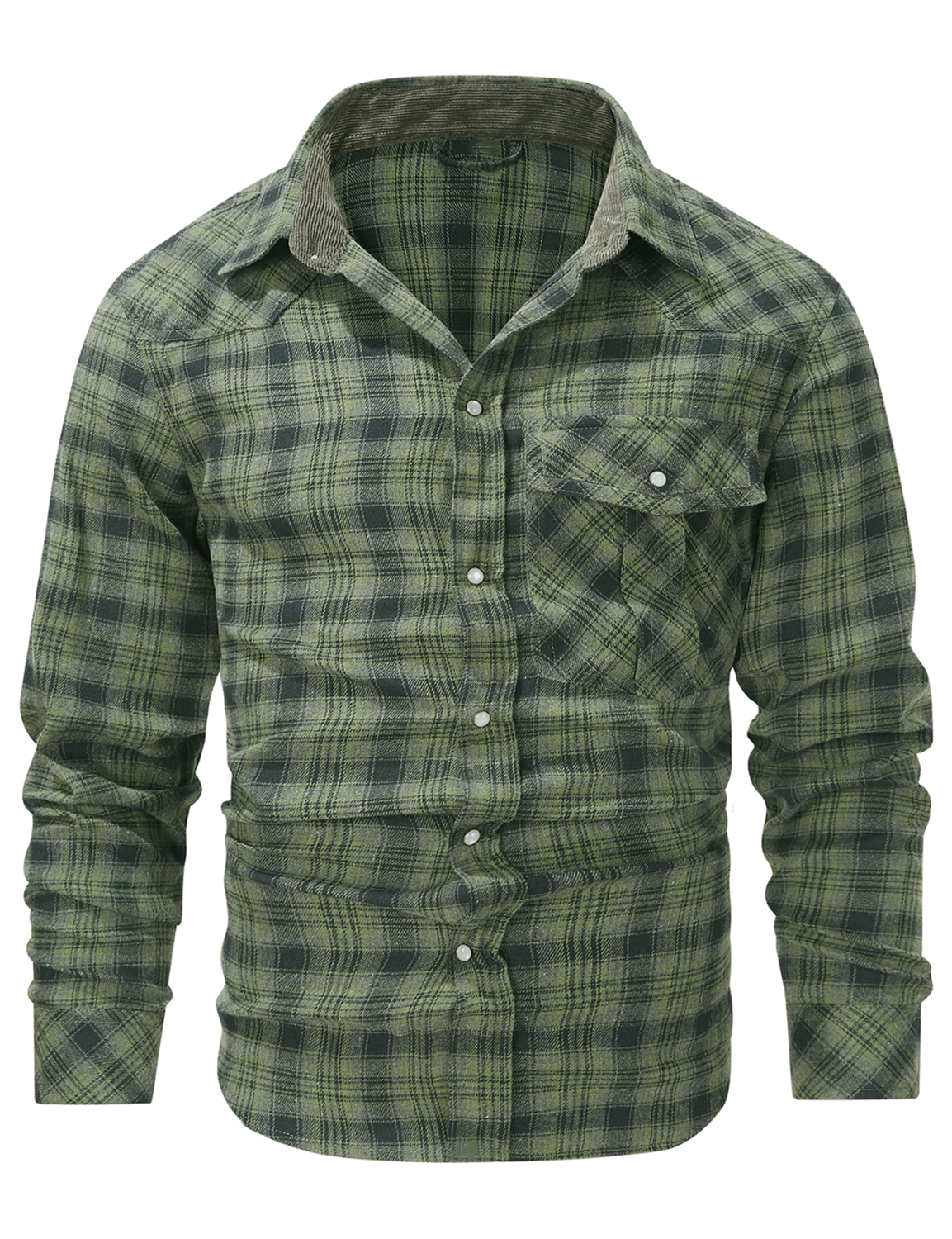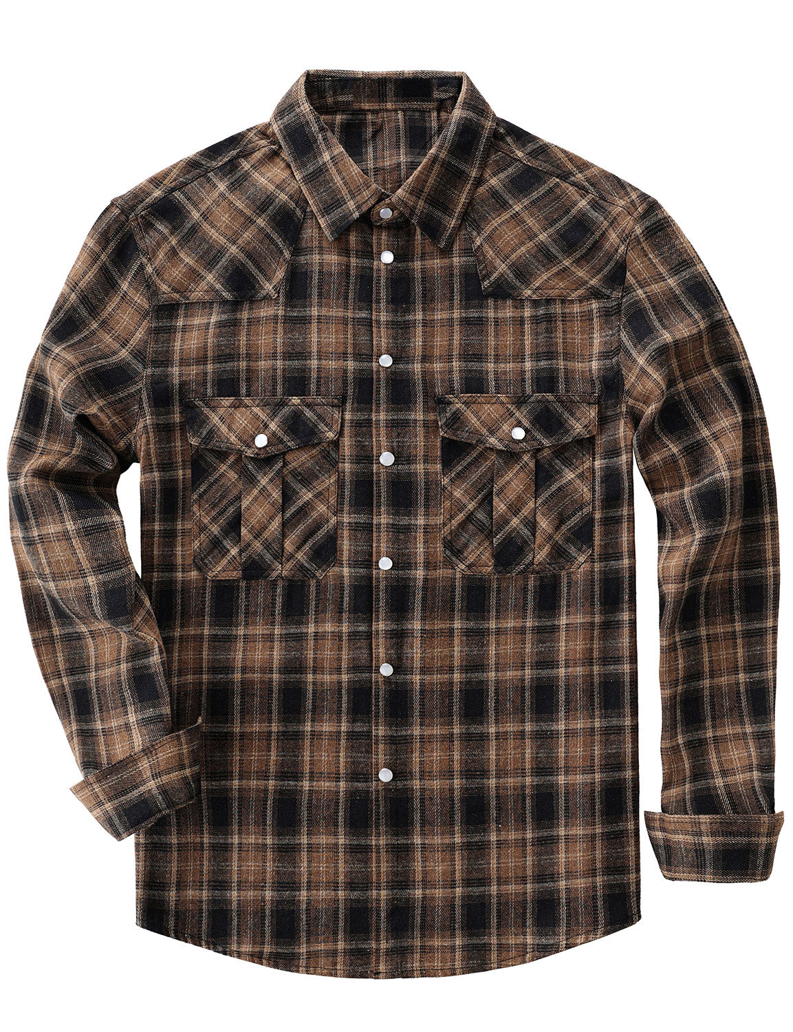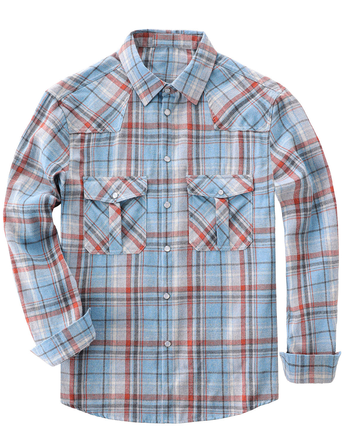 Men's Western Pearl Snap Plaid Lightweight Flannel Long Sleeve Shirt