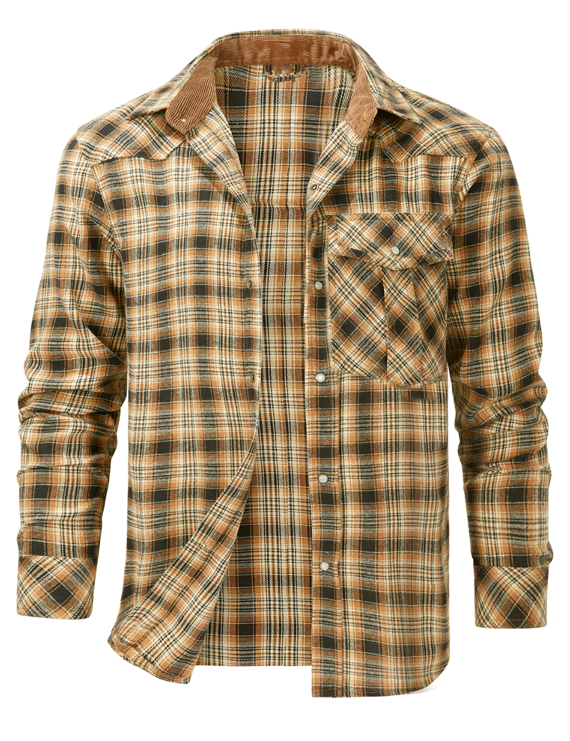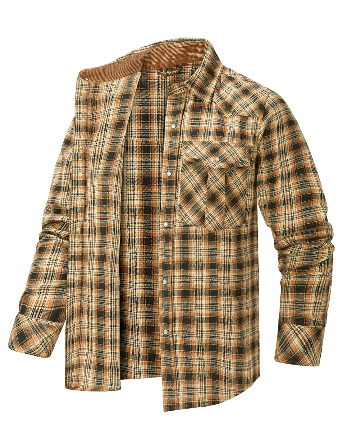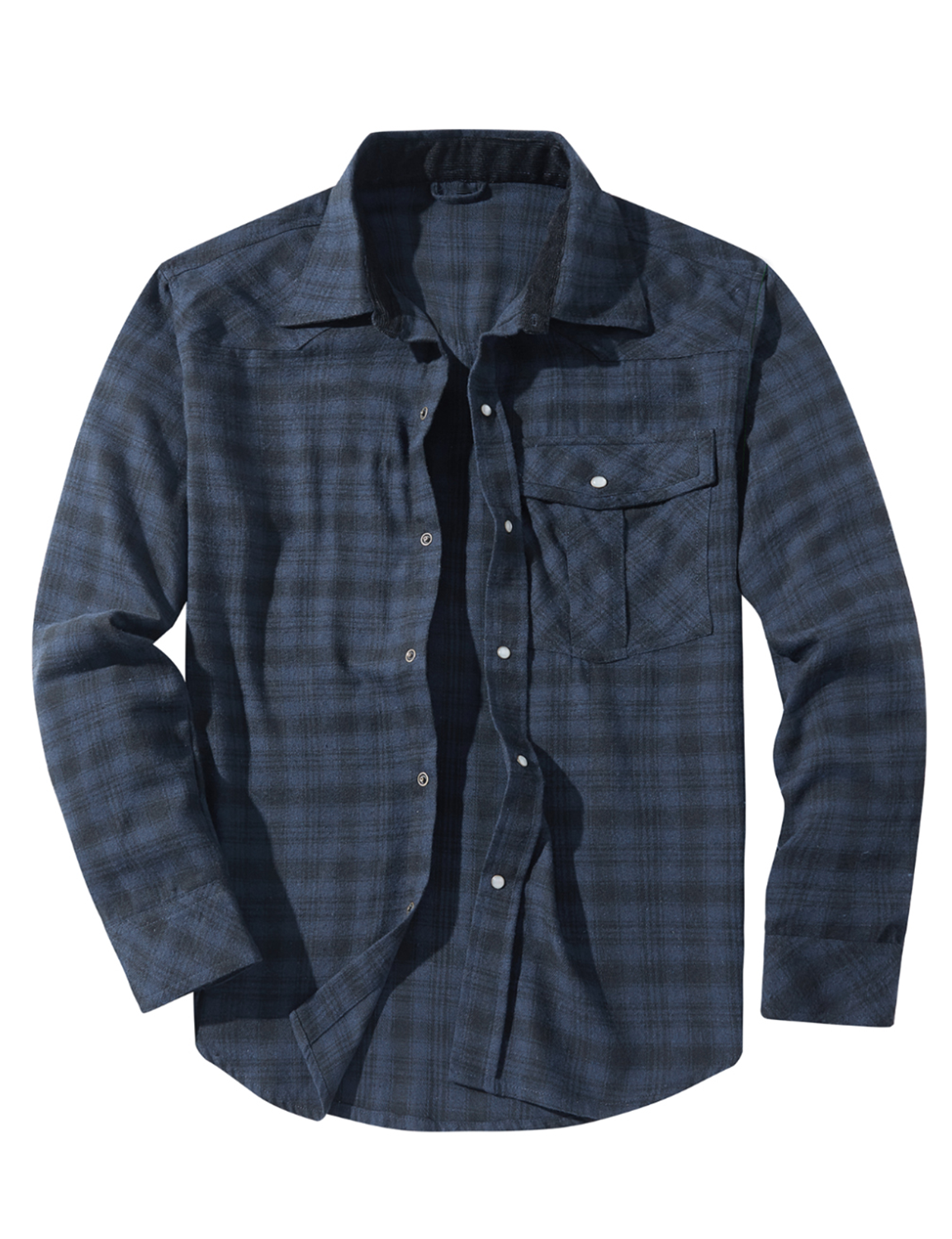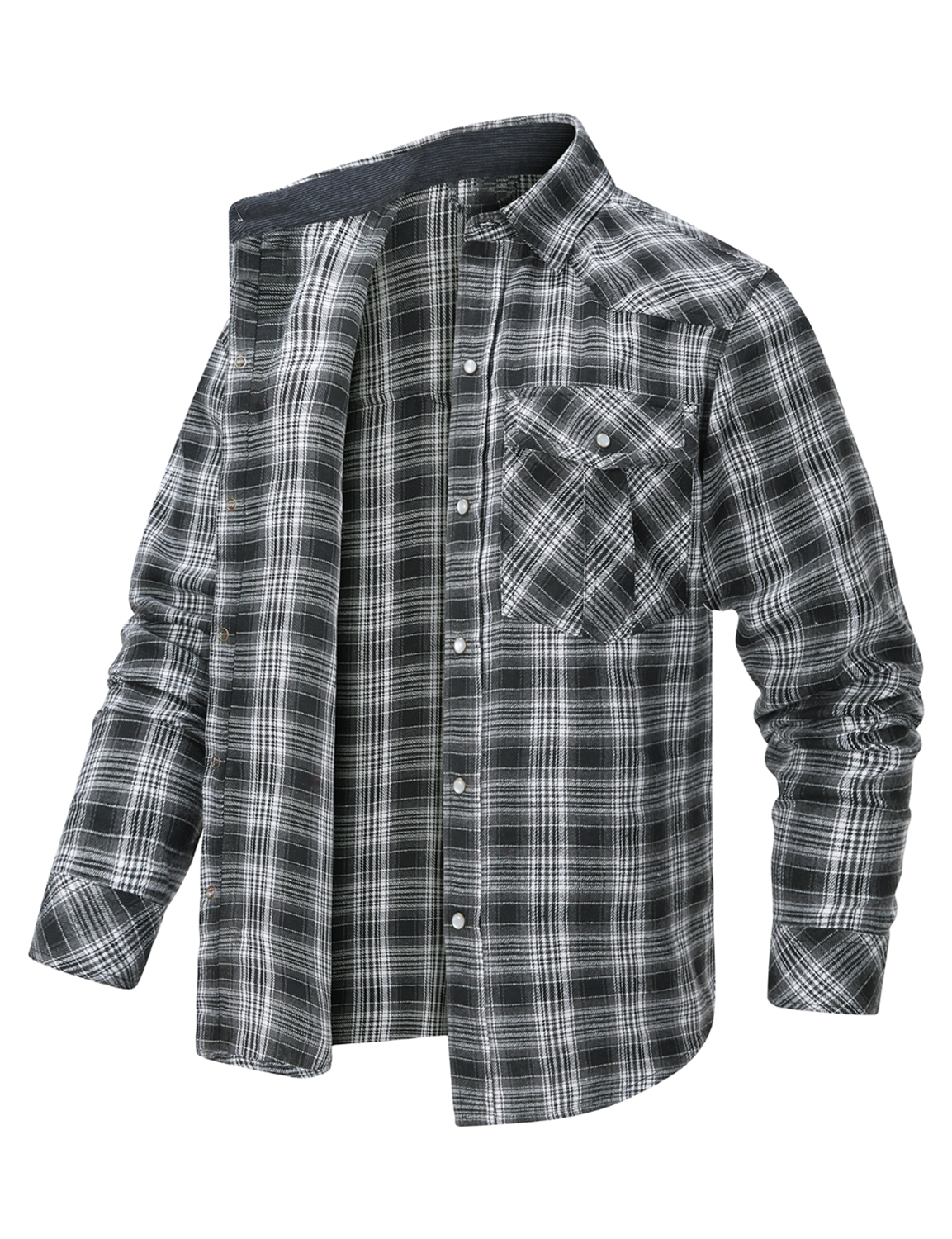 Men's Western Pearl Snap Plaid Lightweight Flannel Long Sleeve Shirt