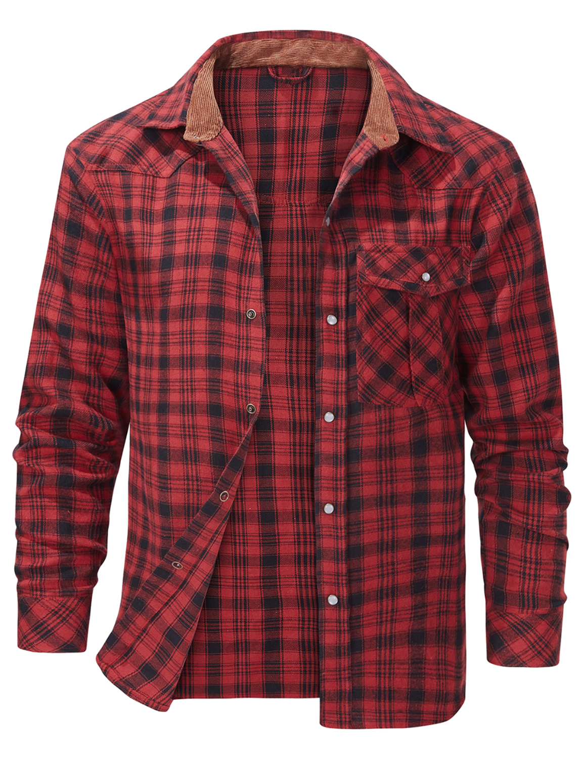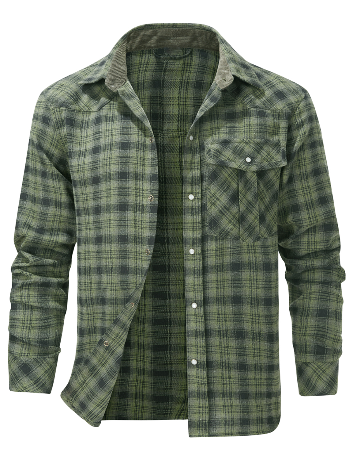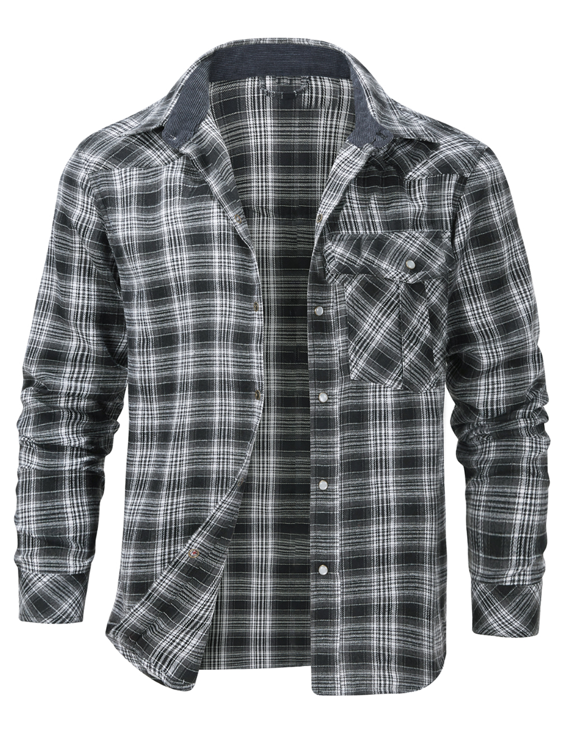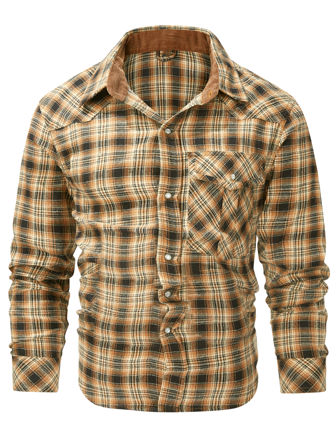 Men's Western Pearl Snap Plaid Lightweight Flannel Long Sleeve Shirt