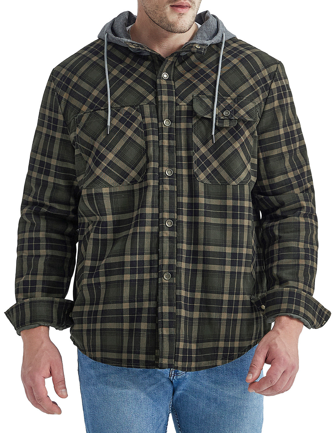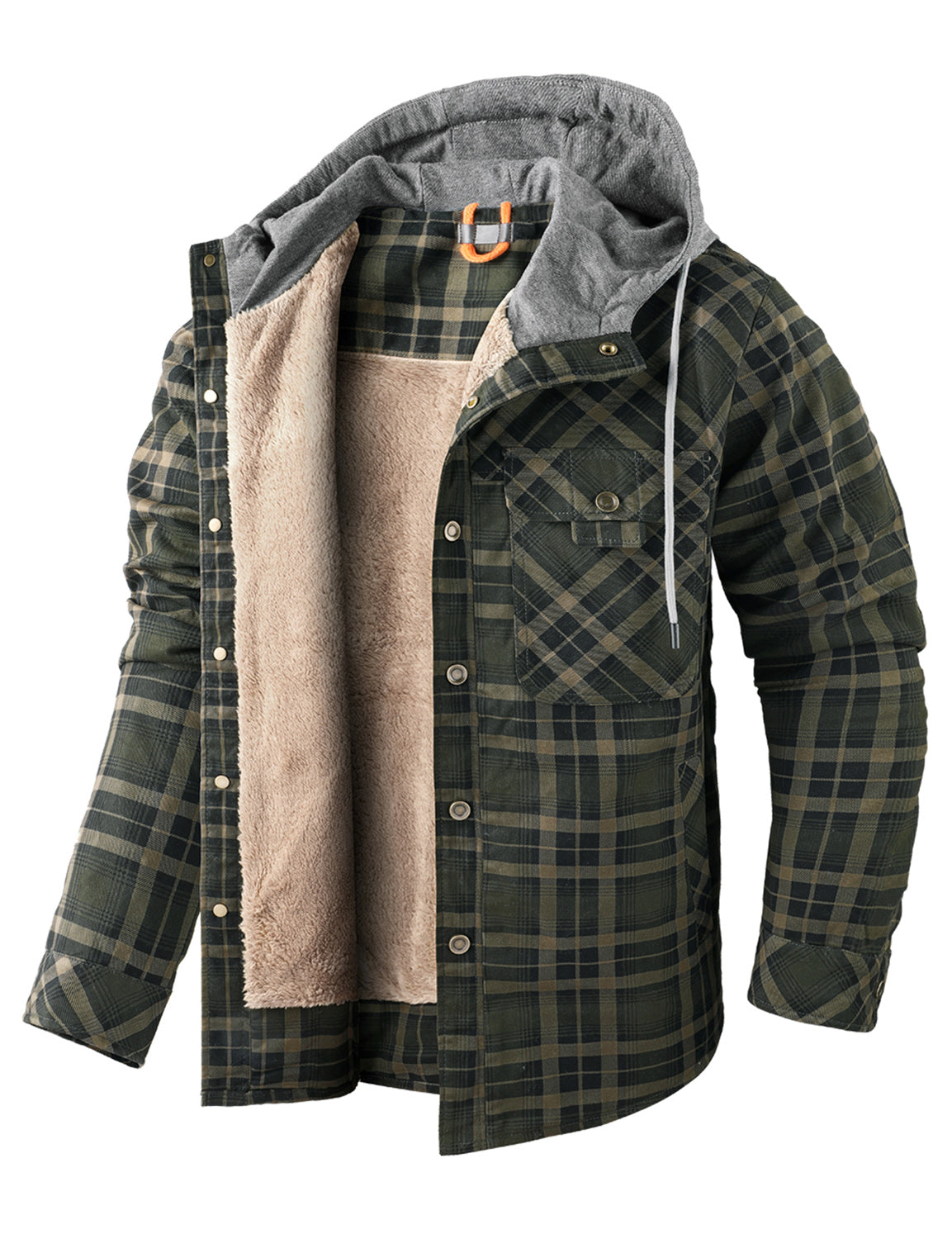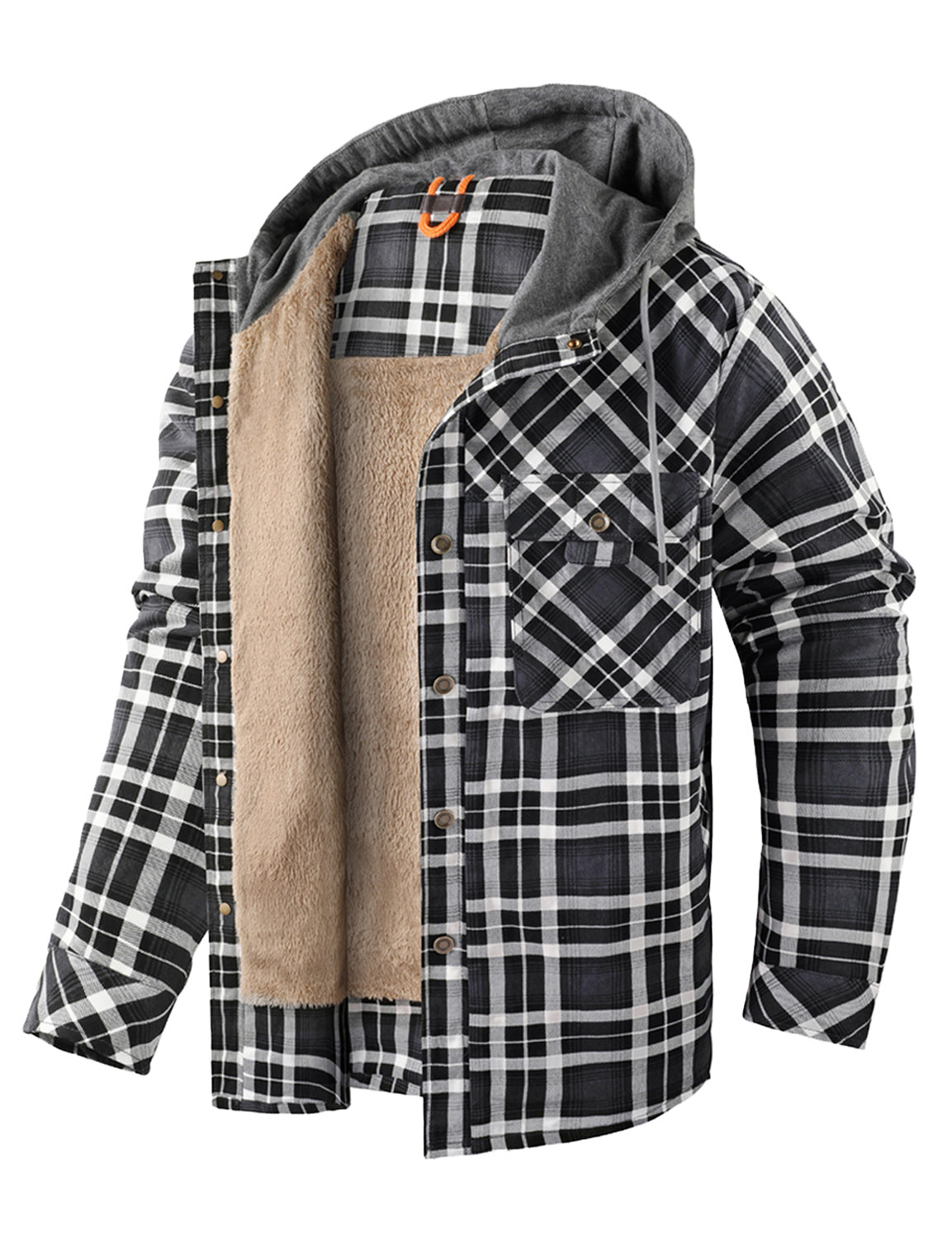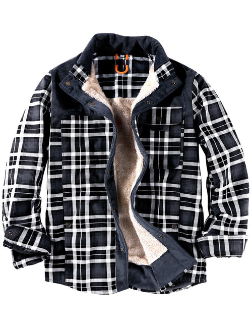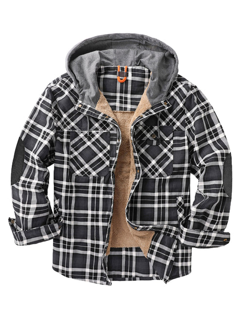 Men's Casual Flannel Lined Long Sleeve Fall Winter Warm Plaid Hooded Shirt Jacket