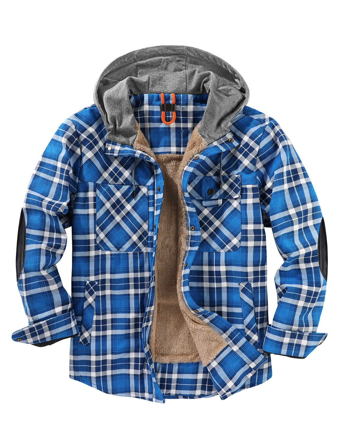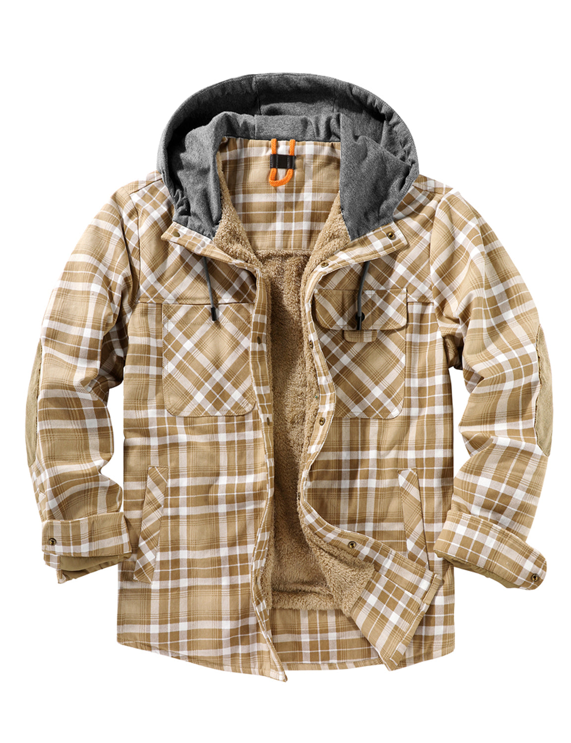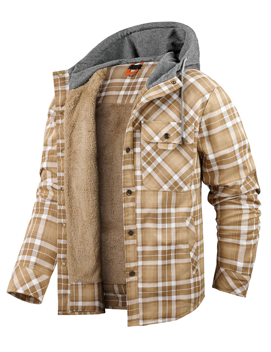Men's Casual Flannel Lined Long Sleeve Fall Winter Warm Plaid Hooded Shirt Jacket