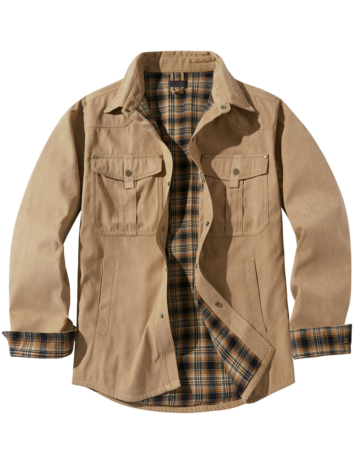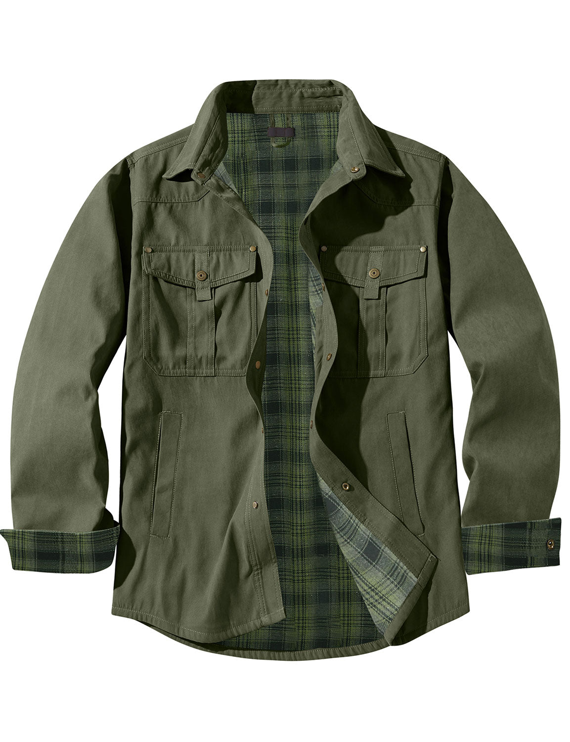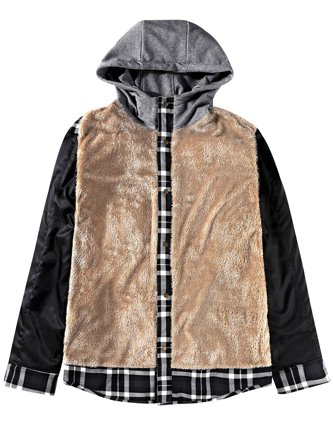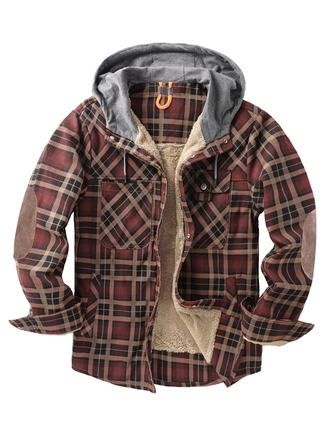 Men's Casual Flannel Lined Long Sleeve Fall Winter Warm Plaid Hooded Shirt Jacket