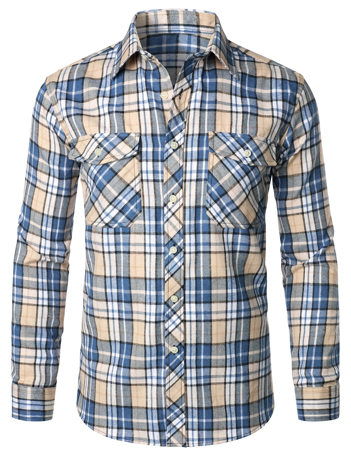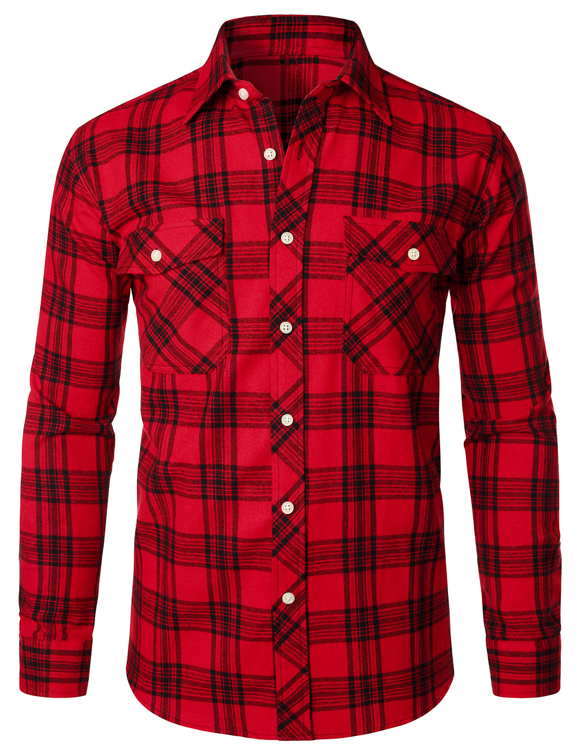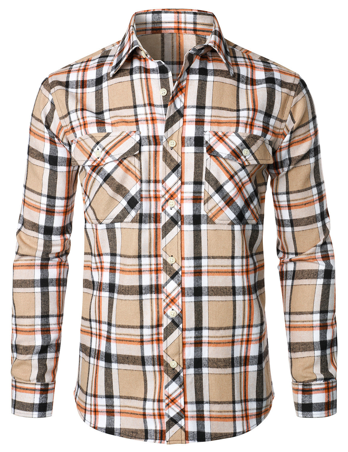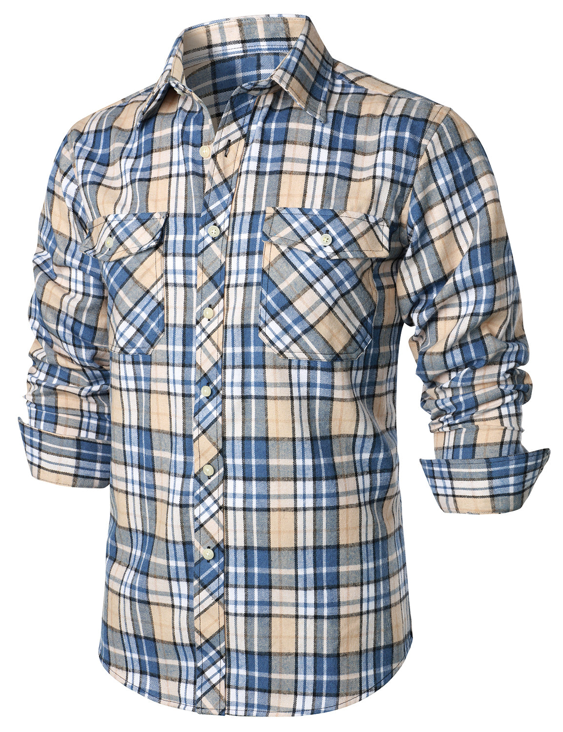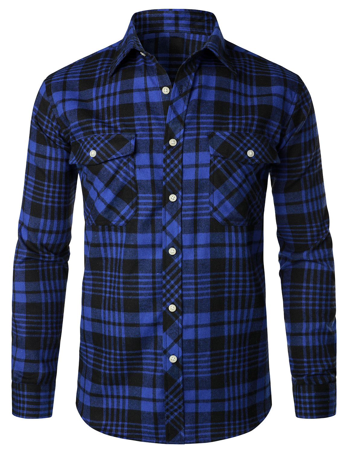 Men's Casual Plaid Double Pocket Flannel Checkered Button Up Long Sleeve Shirt