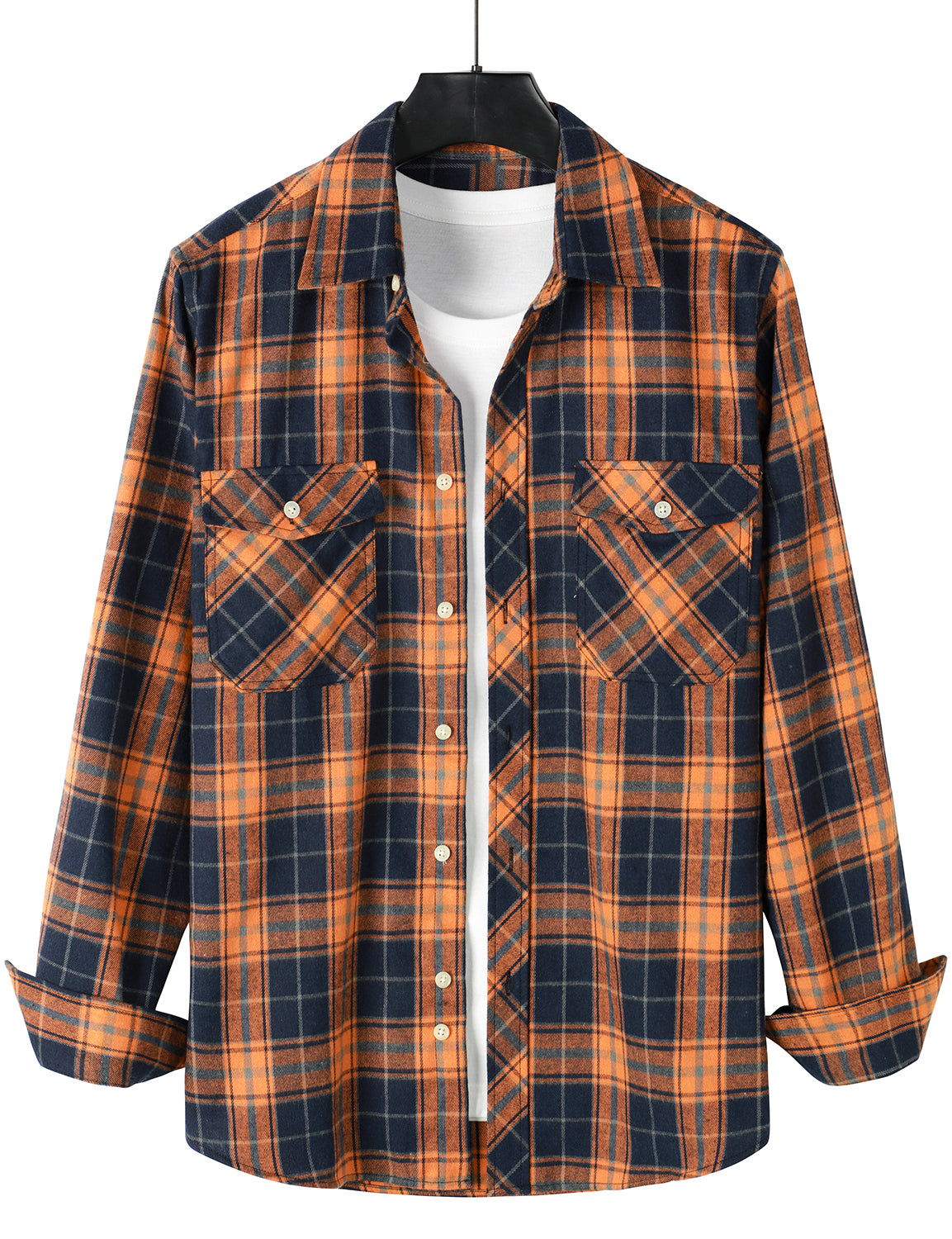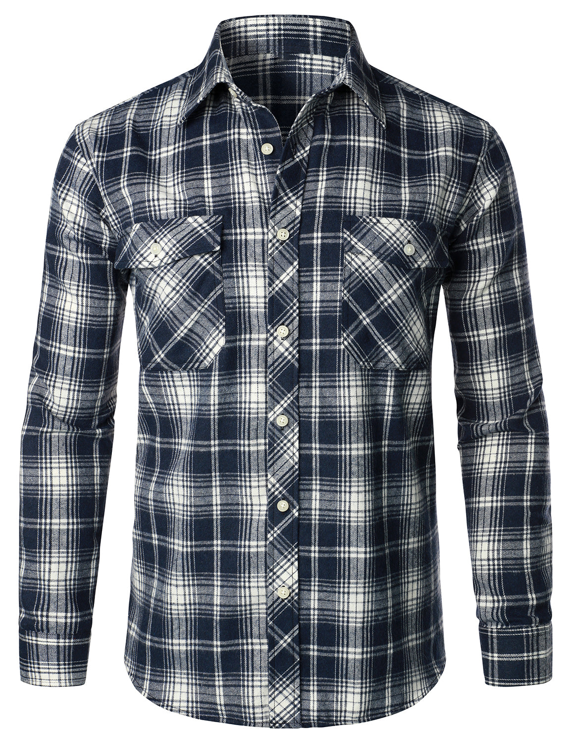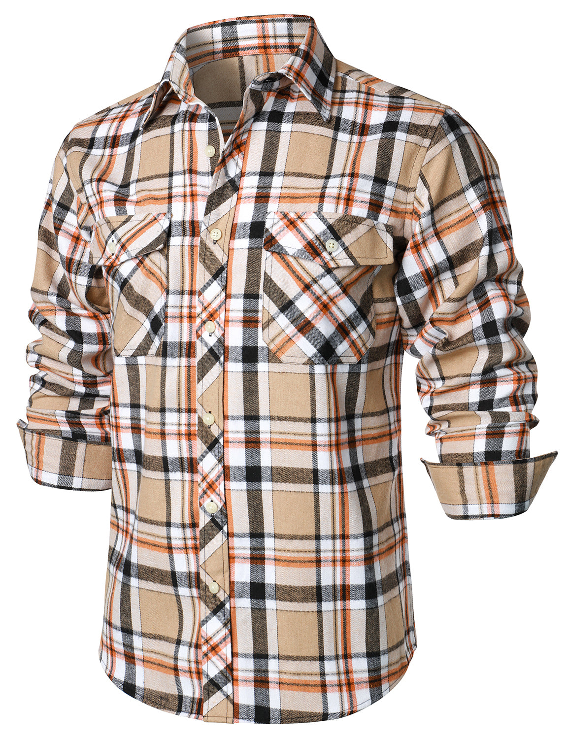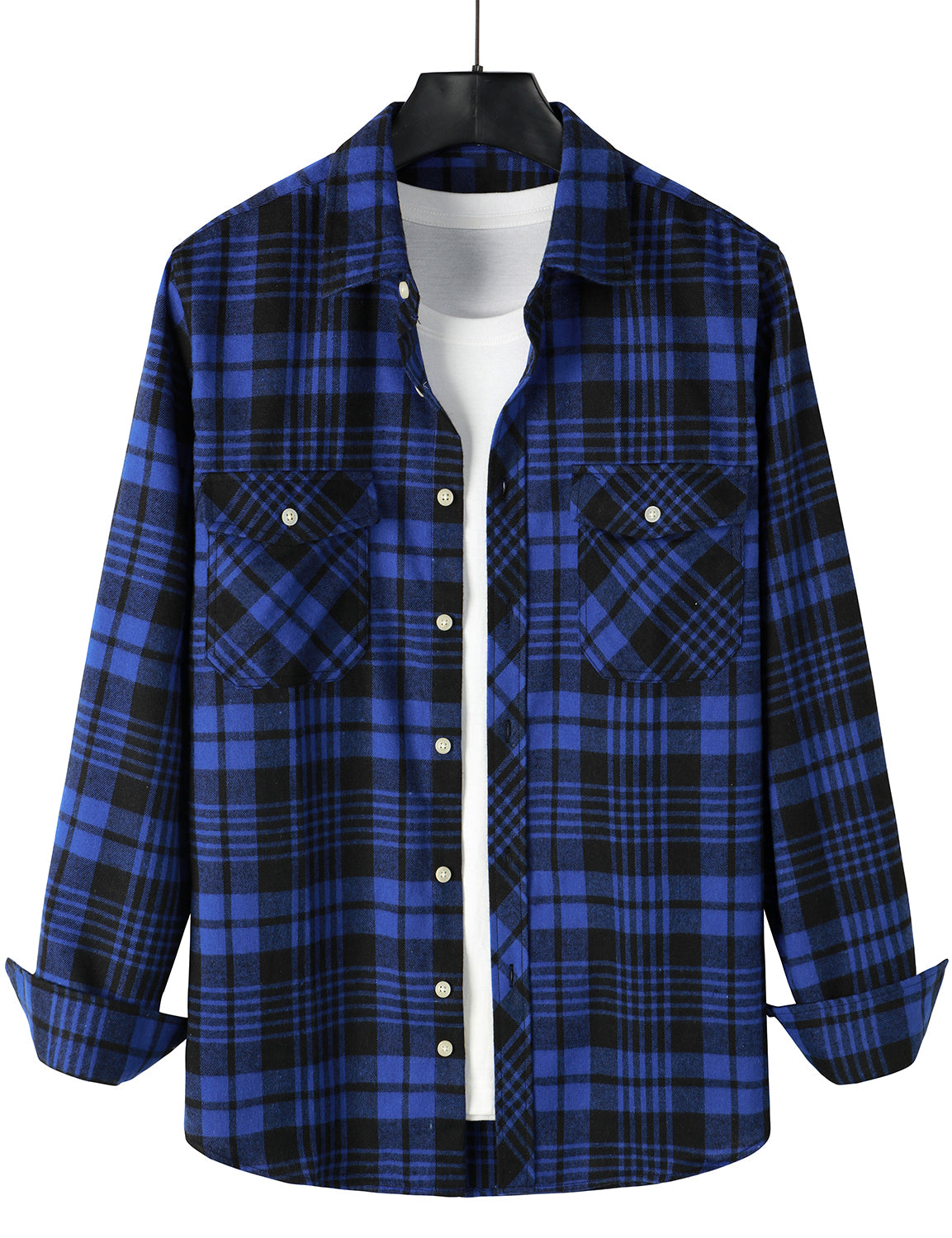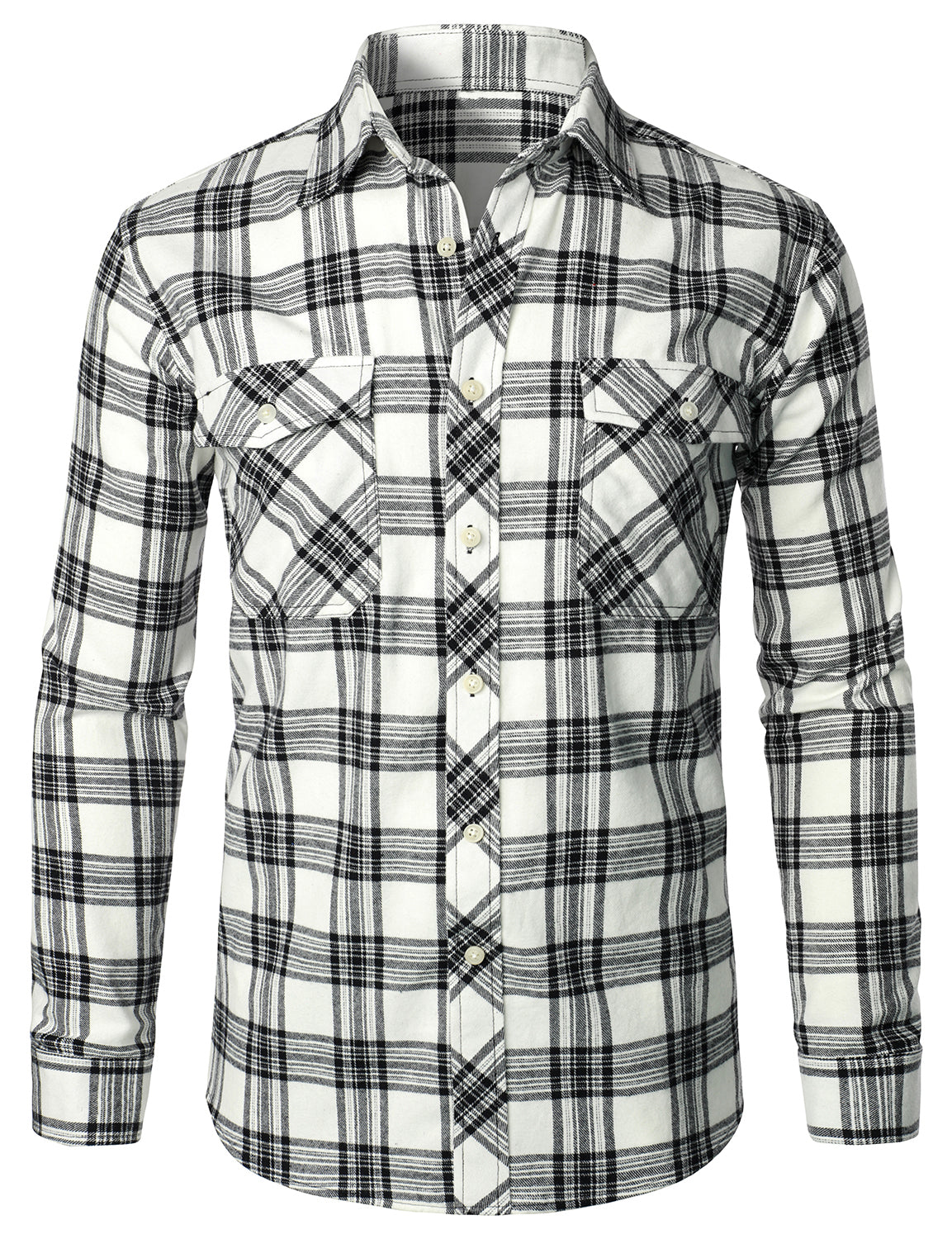 Men's Casual Plaid Double Pocket Flannel Checkered Button Up Long Sleeve Shirt