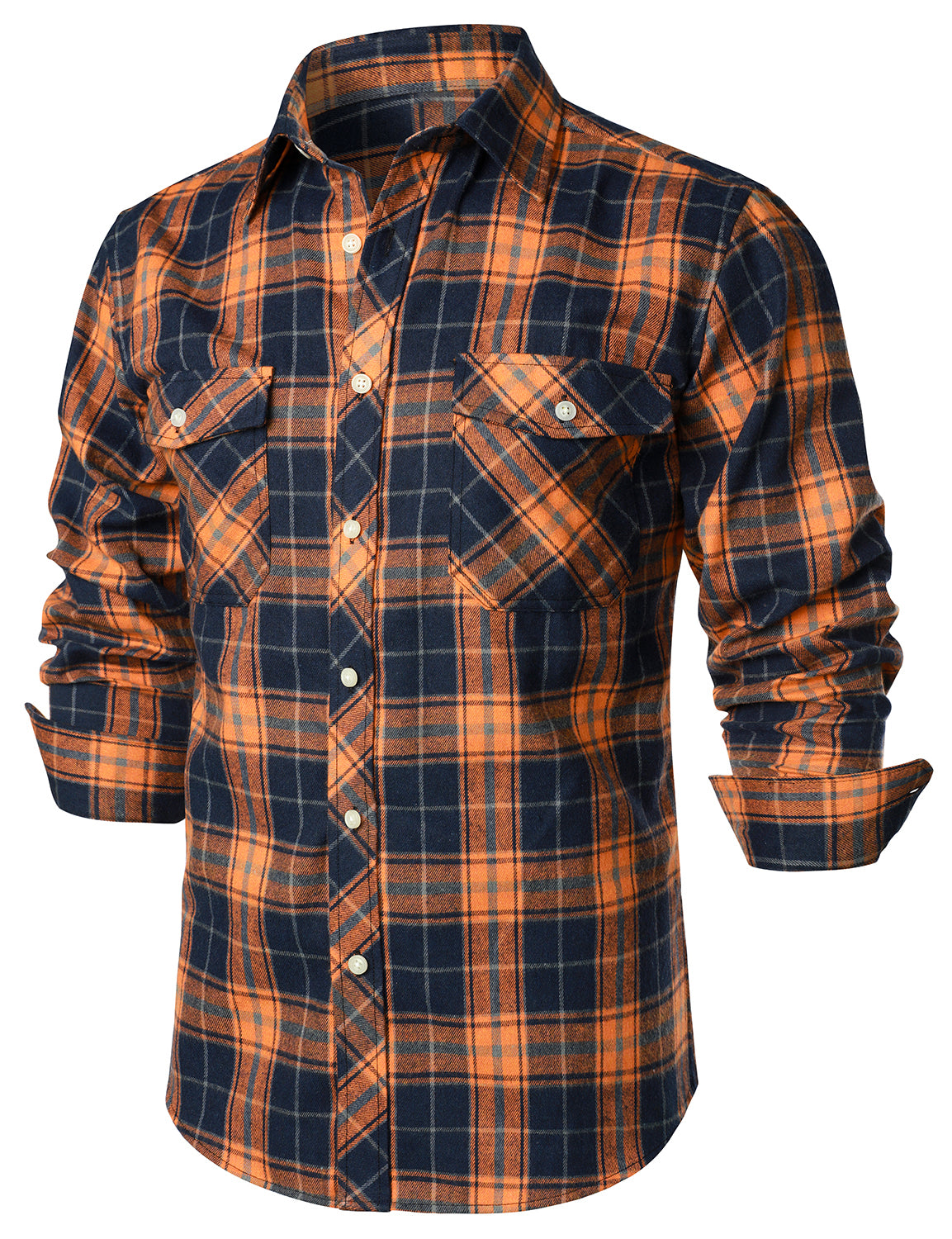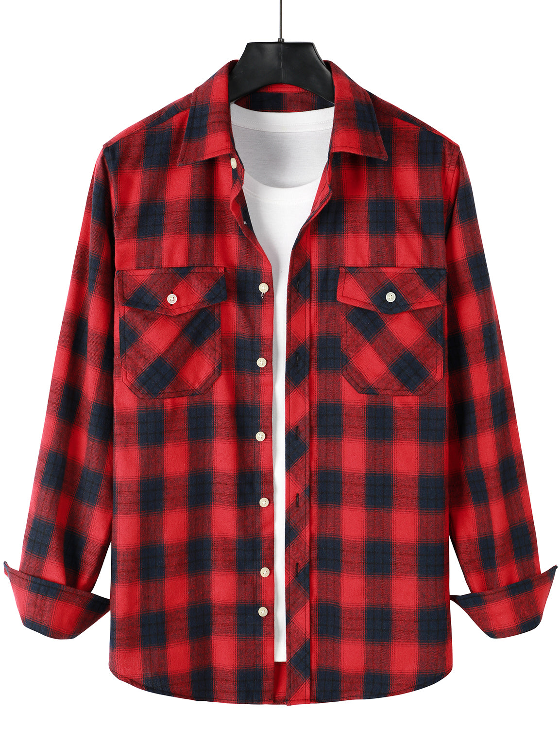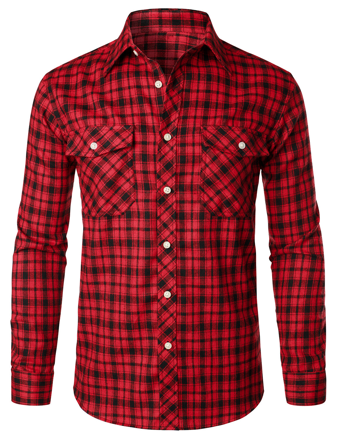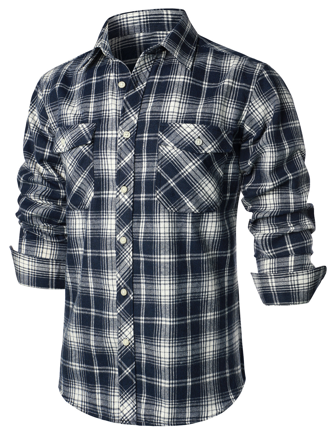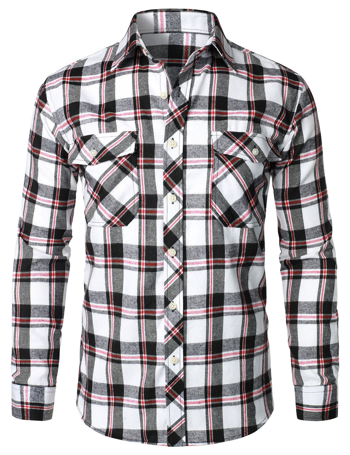 Men's Casual Plaid Double Pocket Flannel Checkered Button Up Long Sleeve Shirt