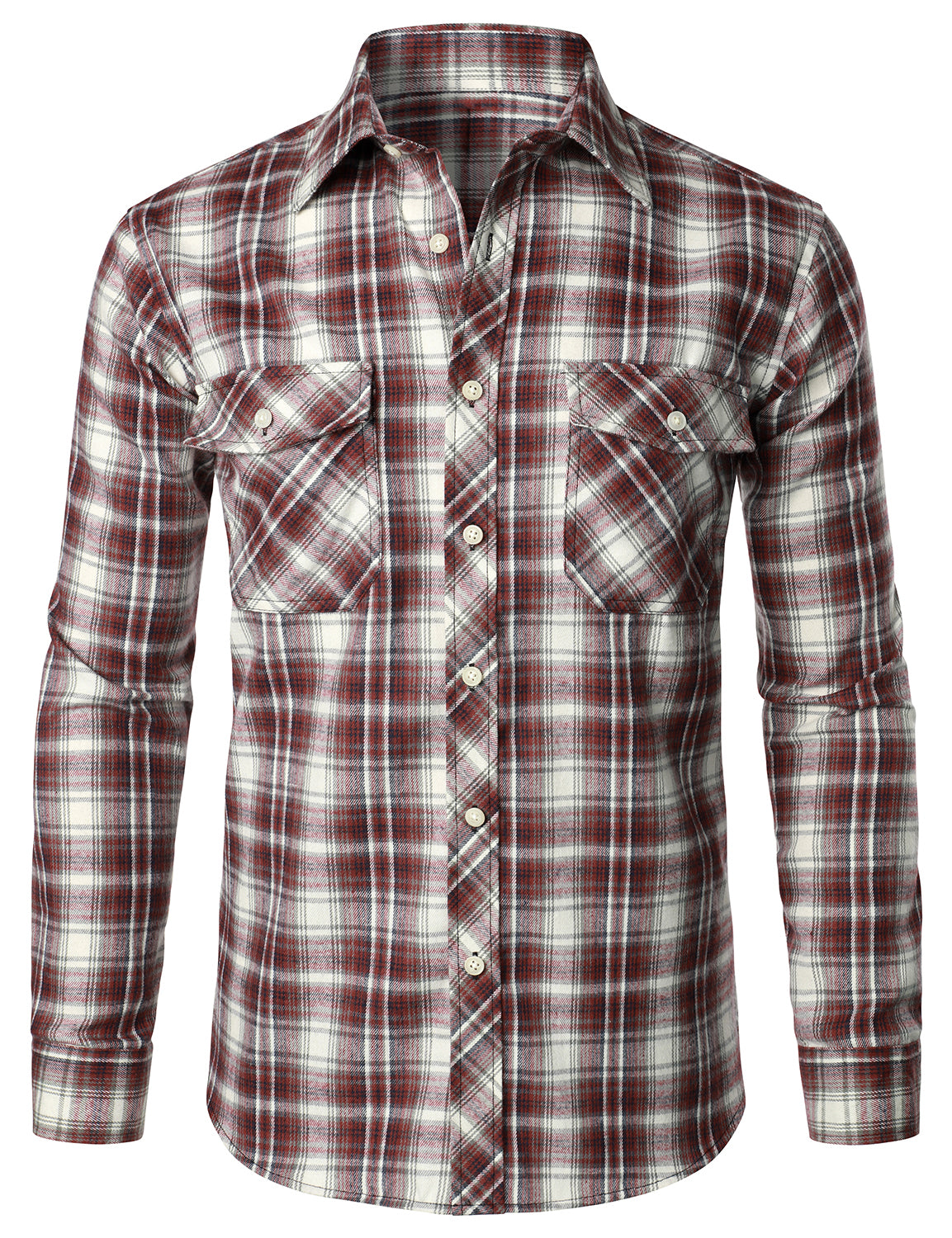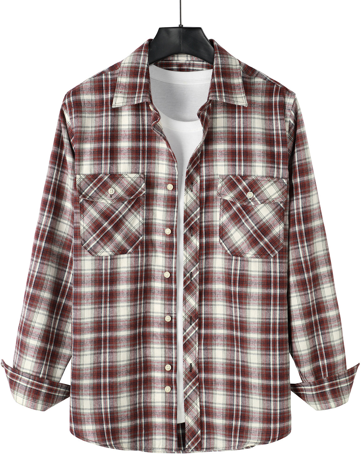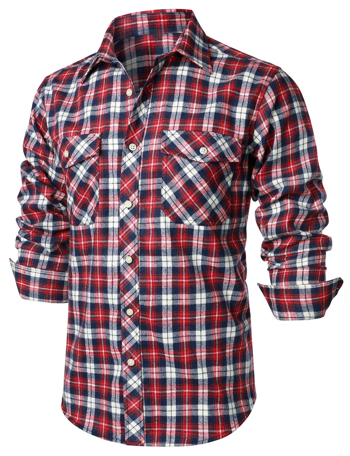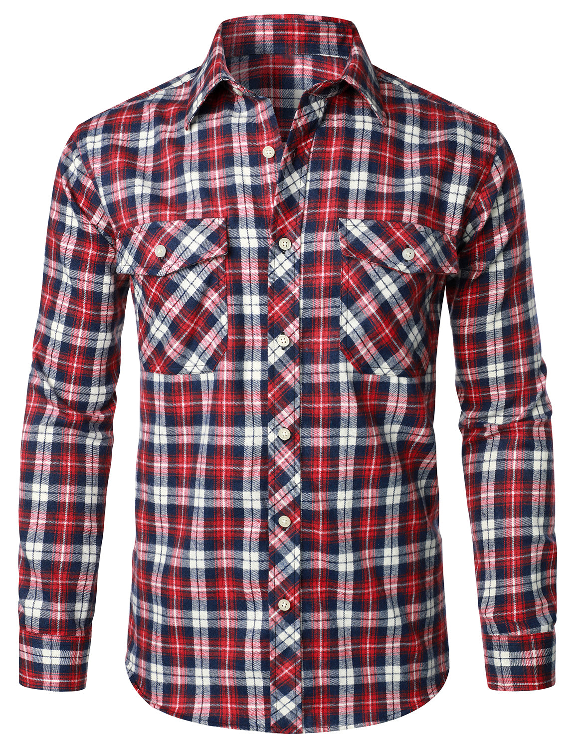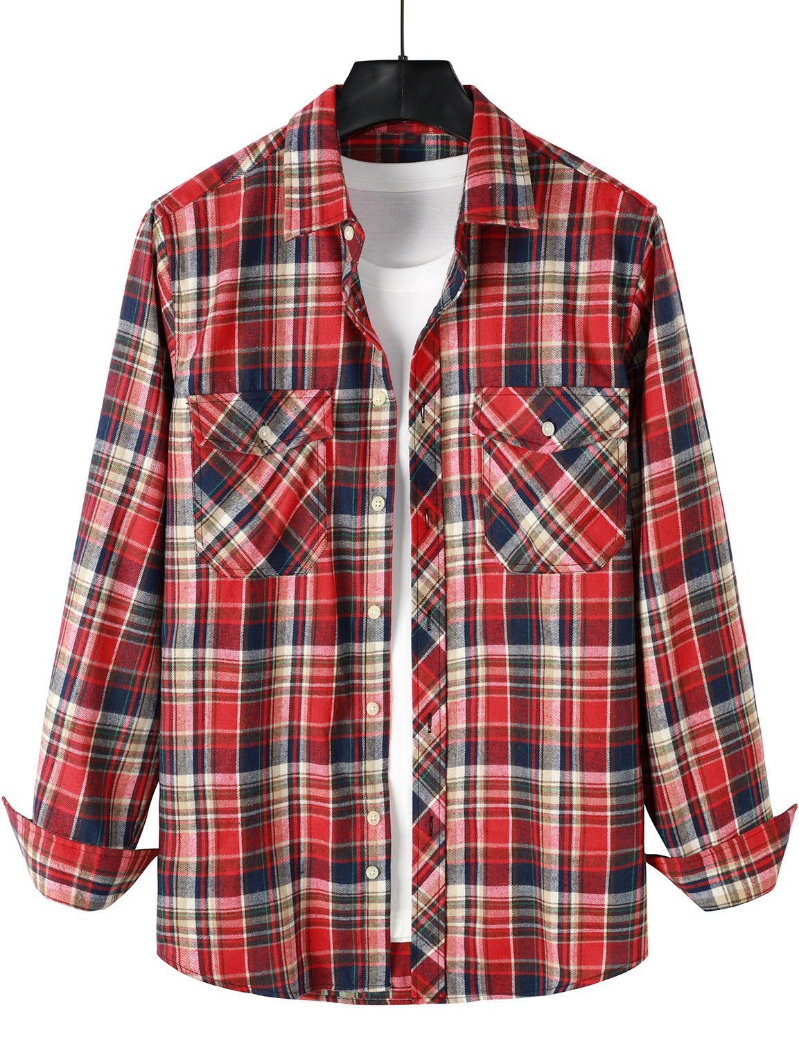 Men's Casual Plaid Double Pocket Flannel Checkered Button Up Long Sleeve Shirt
