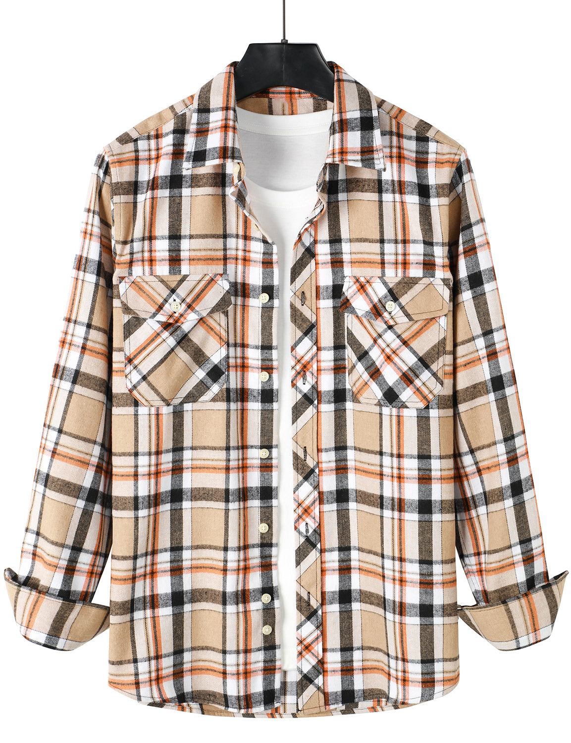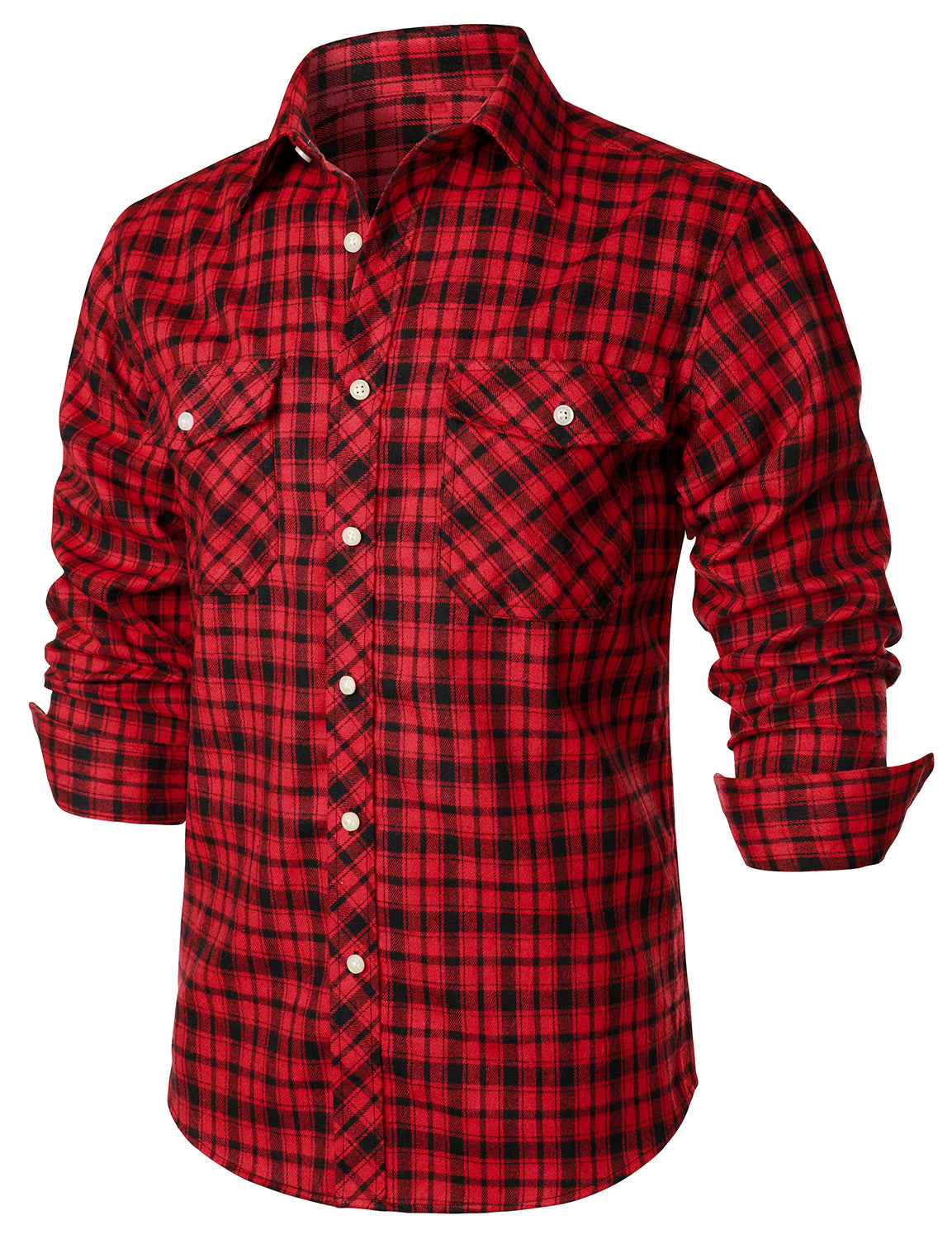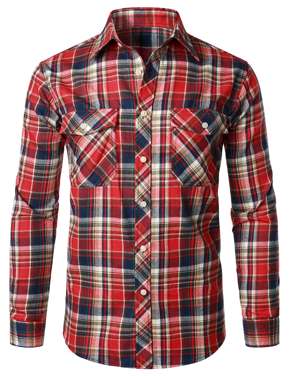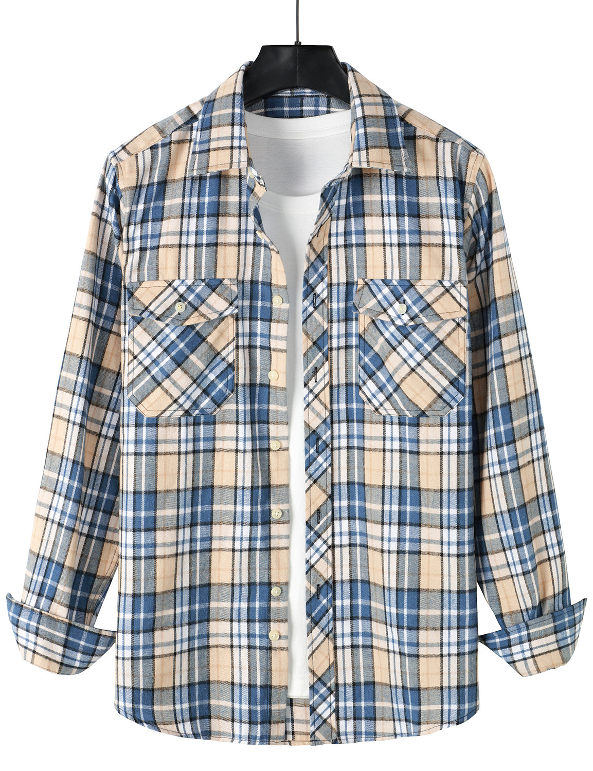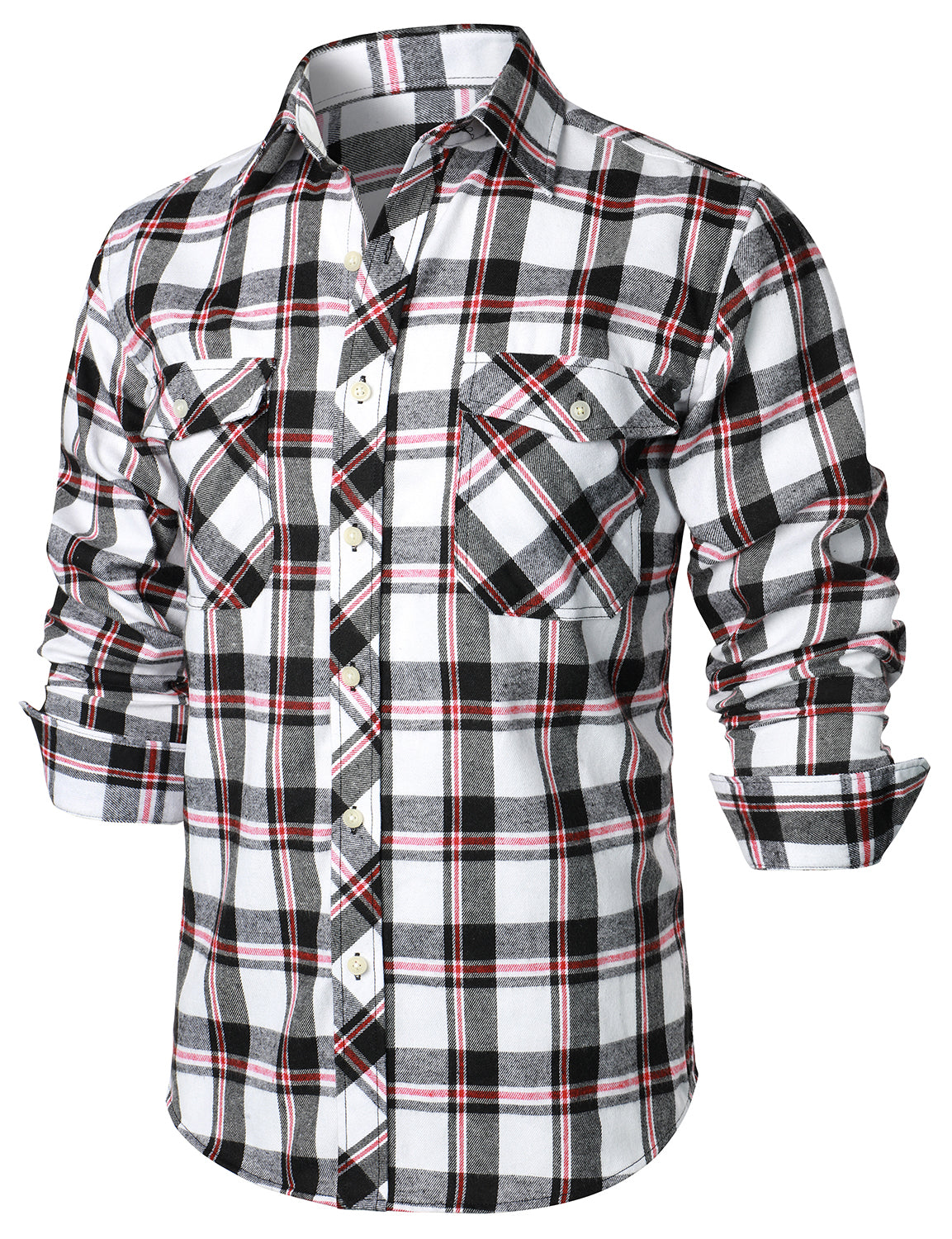 Men's Casual Plaid Double Pocket Flannel Checkered Button Up Long Sleeve Shirt