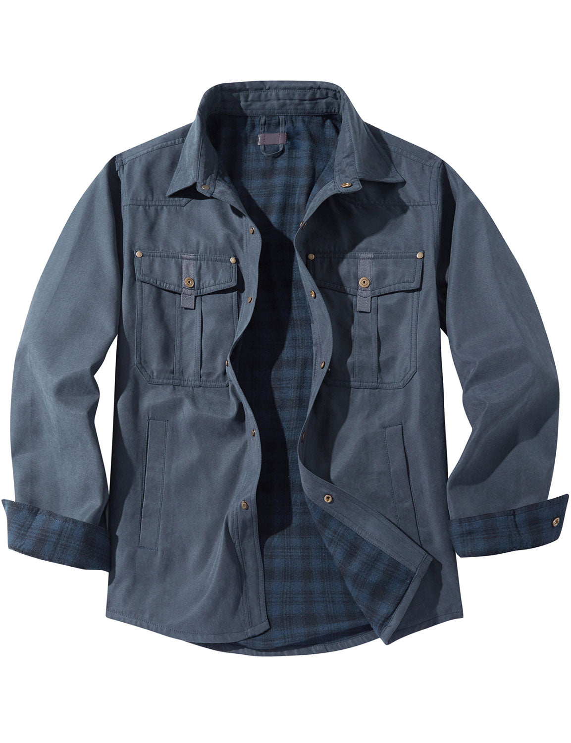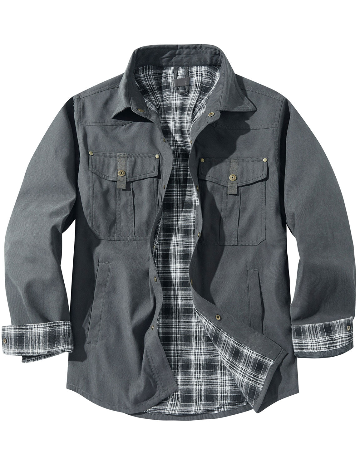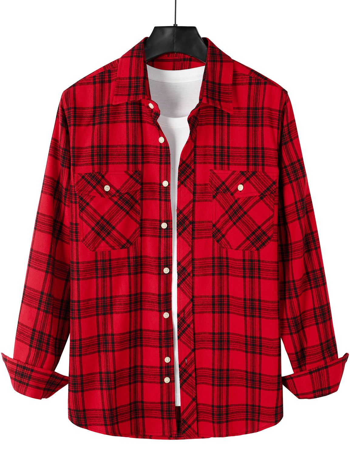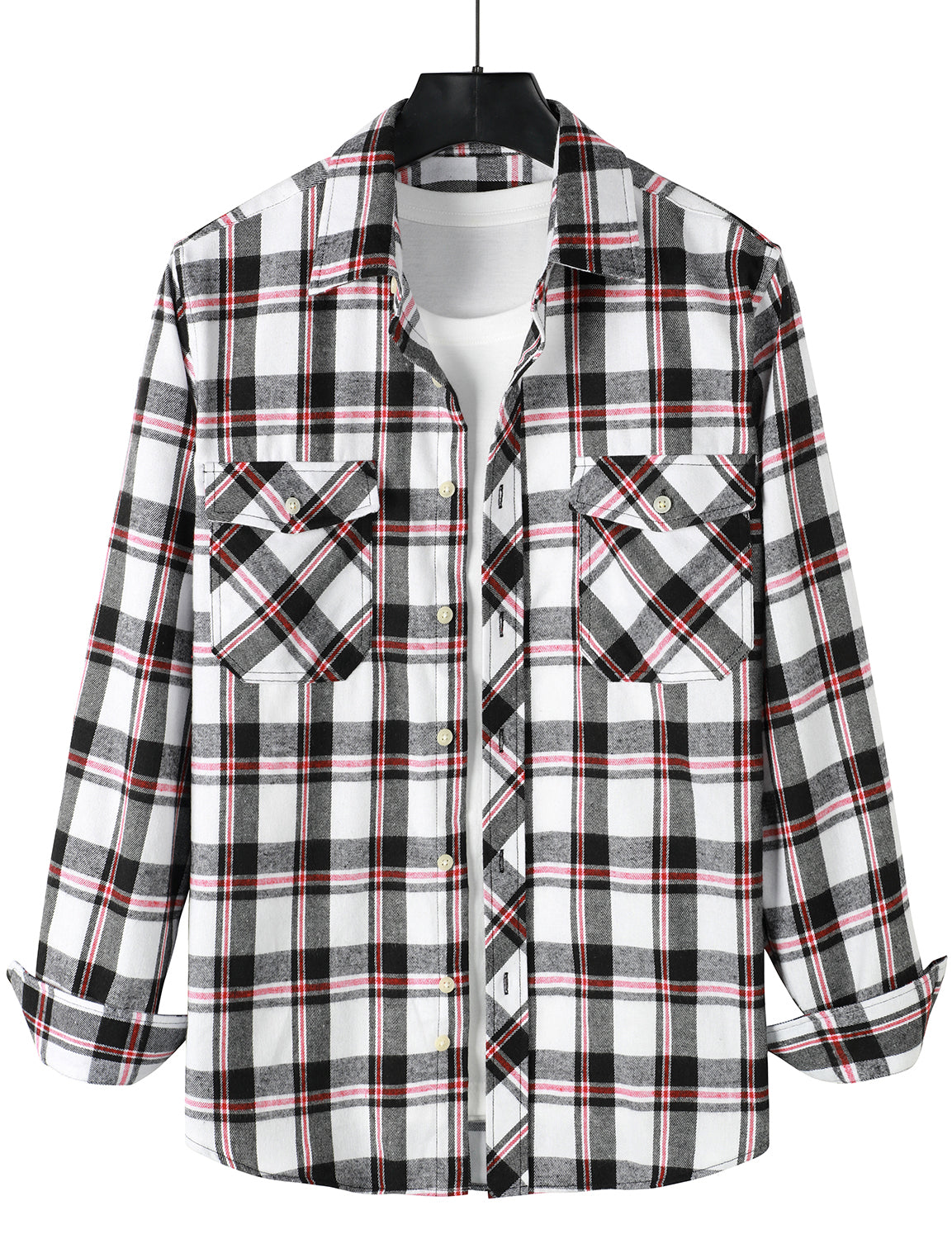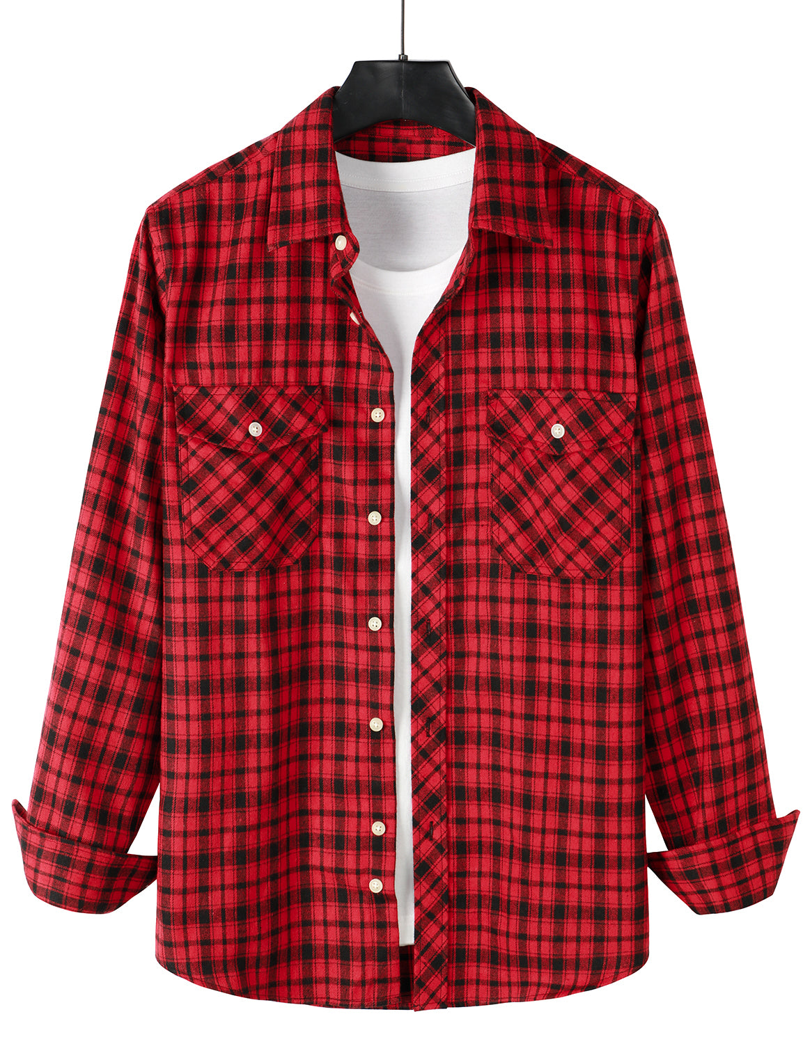 Men's Casual Plaid Double Pocket Flannel Checkered Button Up Long Sleeve Shirt