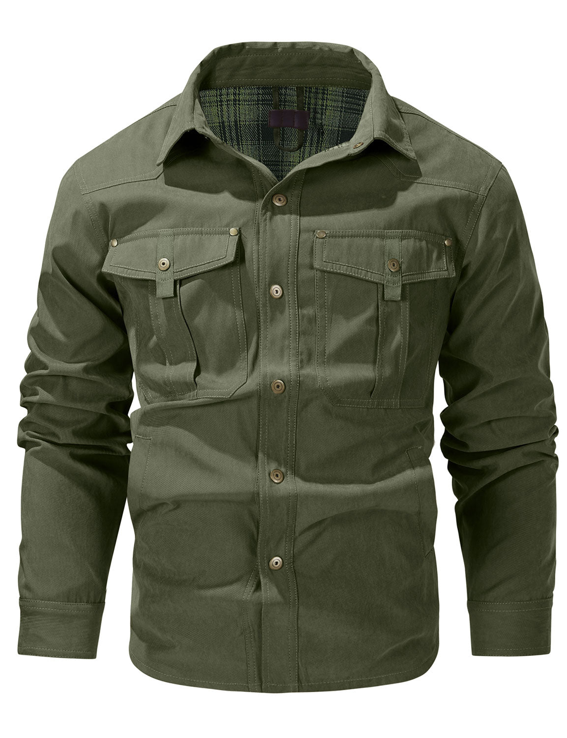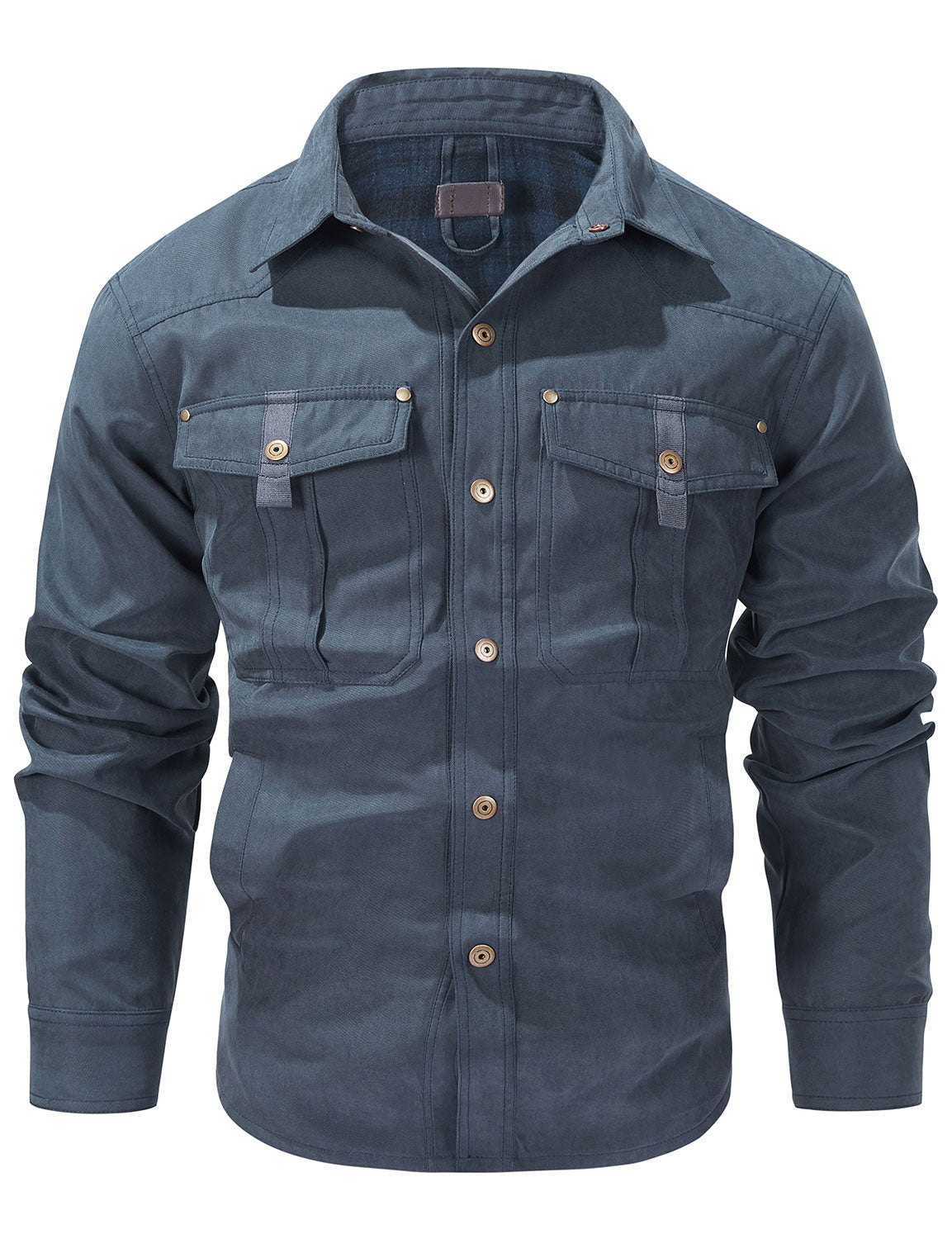 Men's Plaid Double Pocket Button Up Checkered Lapel Long Sleeve Fall Winter Shirt