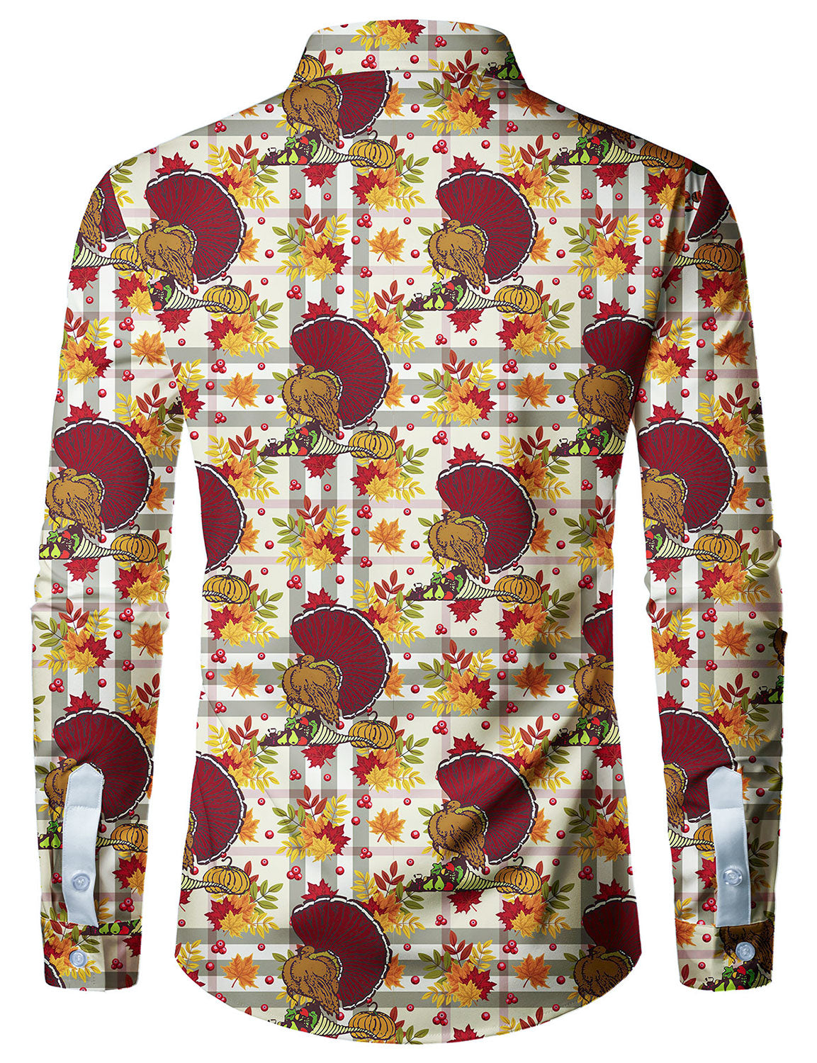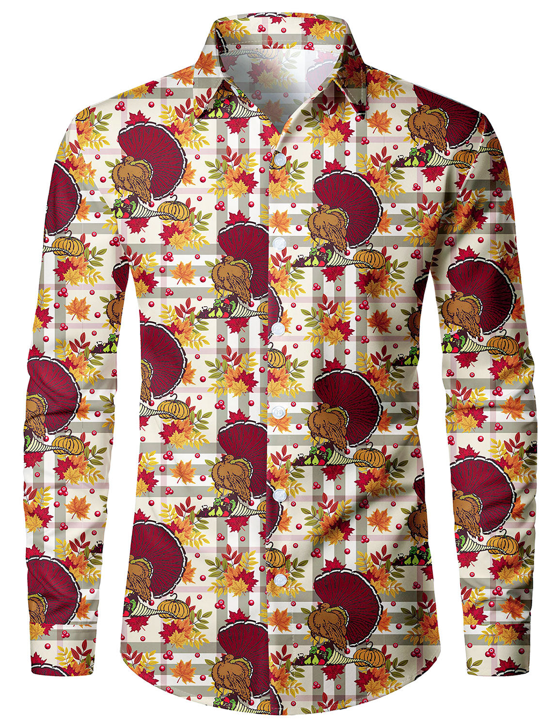 Men's Vintage Thanksgiving Festival Turkey Plaid Button Up Long Sleeve Holiday Shirt