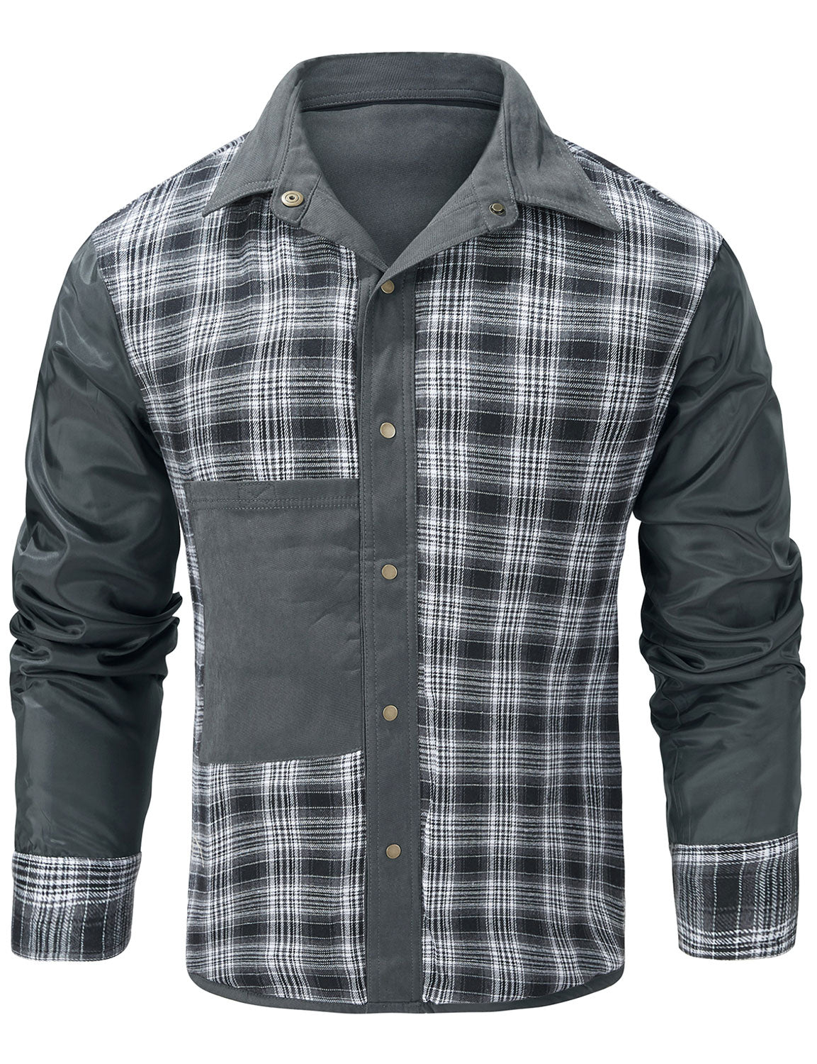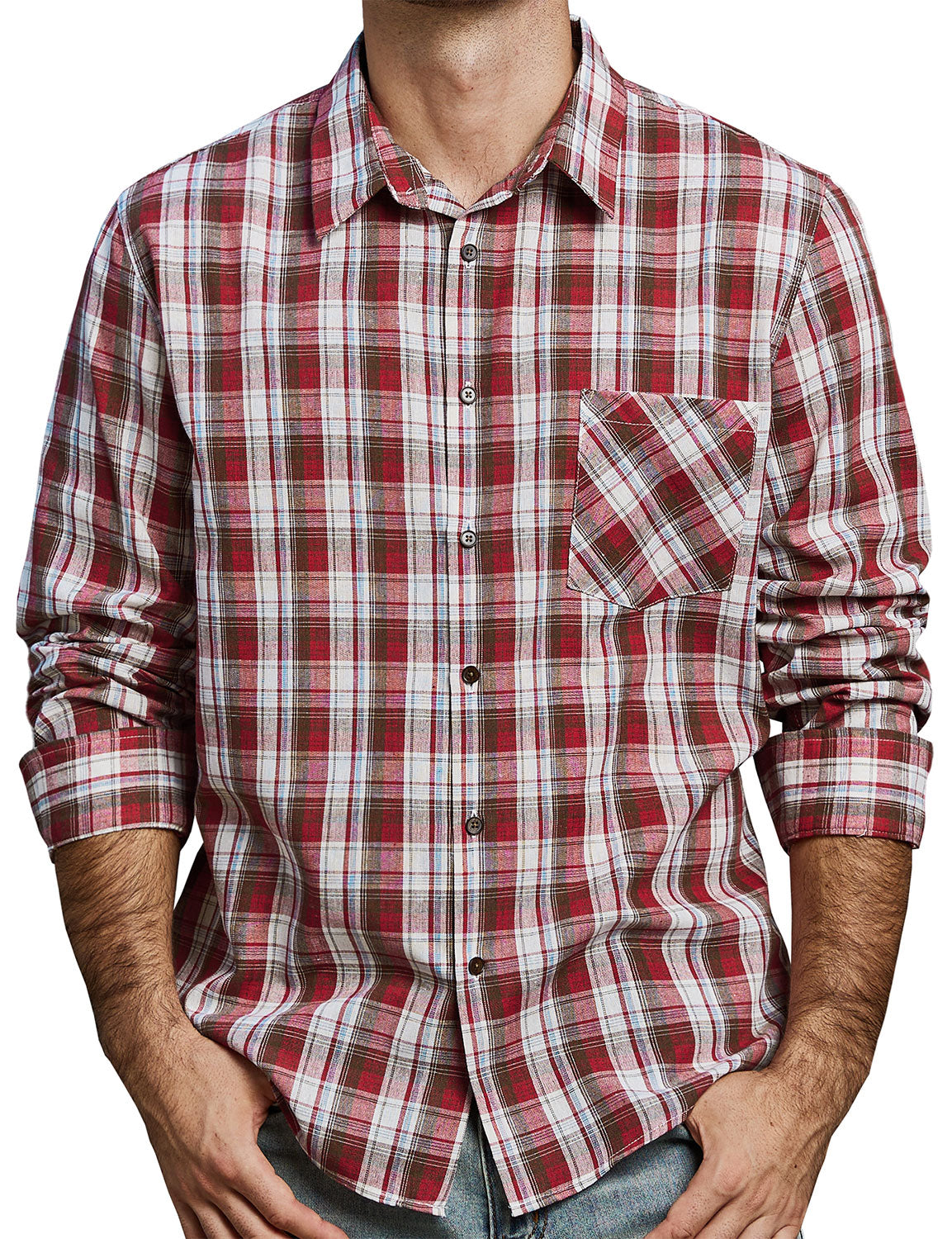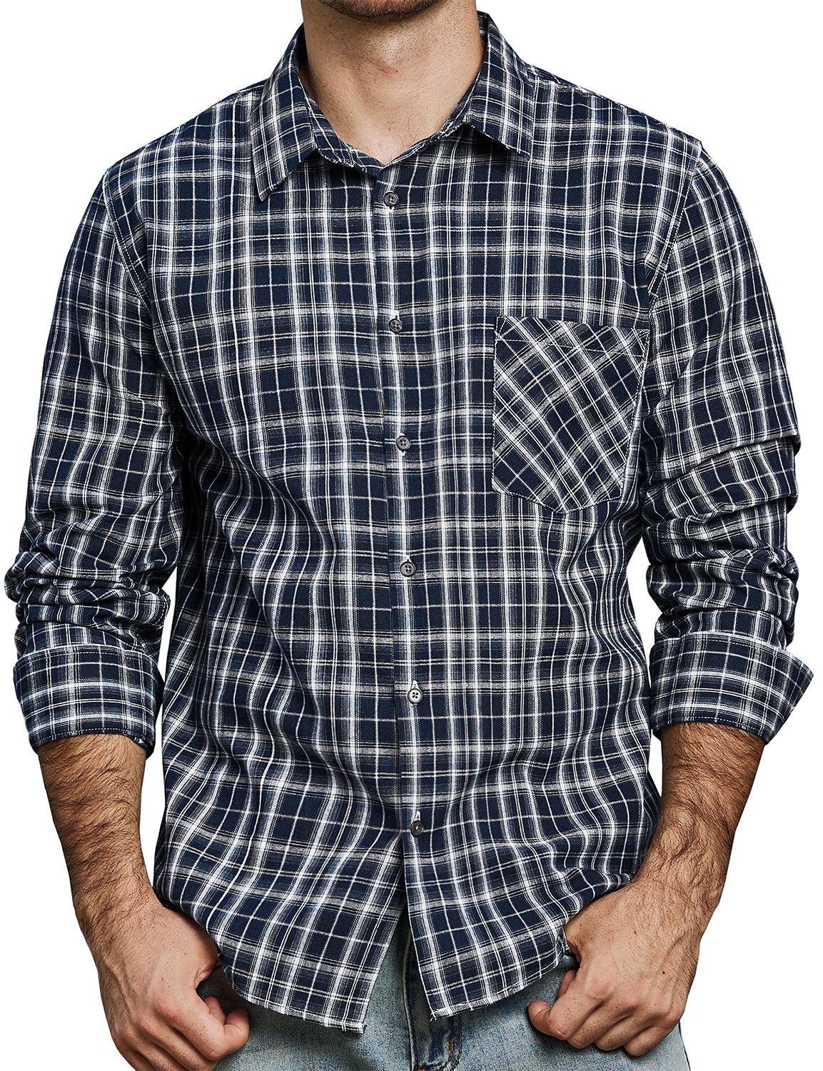 Men's Casual Plaid Pocket Button Up Long Sleeve Shirt